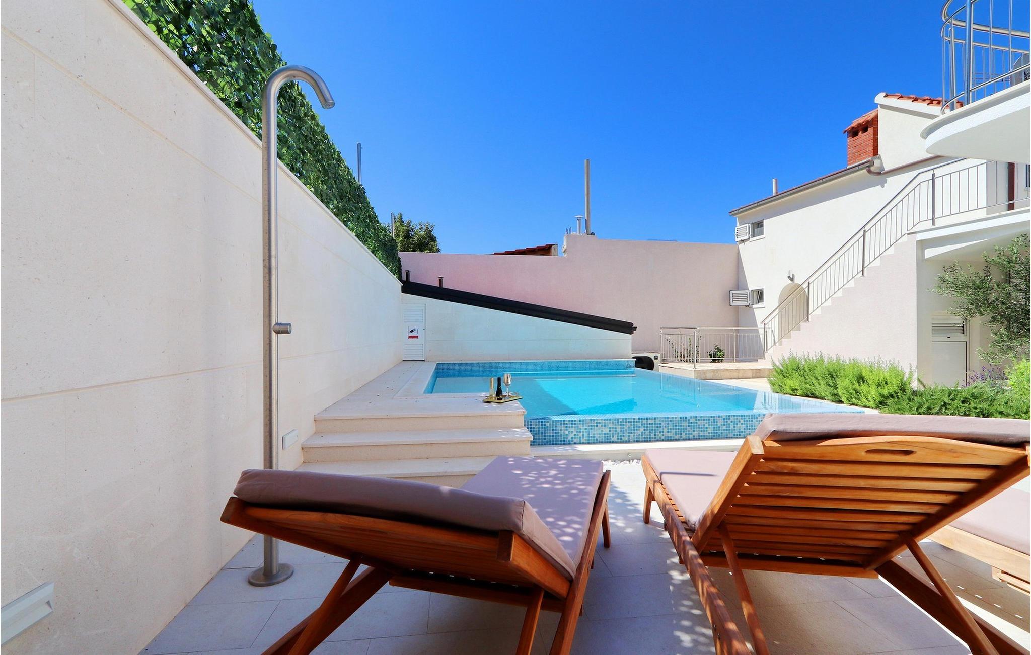 Nyd ubekymrede timer ved den forfriskende pool, perfekt til at køle af, slappe af og dagdrømme. Gør det behageligt på de hyggelige liggestole og lad blikket vandre over det glitrende vand. Udnyt det stilfulde udendørskøkken til at grille og nyde middelhavsdelikatesser under åben himmel.