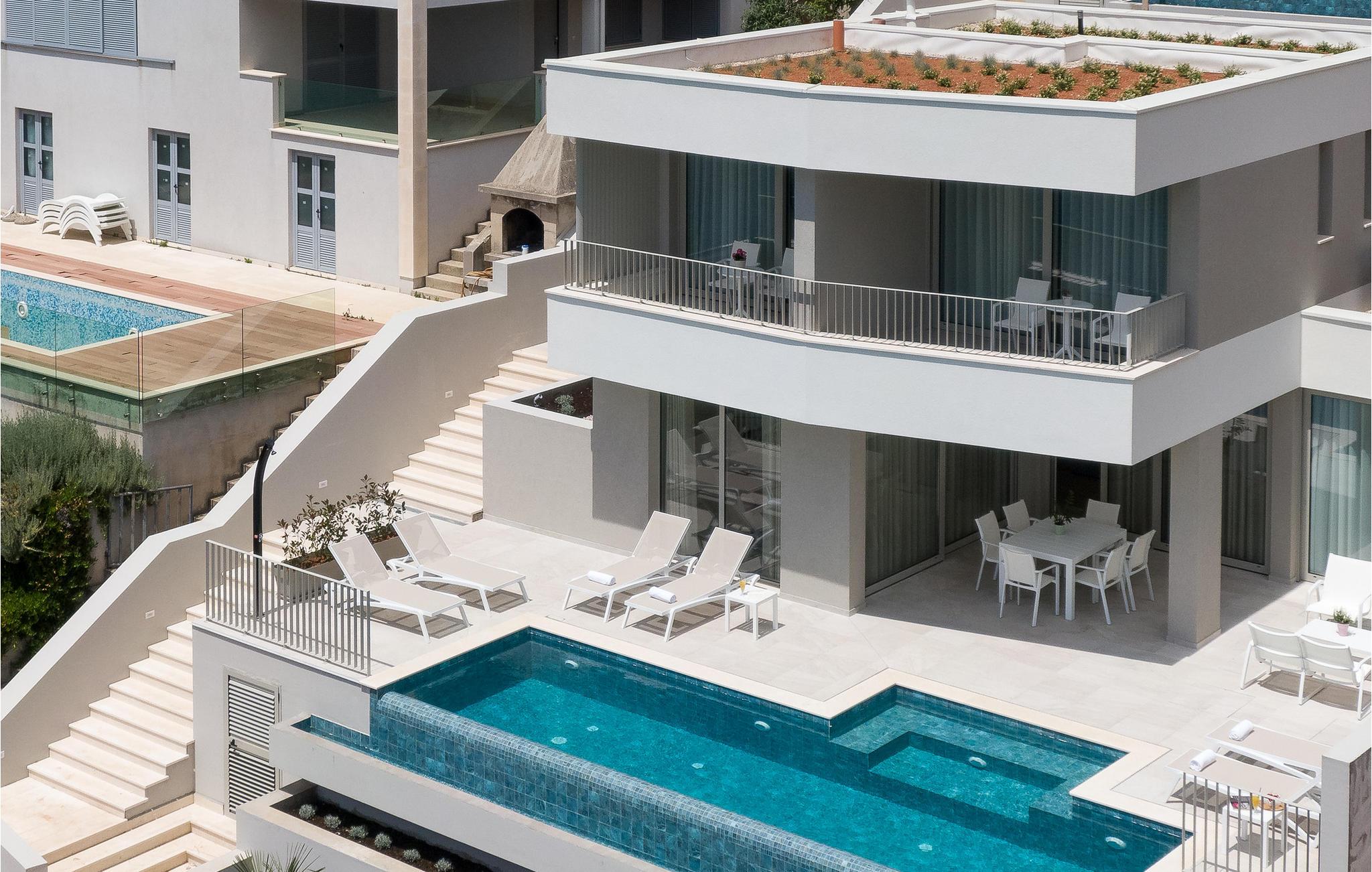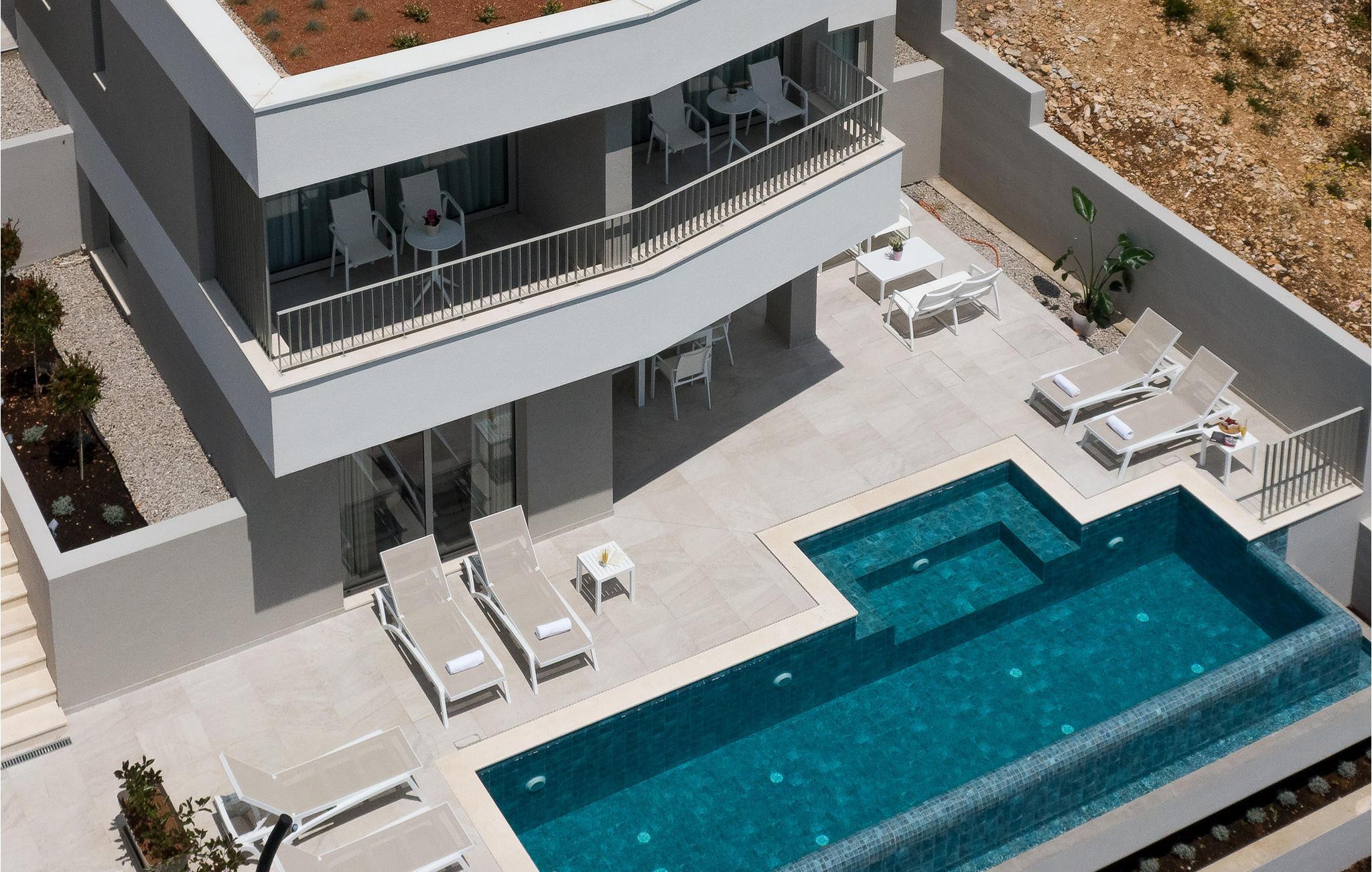 Træd ud på terrassen om morgenen, som åbner harmonisk mod havet, og tag en forfriskende dukkert i poolen. Spis morgenmad på balkonen, slap af på liggestolene med en forfriskende drink og afslut dagen med en mindeværdig middag under stjernerne med familie eller venner.