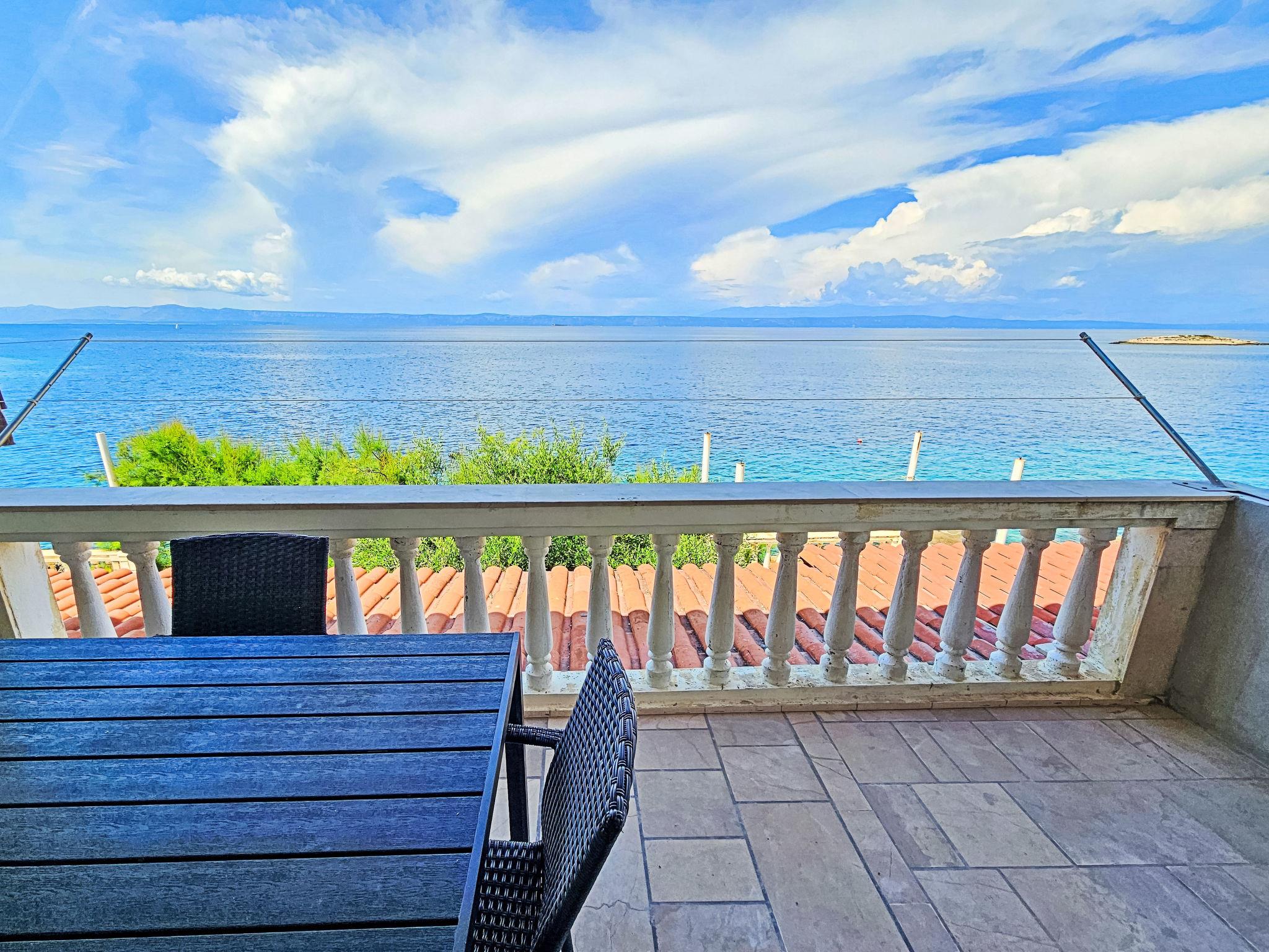 2-room apartment 45 m2, on the ground floor, north facing position. Living/dining room 20 m2 with 1 double sofabed (140 cm, length 200 cm), satellite TV (flat screen), air conditioning. Exit to the terrace. 1 room with 1 double bed (2 x 90 cm, length 200 cm). Open kitchen (oven, 4 ceramic glass hob hotplates, microwave, freezer) with dining table. Shower/WC. Terrace 12 m2, roofed. Terrace furniture. Marvellous view of the sea. Facilities: Internet (WiFi, free). 1 small pet/ dog allowed.