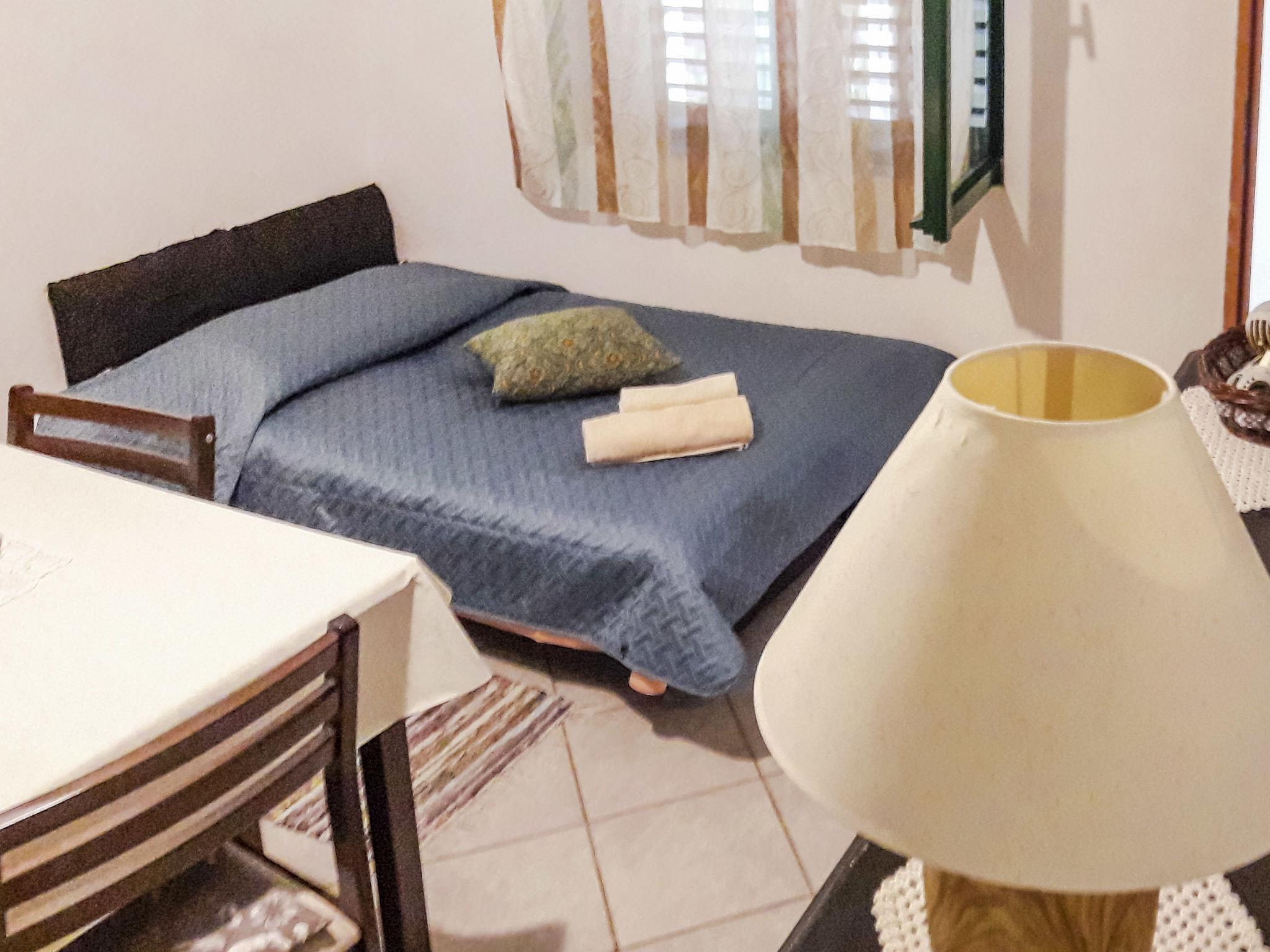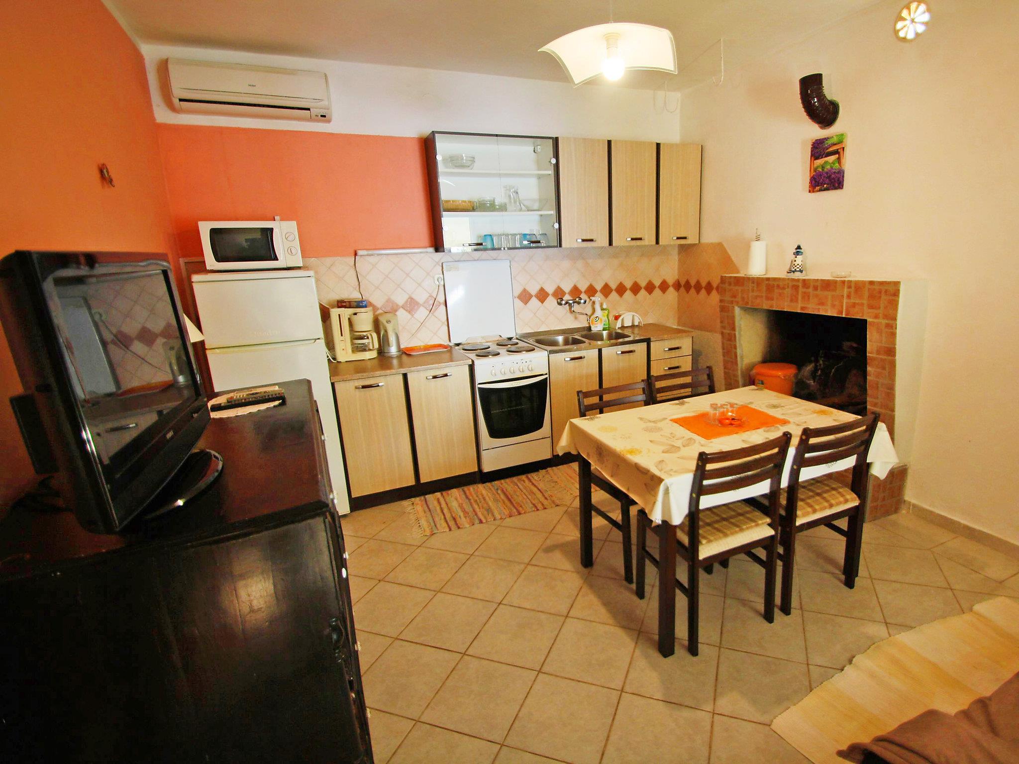 2-room apartment 40 m2, on the ground floor, north facing position. Living/dining room 12 m2 with 1 sofabed (120 cm, length 190 cm), open-hearth fireplace, satellite TV and air conditioning. Exit to the terrace. 1 room with 1 bed (90 cm, length 200 cm), 1 french bed (180 cm, length 200 cm). Open kitchen (4 hot plates, oven, microwave, freezer, electric coffee machine). Shower/WC. Forced-air heating. Terrace 15 m2, roofed. Terrace furniture. View of the sea. Facilities: washing machine. Internet (WiFi, free). Maximum 1 pet/ dog allowed. 3898