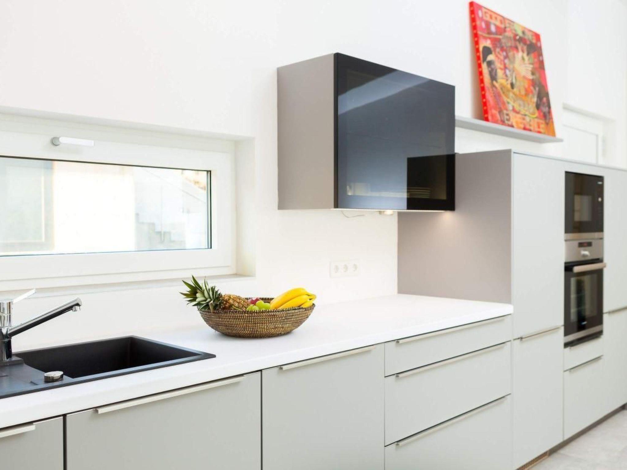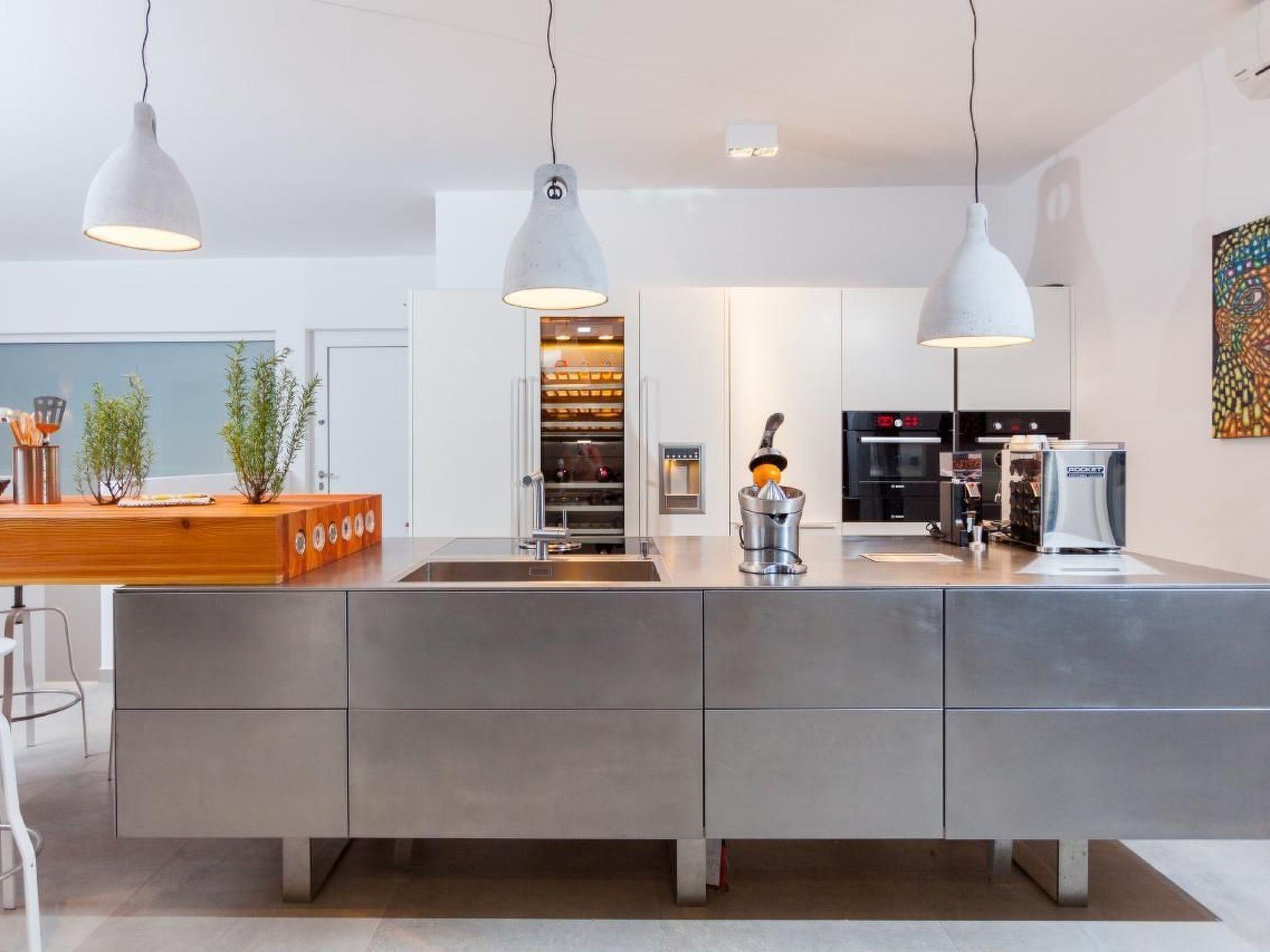 Luxurious amenities await you inside the villa. The maisonette flat offers 4 bedrooms - 3 with sea views and one with a large terrace area. The sleeping and living areas are connected by stairs, both inside and out. The designer kitchen is equipped with the highest quality appliances, such as a Gaggenau wine fridge, freezer with ice cube maker, TOP espresso machine with milk frother and a variety of modern kitchen appliances. The 100 m² penthouse flat offers two separate bedrooms with en-suite bathrooms and an open-plan living area with a high-quality kitchen. The entire flat is characterised by large sliding glass doors and a spacious glass terrace with breathtaking sea views.