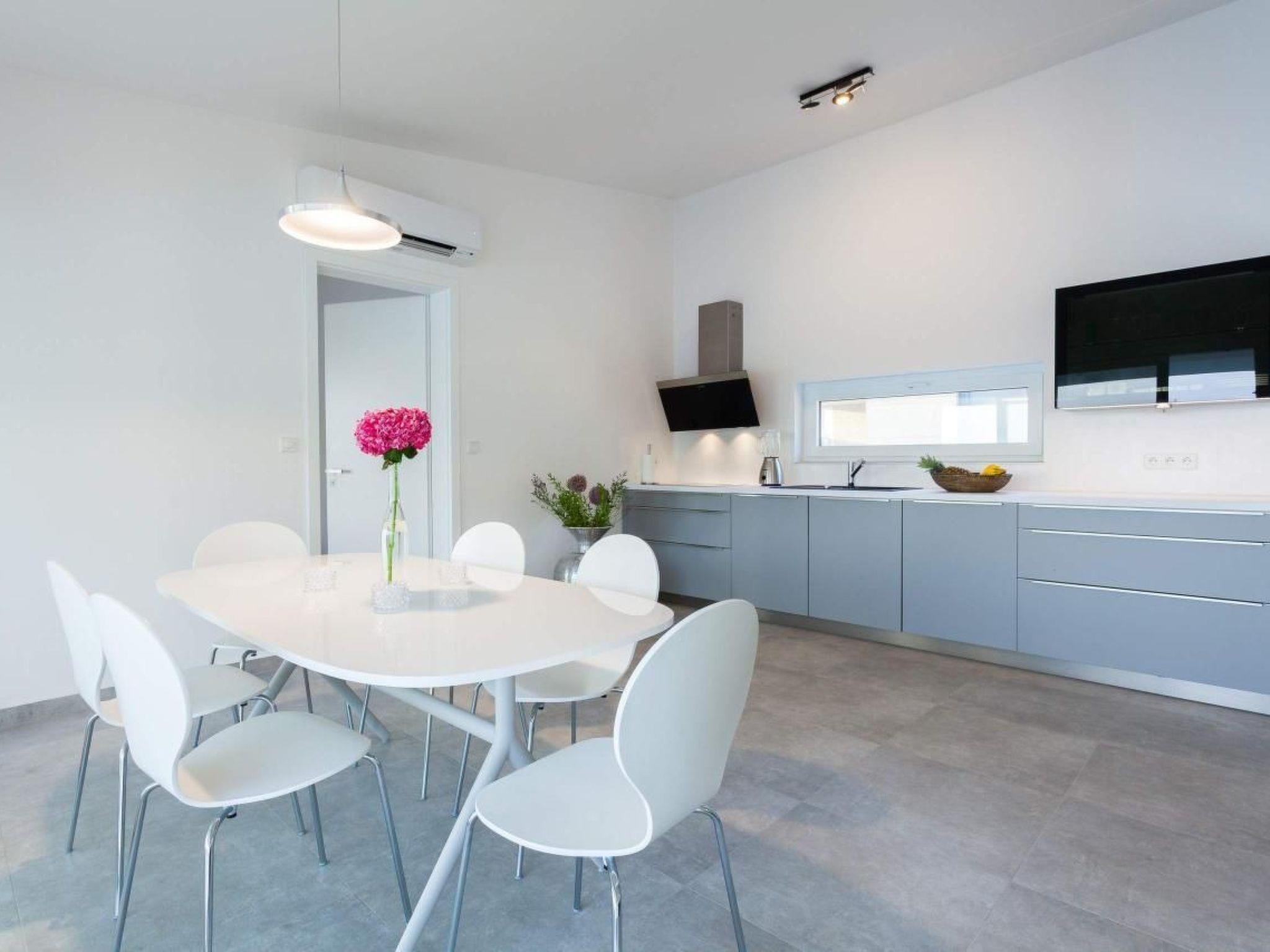 Discover our jewel right by the sea - a magnificent villa that not only impresses with its prime location with its maisonette and penthouse flat, but also with its elegant, modern interior design. This newly built villa promises an unforgettable holiday with its spacious terraces, equipped with luxurious seating and sun loungers.