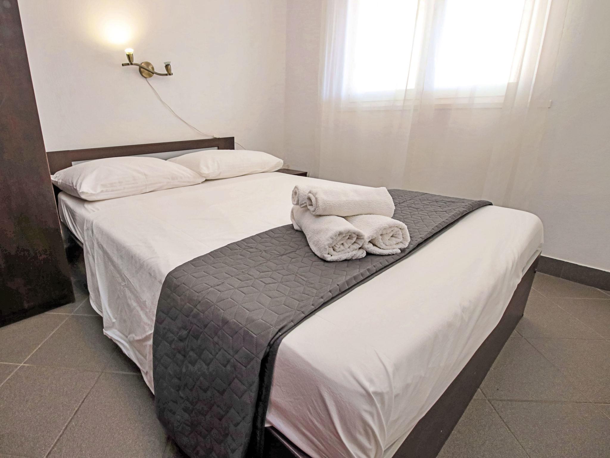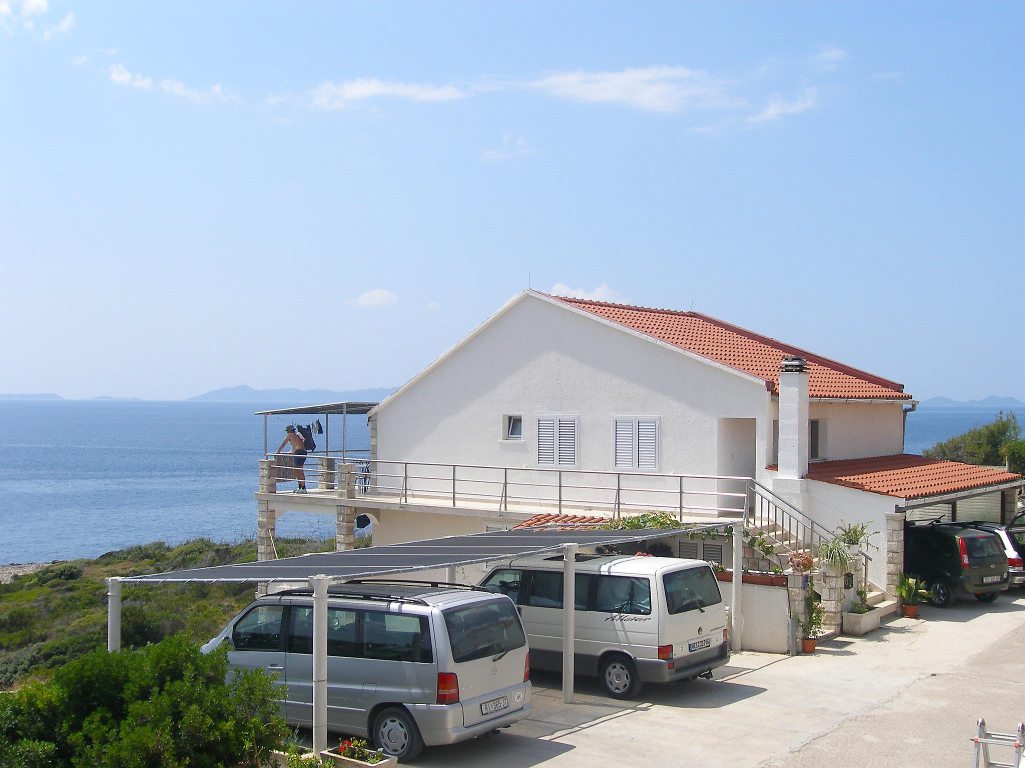 Apartment house "Snježana". On the outskirts, in a quiet, sunny position on a slope, 40 m from the sea, 40 m from the beach. For shared use: swimming pool angular (6 x 4 m, depth 80 - 150 cm, seasonal availability: 25.Apr. - 12.Sep.) with internal staircase. Barbecue. In the house: internet access. Roofed, parking at the house on the premises. Shop 700 m, restaurant 200 m, bus stop 3.4 km, sandy beach 1 km pebble beach 1 km, rocky beach 40 m. Please note: Additional accommodations can be booked.