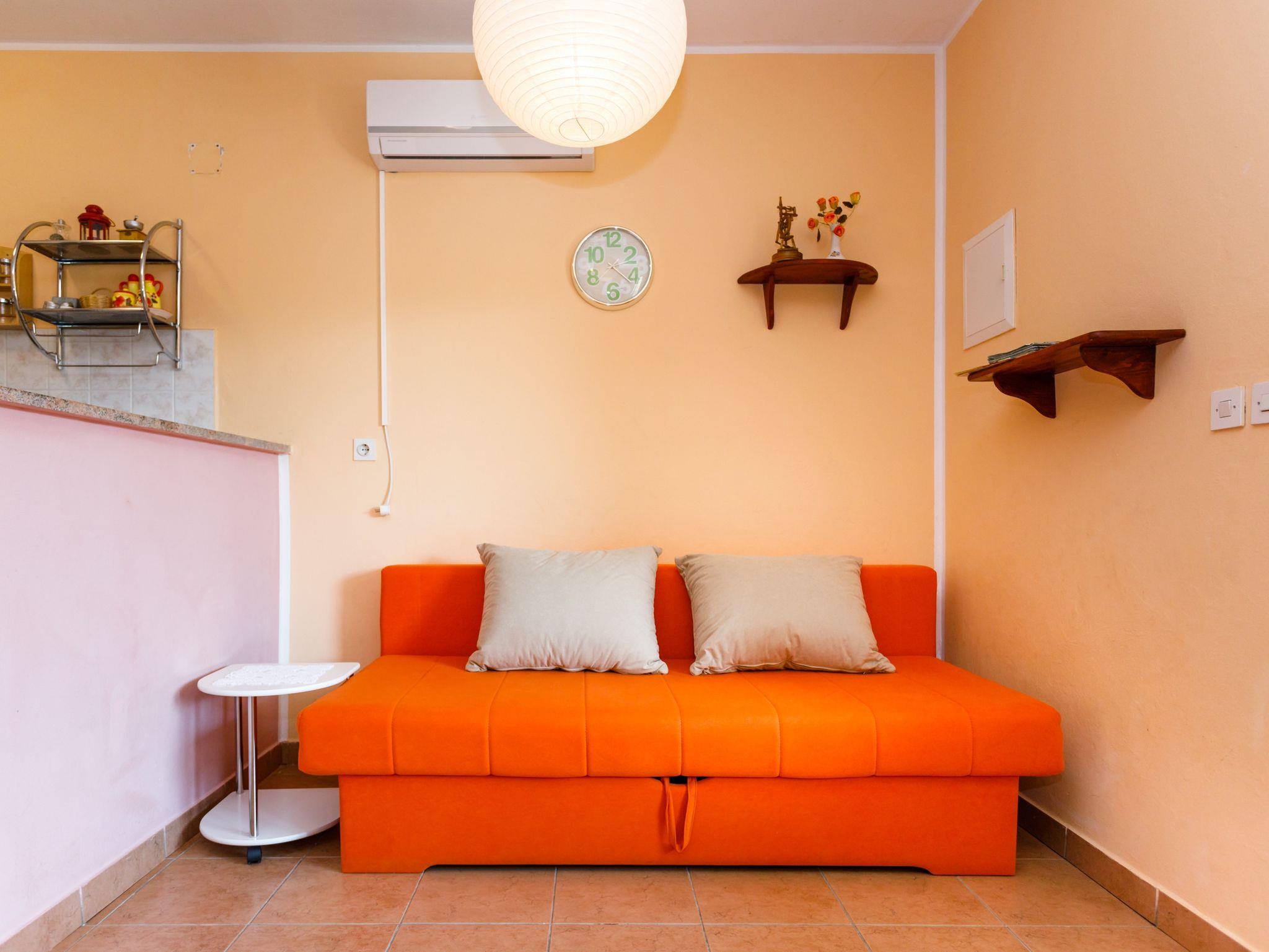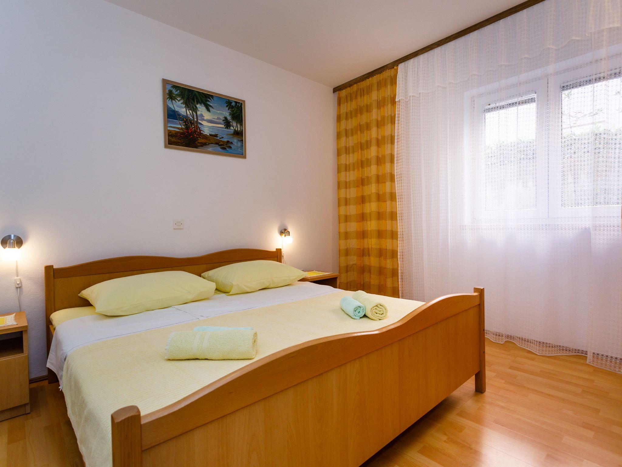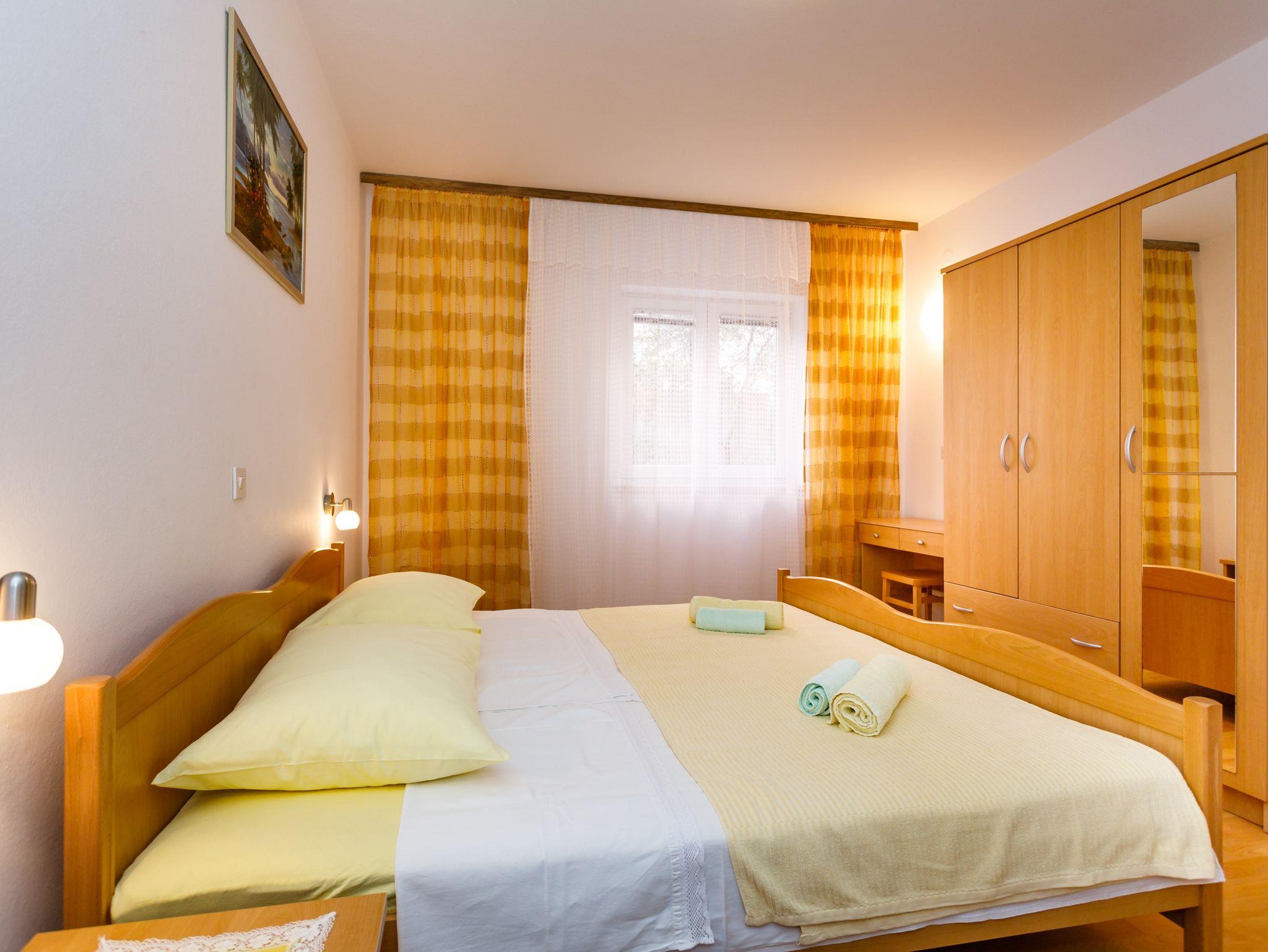 Ferienwohnung bietet Platz für 3 Gäste. Die Betten sind in Schlafzimmern, die es 1 gibt, innerhalb einer Gesamtfläche von 42m2, angeordnet. Die Gäste haben eine eigene Terrasse zur Verfügung, auf der sie in warmen Sommernächten genießen können. Das Apartment bietet Meerblick. Es ist erlaubt, Speisen auf dem Gemeinschafts-Grill vorzubereiten. IM PREIS INBEGRIFFEN: Kurtaxe, Endreinigung, Klimatisierung, Parkplatz, Internet, Bügeleisen, Bügelbrett, Föhn. VERBINDLICHE ZUSÄTZLICHE KOSTEN: Aufzahlung für Kurzaufenthalte (prozentualer Zuschlag pro Nächtigungsanzahl: 30% - 1, 20% - 2, 10% - 3). Die Verfügbarkeit zusätzlicher Dienstleistungen in Ihrem reservierten Termin und die Preise derselben (falls nicht aufgeführt) müssen im Voraus überprüft werden. Zusätzliche Dienstleistungen die in der Zahlungsaufforderung nicht aufgeführt sind werden direkt beim Vermieter bezahlt, angenommen der Gast nutzt auch diese. Ermäßigung auf den Grundpreis: Gratistag 14=13 (bei einem Aufenthalt von 14 Tagen oder mehr erhalten Sie einen Gratistag für den Aufenthalt bis 31.12.26).