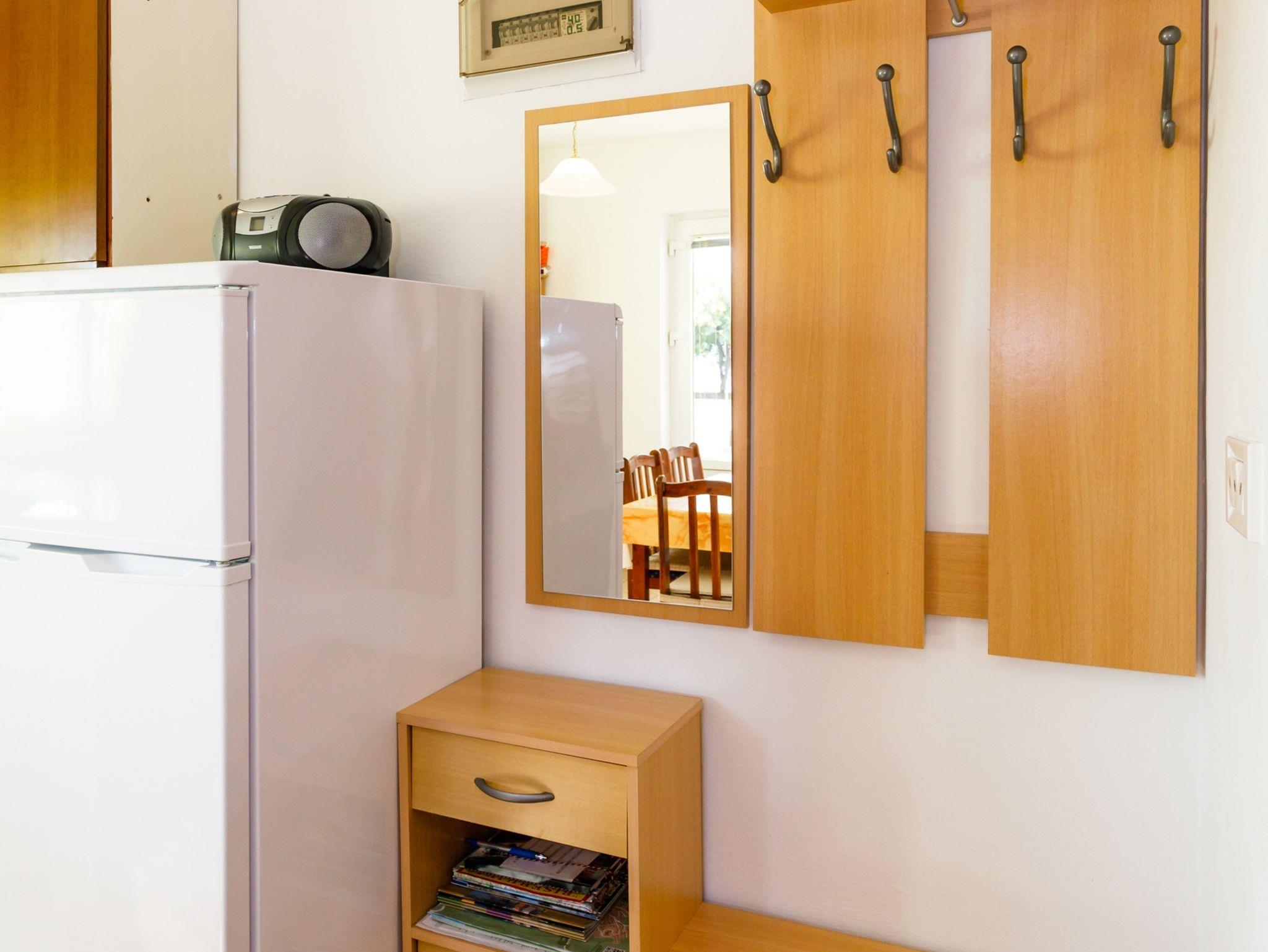 Ferienwohnung bietet Platz für 3 Gäste. Die Betten sind in Schlafzimmern, die es 1 gibt, und in Wohnzimmer, innerhalb einer Gesamtfläche von 29m2, angeordnet. Die Gäste haben eine eigene Terrasse zur Verfügung, auf der sie in warmen Sommernächten genießen können. Das Apartment bietet Meerblick. Es ist erlaubt, Speisen auf dem Gemeinschafts-Grill vorzubereiten. IM PREIS INBEGRIFFEN: Kurtaxe, Endreinigung, Klimatisierung, Parkplatz, Internet, Bügeleisen, Bügelbrett, Föhn. VERBINDLICHE ZUSÄTZLICHE KOSTEN: Aufzahlung für Kurzaufenthalte (prozentualer Zuschlag pro Nächtigungsanzahl: 30% - 1, 20% - 2, 10% - 3). Die Verfügbarkeit zusätzlicher Dienstleistungen in Ihrem reservierten Termin und die Preise derselben (falls nicht aufgeführt) müssen im Voraus überprüft werden. Zusätzliche Dienstleistungen die in der Zahlungsaufforderung nicht aufgeführt sind werden direkt beim Vermieter bezahlt, angenommen der Gast nutzt auch diese. Ermäßigung auf den Grundpreis: Gratistag 14=13 (bei einem Aufenthalt von 14 Tagen oder mehr erhalten Sie einen Gratistag für den Aufenthalt bis 31.12.26).