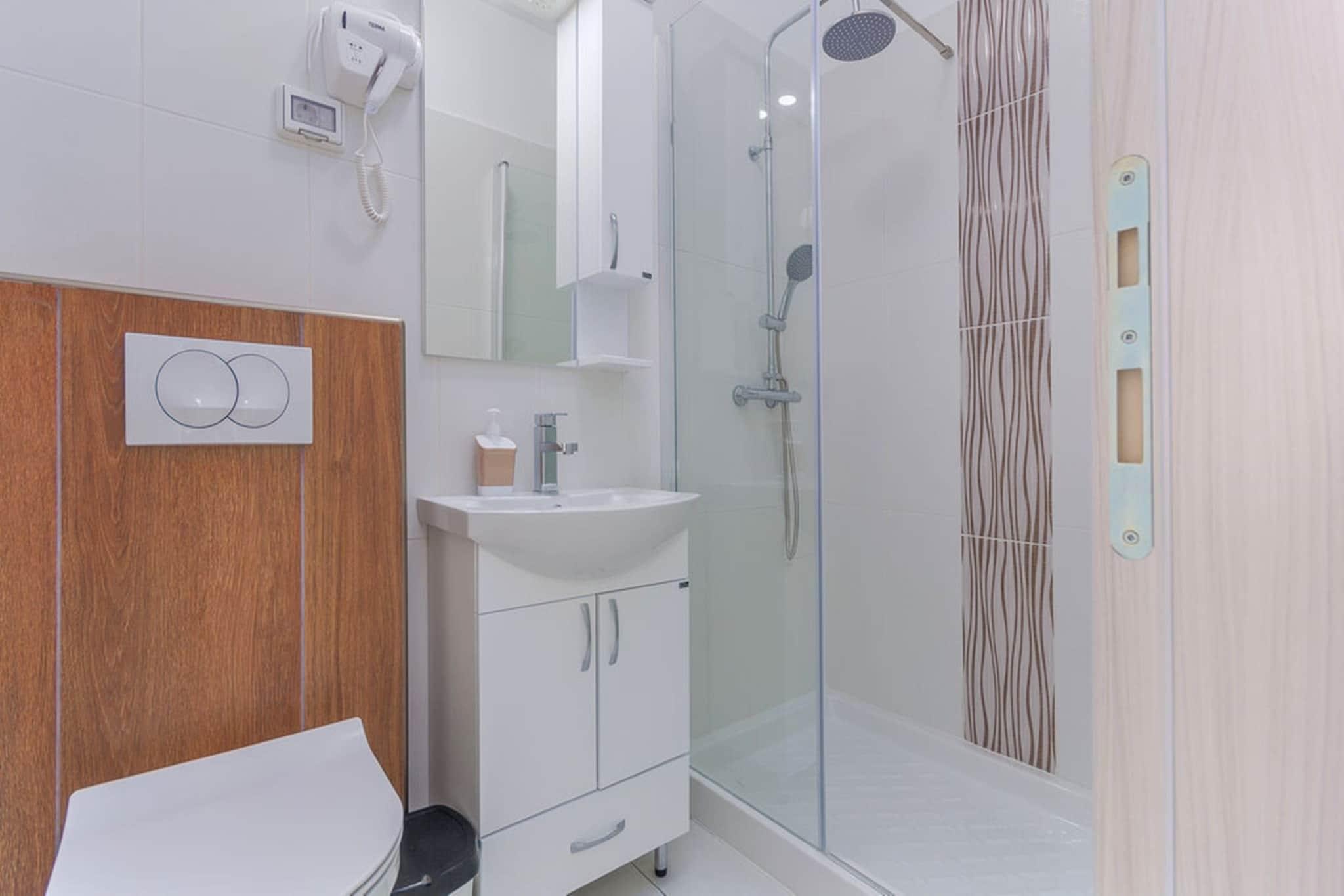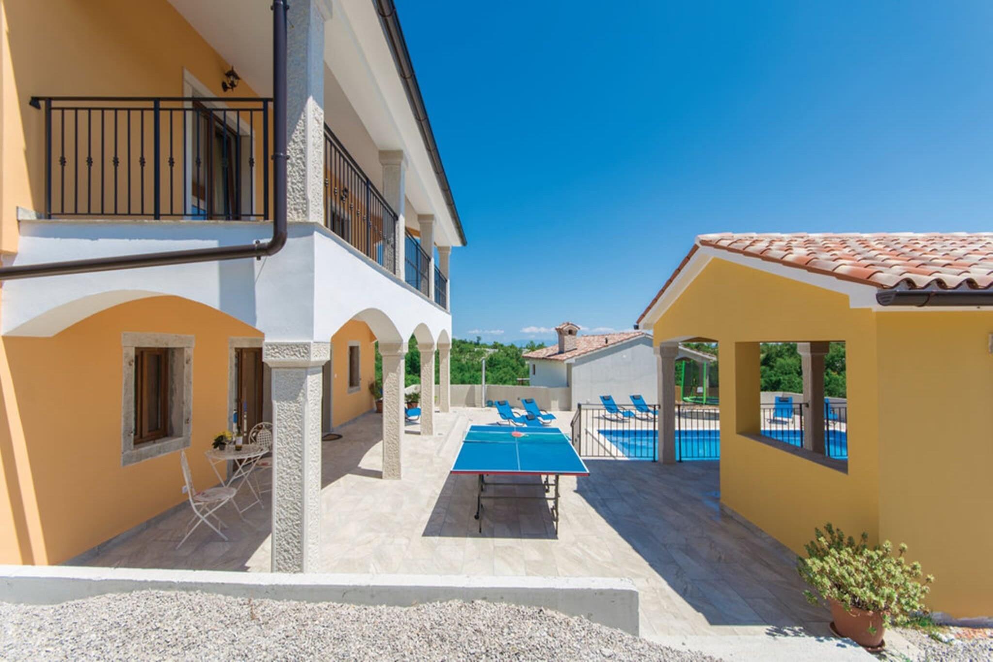 Beliggende i det fredfyldte Skitaca-område tilbyder denne smukke 3-værelses villa et roligt tilflugtssted med en privat swimmingpool og en fantastisk havudsigt. Villaen kan rumme op til 8 personer, hvilket gør den til et ideelt tilflugtssted for familier eller små grupper. Udendørsområdet er perfekt til afslapning med 10 liggestole omkring poolen, en grill for kulinariske entusiaster og en dejlig terrasse med solskygge. Derudover kan børn nyde timevis af underholdning med bordtennis og en trampolin, hvilket sikrer, at alle får et mindeværdigt ophold. Villaens interiør er gennemtænkt designet til komfort og bekvemmelighed. Stueetagen har en rummelig stue med pejs samt et fuldt udstyret køkken og spiseplads. Ovenpå tilbyder de tre soveværelser, hver med eget badeværelse, private retreater, og hvert værelse har adgang til en balkon med betagende udsigt. Ejendommen tilbyder også gratis Wi-Fi og parkering, hvilket sikrer gæsterne en gratis oplevelse. Beliggende kun 5 km fra landsbyen Koromacno, kan gæsterne nyde lokale faciliteter såsom en købmand, kaffebar og apotek. Den nærliggende by Labin (23 km) byder på en historisk gammel by at udforske, mens de smukke strande i Koromacno og det populære Scuba-center Sv. Marina (15 km) er perfekt til vandaktiviteter. Med den større by Pula (60 km) og andre attraktioner som bådudlejning på Autokamp Tunarica, er denne villa ideelt beliggende for både afslapning og eventyr.