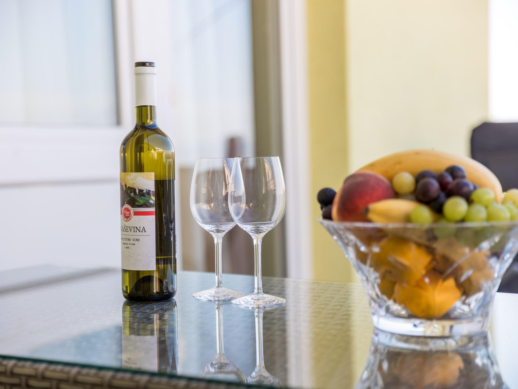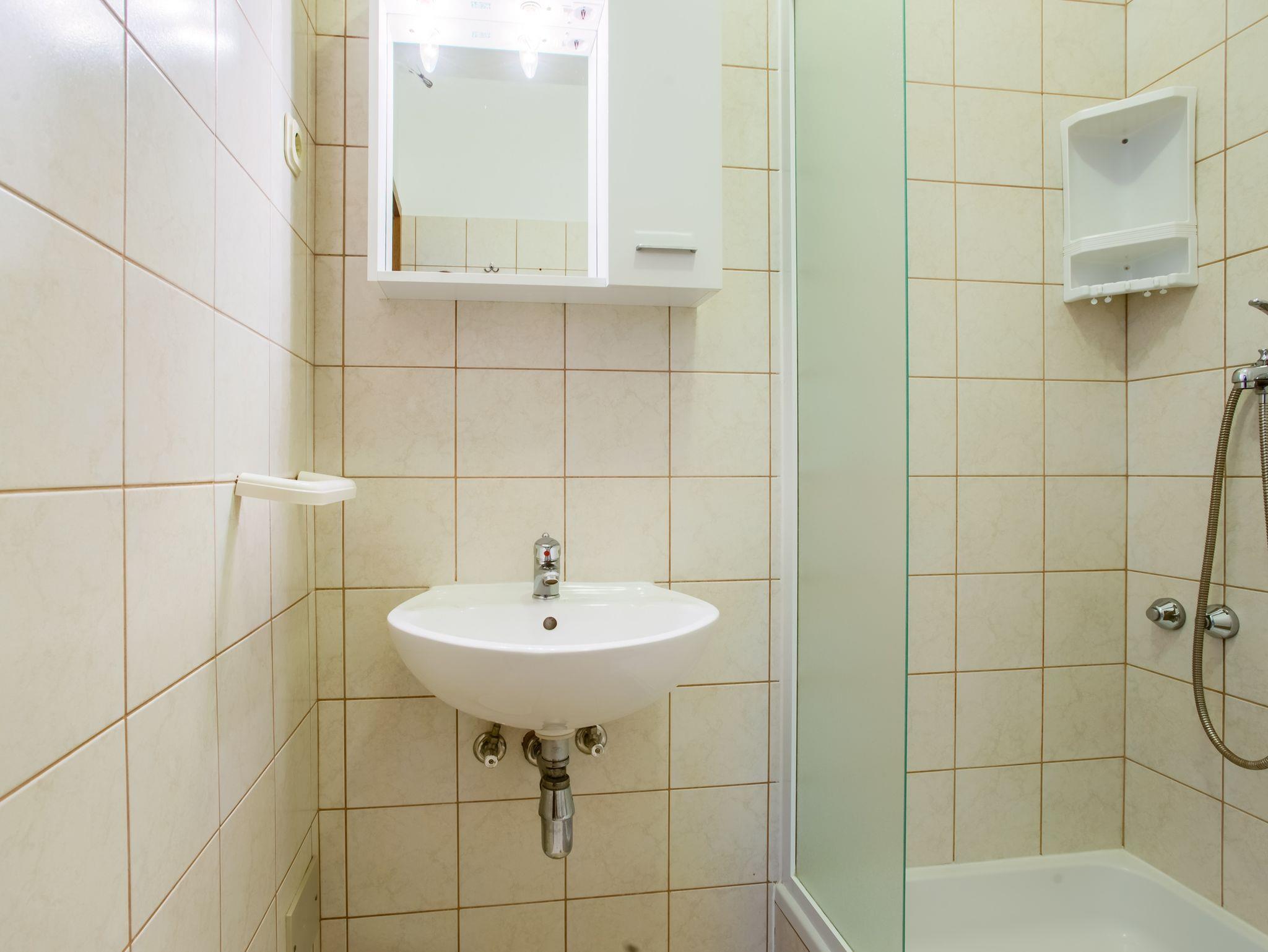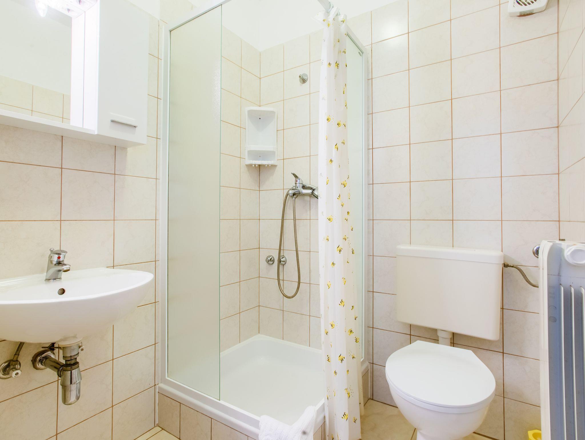 Ferienwohnung bietet Platz für 4 Gäste. Die Betten sind in Schlafzimmern, die es 2 gibt, innerhalb einer Gesamtfläche von 38m2, angeordnet. Die Gäste haben eine eigene Terrasse zur Verfügung, auf der sie in warmen Sommernächten genießen können. Das Apartment bietet Meerblick. Es ist erlaubt, Speisen auf dem Gemeinschafts-Grill vorzubereiten. IM PREIS INBEGRIFFEN: Kurtaxe, Endreinigung, Klimatisierung, Zentralheizung, Parkplatz, Internet, Wäschewaschen, Bügeleisen. VERBINDLICHE ZUSÄTZLICHE KOSTEN: Aufzahlung für Kurzaufenthalte (prozentualer Zuschlag pro Nächtigungsanzahl: 30% - 1, 20% - 2, 10% - 3). Die Verfügbarkeit zusätzlicher Dienstleistungen in Ihrem reservierten Termin und die Preise derselben (falls nicht aufgeführt) müssen im Voraus überprüft werden. Zusätzliche Dienstleistungen die in der Zahlungsaufforderung nicht aufgeführt sind werden direkt beim Vermieter bezahlt, angenommen der Gast nutzt auch diese.