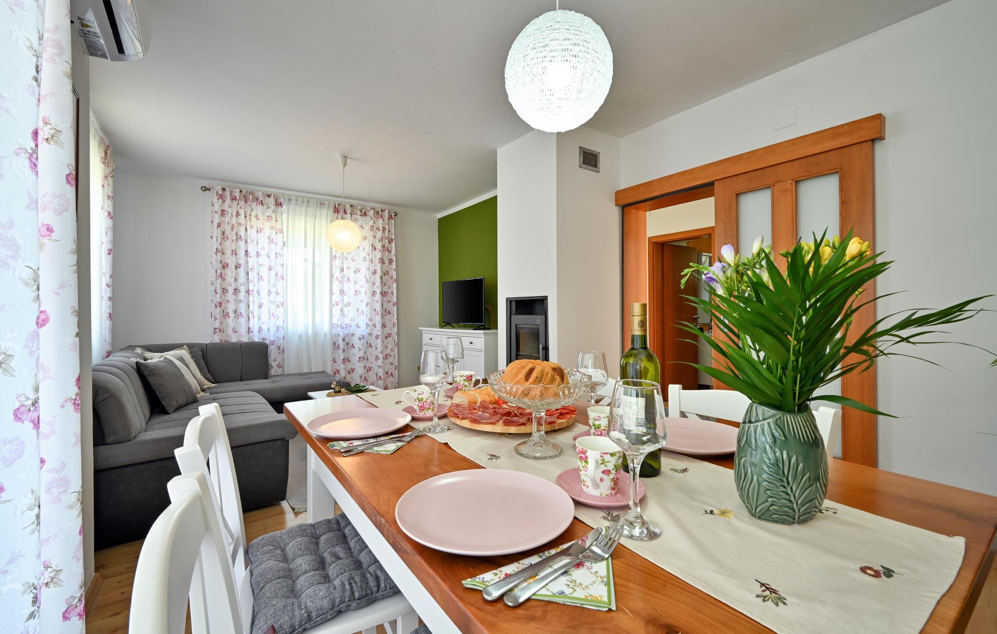 Nyd en harmonisk pause med familien i dette komfortable feriehus med pool og legeplads.