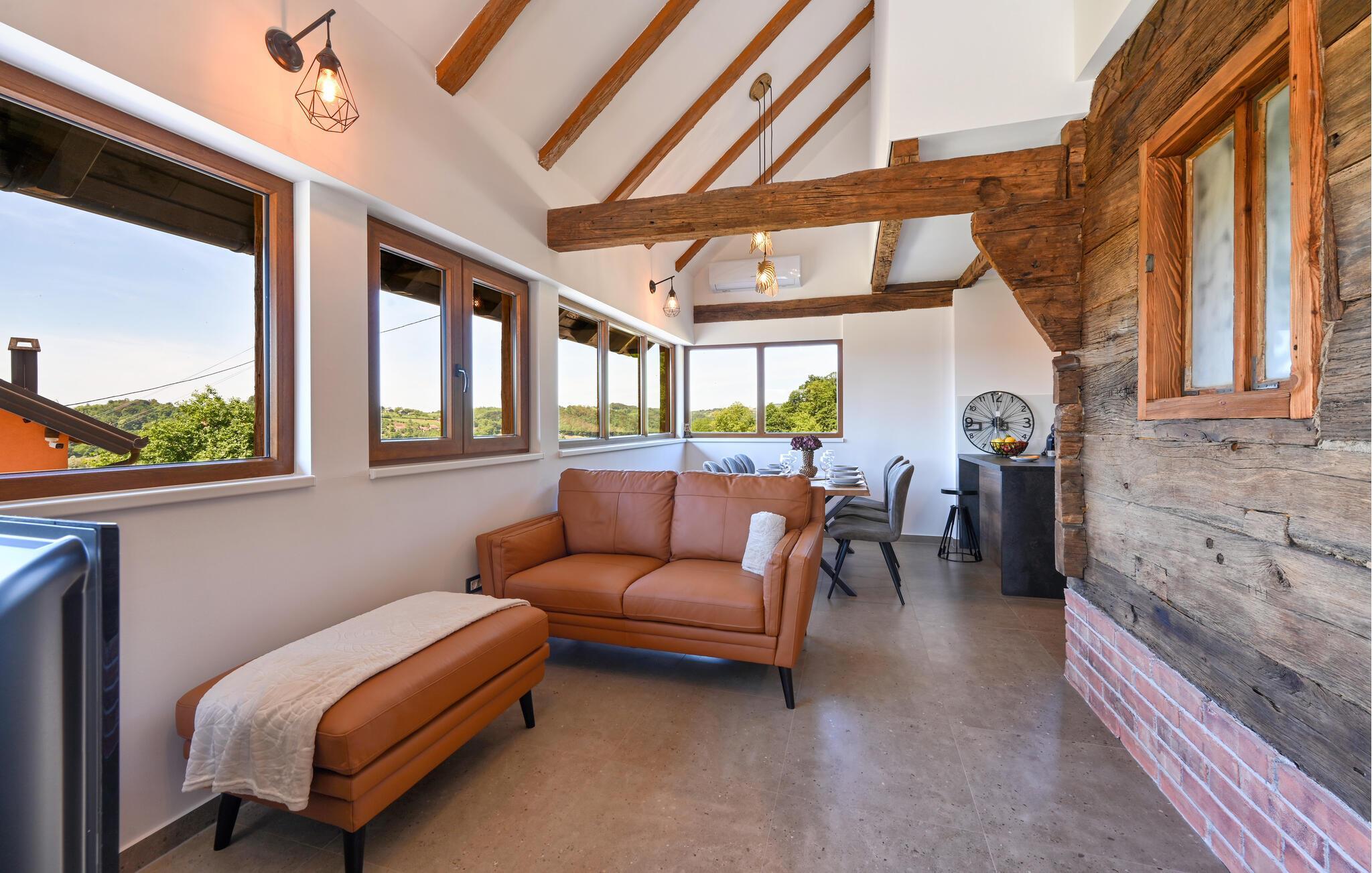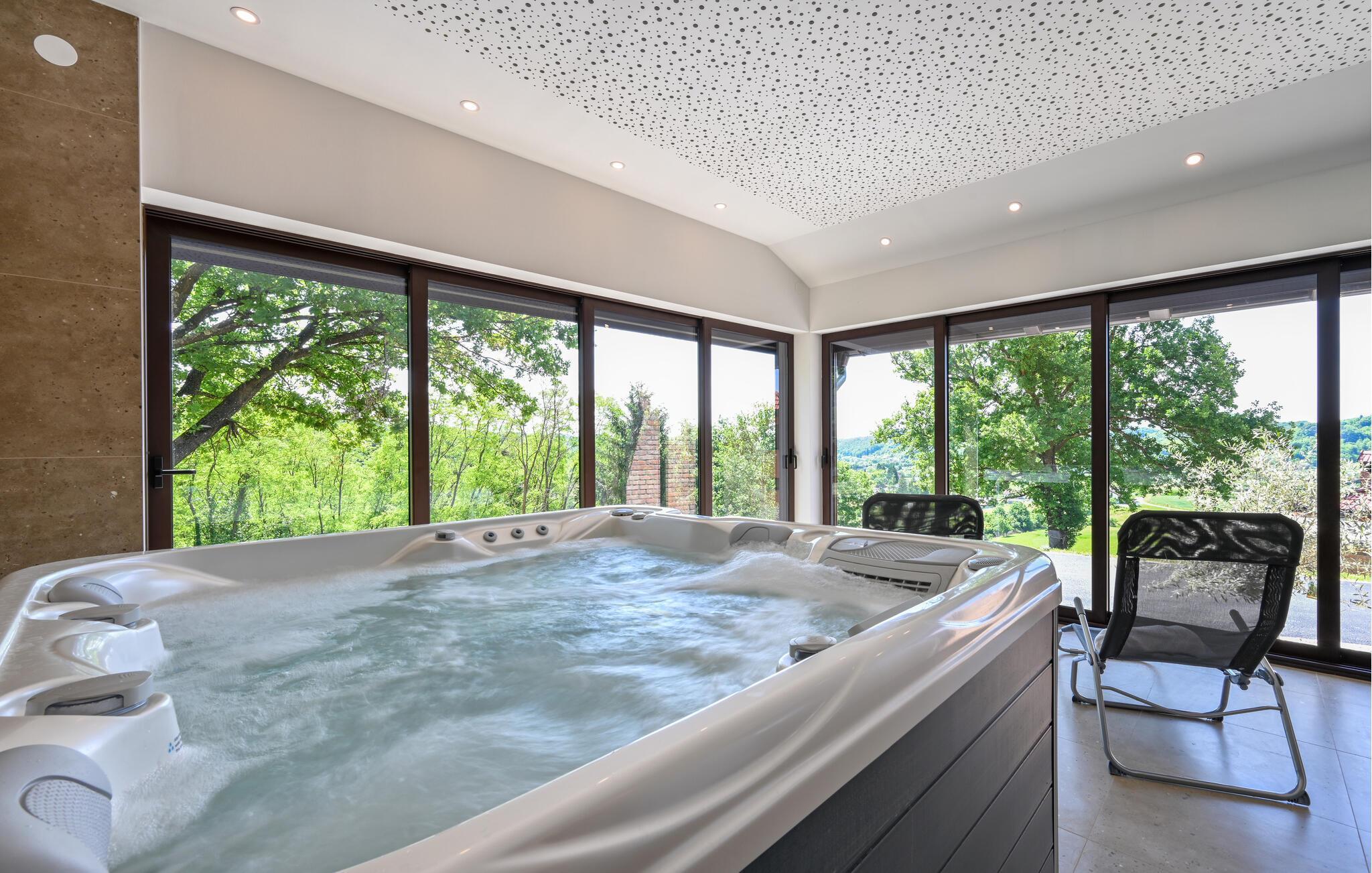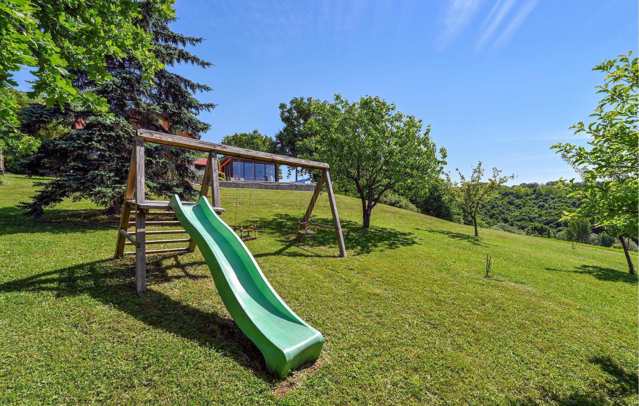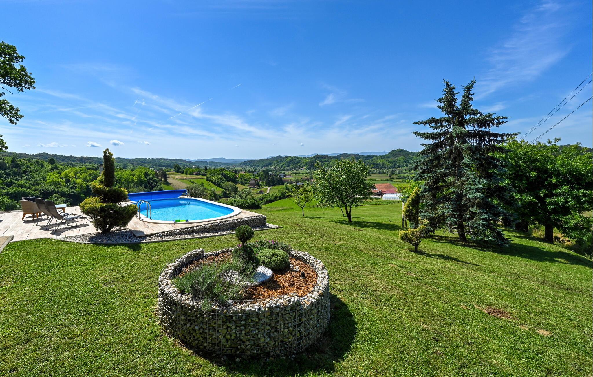 Tab kæben over den panoramiske udsigt over landskabet i dette børnevenlige hus med pool og wellness.