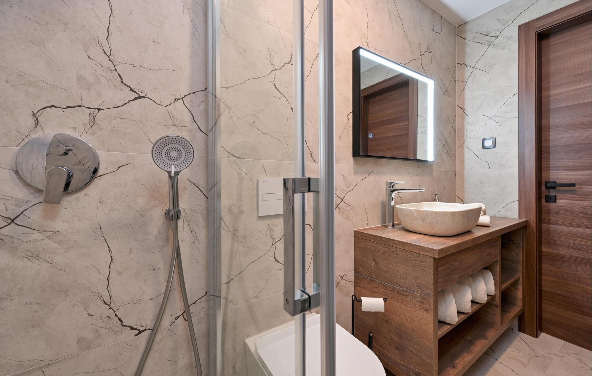 Badeværelse 4m2 (nr. 1) - WC. Varmt og koldt vand. Bruser