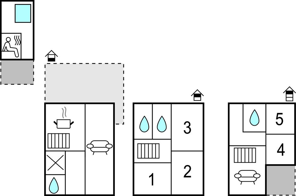 Badeværelse 5m2 (nr. 3) - WC. Varmt og koldt vand. Bruser