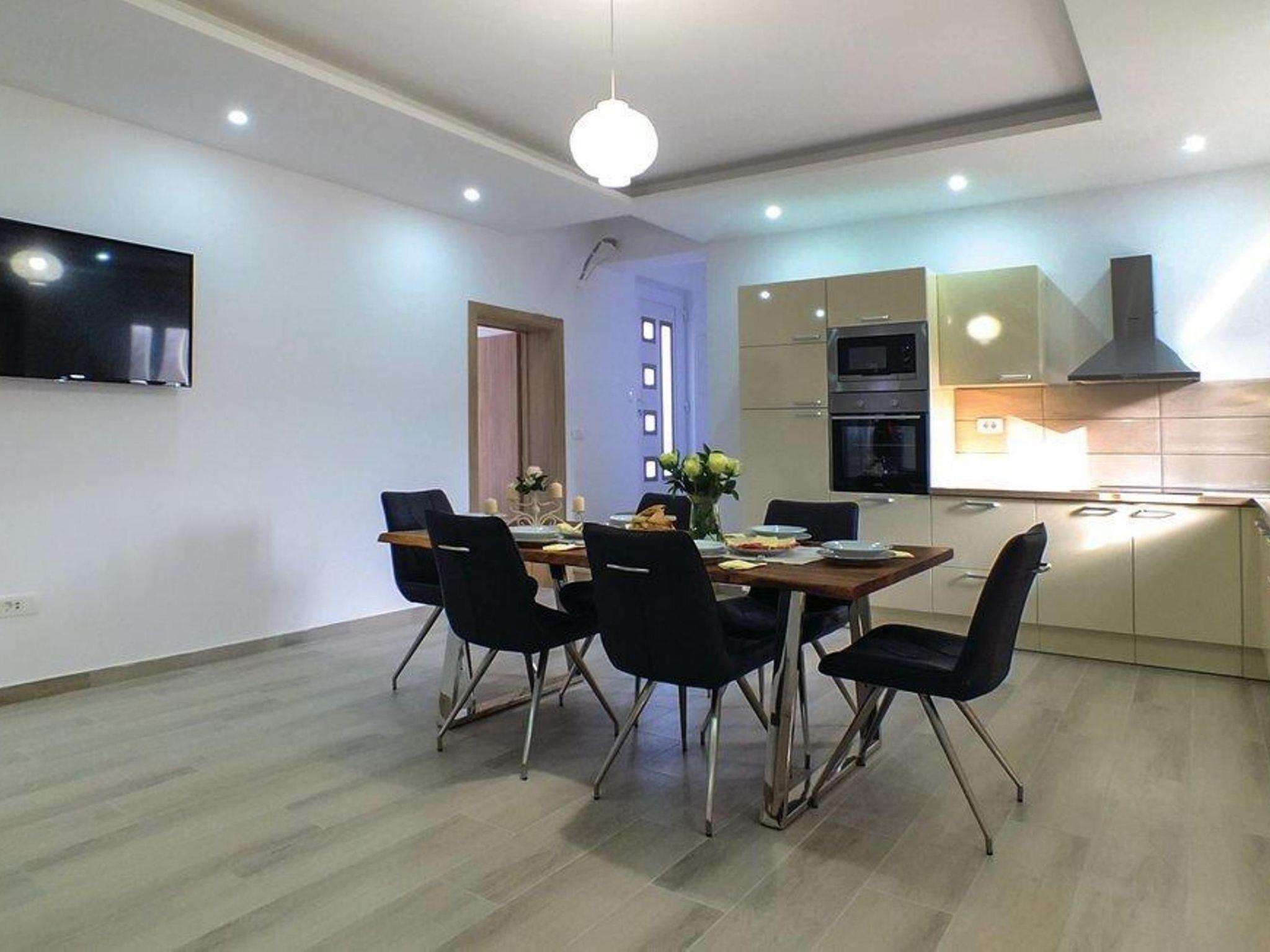 This holiday home has a private pool (38m²), private parking and a wide variety of activities for children and adults, including: child-friendly playground, volley ball net, trampoline, etc. Relax on the large terrace at the outdoor dining table or just sunbathe on the sun loungers under the golden Croatian sun.