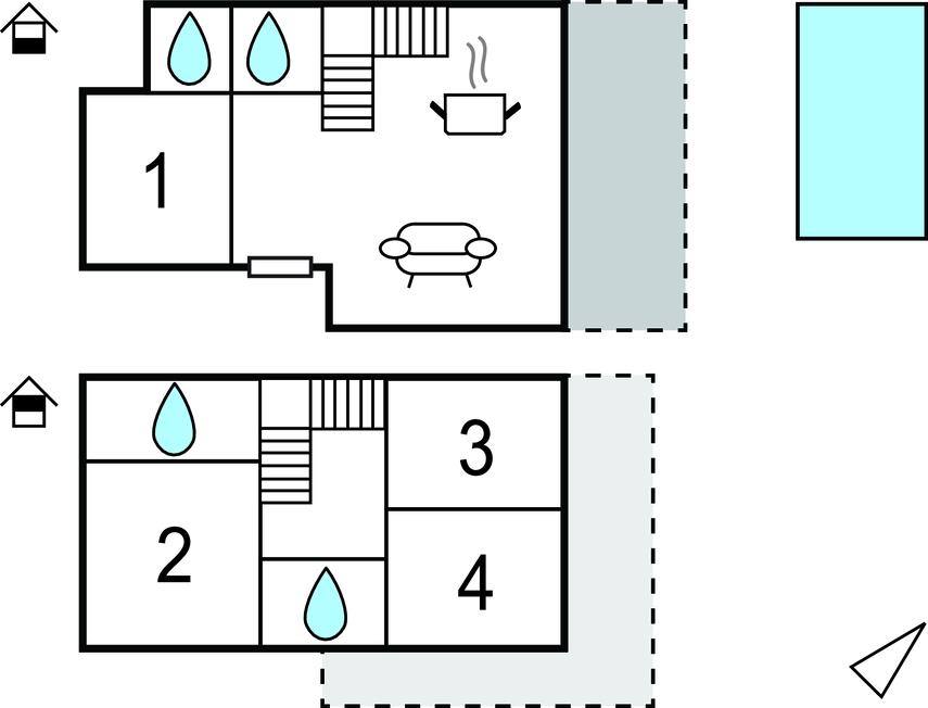 Badeværelse 4m2 (nr. 1) - WC. Varmt og koldt vand. Bruser