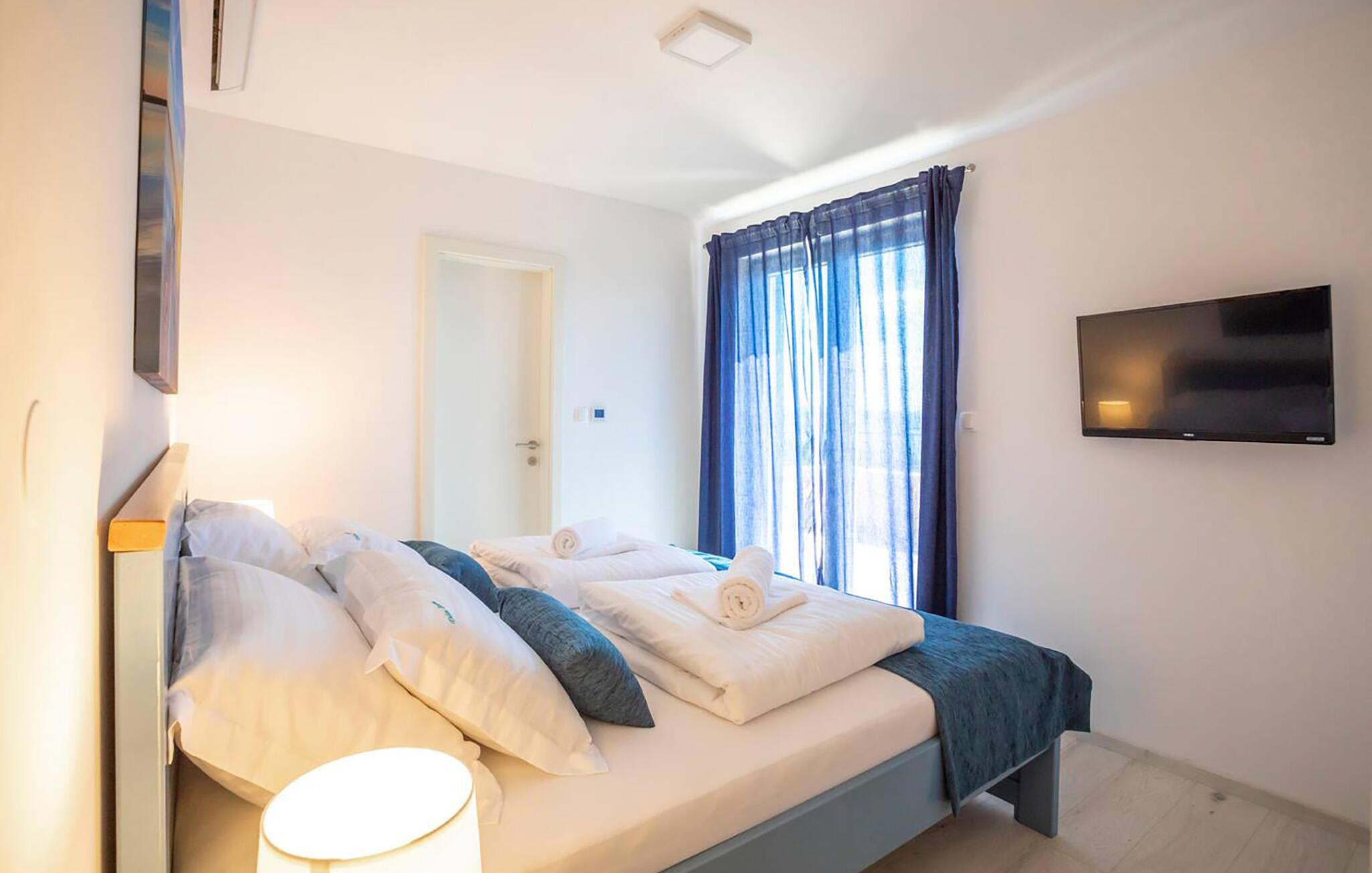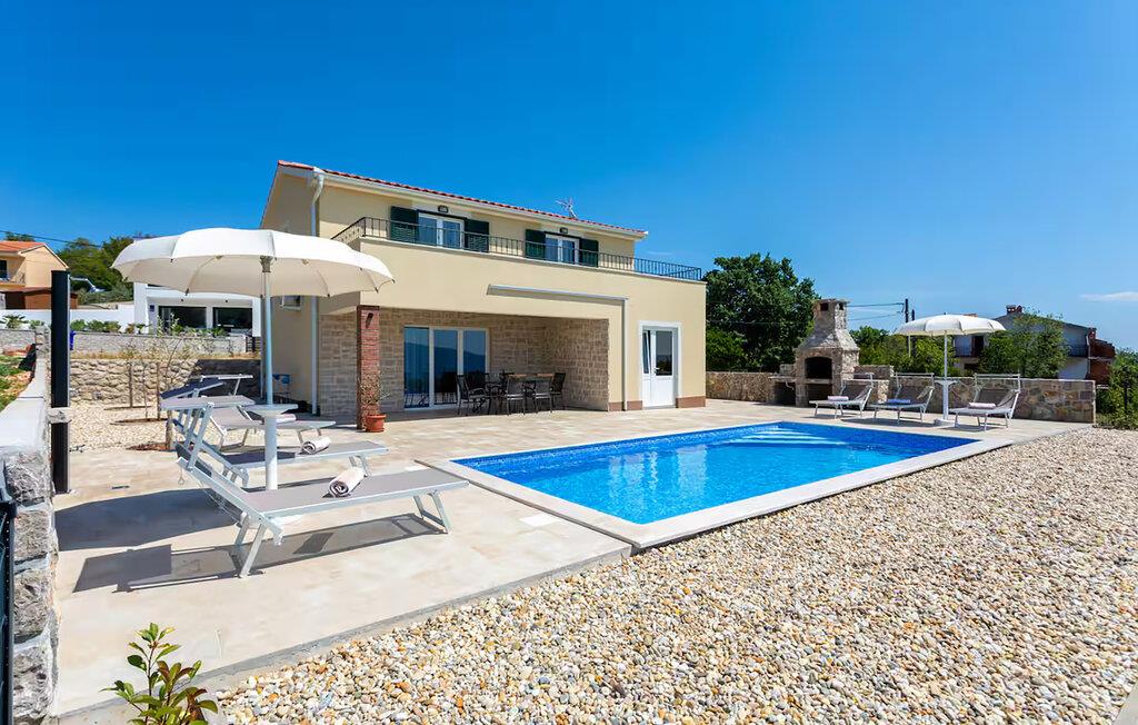 Tilbring en uforglemmelig ferie i dette komfortable feriehus med pool og havudsigt. Dette rummelige og komfortable feriehus byder jer velkommen med en frisk og velholdt atmosfære, der vil give jer en dejlig feriefølelse fra den allerførste dag. Tilbered lækre måltider med familien eller venner, og saml jer omkring det behageligt oplyste spisebord til harmoniske måltider, som også er perfekte til en spilleaften efter en lang dag. Den hyggelige stue inviterer jer til at slappe af med en god bog – eller streame en film, som alle vil nyde. Lige efter at I vågner op, kan I nyde udsigten over det glitrende hav fra altanen. Tag en dukkert i den pragtfulde pool, og server en lækker morgenmad på den skyggefulde terrasse. Genoplad batterierne på liggestolene, spil et slag bordtennis, og tænd op for grillen ved solnedgang. Oplev skjulte bugter med turkisblåt vand på en kajaktur, slentre gennem de smalle gader i Krks gamle bydel, og prøv typiske ø-retter i traditionelle konobas (taverner). Beundr Baškas månelandskab, og tilbring lange, solrige timer på den vidtstrakte stenstrand.