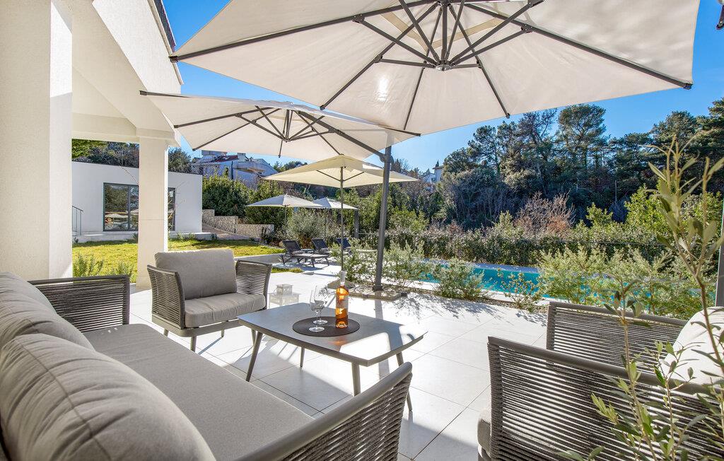 Udeområdet er tilsvarende fantastisk med mange terrasser, altaner og poolen, så I kan nyde solen fra morgen til aften og dyppe jer, lige så tosset I vil. Udfordr flokken til drabelige dueller ved bordtennisbordet og rund en lækker feriedag af med saftige bøffer fra grillen og lækker, kroatisk vin.