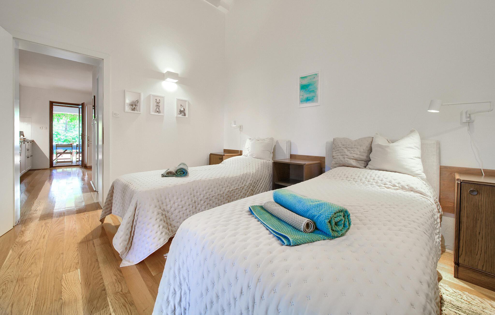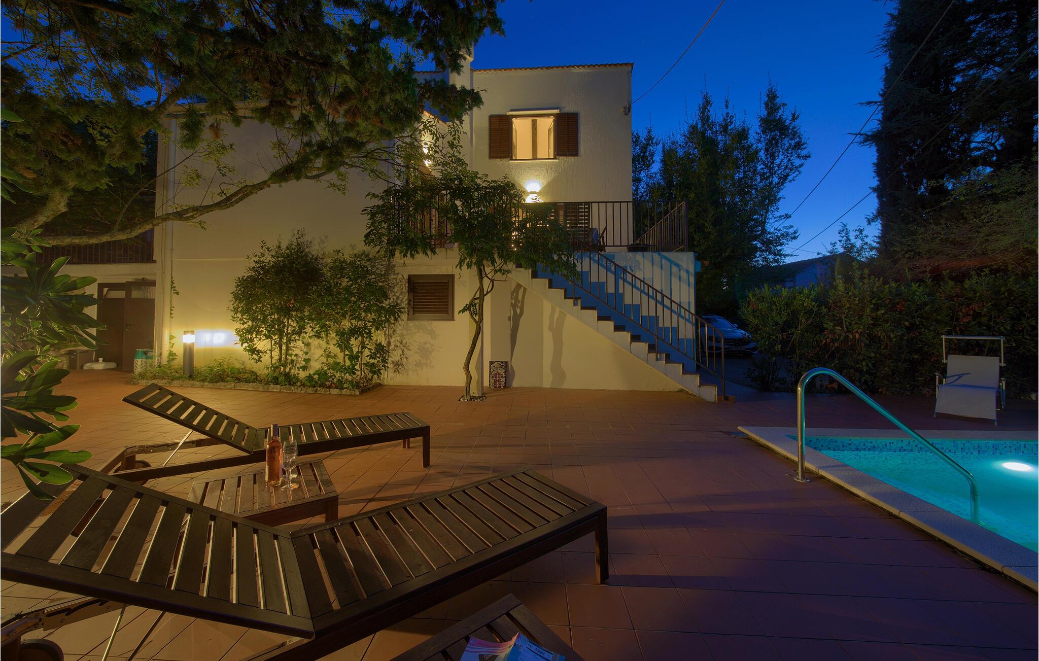 Udendørs venter en drømmeagtig have med masser af grønt, en indbydende udendørspool og tre rummelige terrasser med kvalitetsmøbler. Nyd hyggelige grillaftener, mens I lader blikket glide ud over det nærliggende hav. De første strande er nemt tilgængelige til fods, og centrum af Malinska med restauranter og caféer ligger tæt på. Der er parkering direkte på ejendommen.