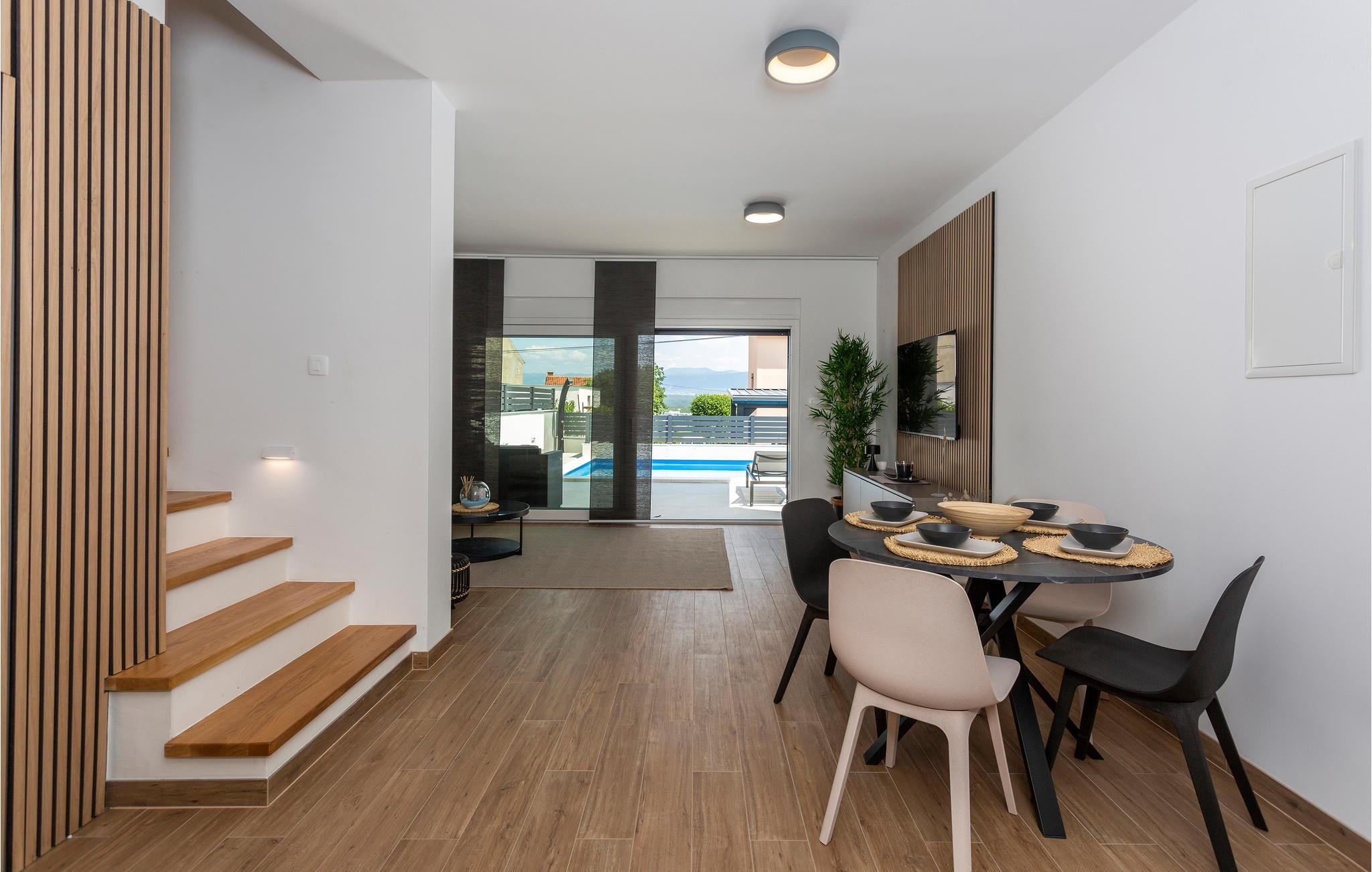 Dette moderne og luksuriøse rækkehus med swimmingpool byder jer velkommen på den populære solrige ø Krk. Rejs til øen Krk med familien og tilbring en uforglemmelig ferie i dette smukke og smagfulde hus. Ved indretning og indretning af huset blev der lagt vægt på komfort, design og stil. Føl jer hjemme på de to etager og nyd tiden sammen med leg, madlavning og afslapning. Træd ud af stuen ud på terrassen om morgenen og nyd jeres kaffe i solen. Så snup en frisk dukkert i poolen, inden I spiser jeres morgenmad på den skyggefulde terrasse og planlægger aktiviteter og udflugter. Det smukke hus har en fantastisk beliggenhed til ture rundt på hele øen Krk. Spis på de fremragende nærliggende restauranter, prøv lokale delikatesser eller bare slentre gennem byen. Men I kan også få fat i jeres strandtaske og gå de få hundrede meter til stenstranden. Dyk ned i det azurblå vand og lad jer blive båret på vandoverfladen. Besøg byer som Malinska, Silo og Krk med sand- og stenstrande, strandpromenader og smag lækre middelhavsspecialiteter og fisk og skaldyr. Udforsk mange kulturelle begivenheder og sommerfestivaler, drik lokal vin og tag på vandre- eller cykelture i området. Tilbring en dag i det kulturelle centrum af Krk, hvor I kan slentre gennem den gamle bydel, fordybe jer i øens historie og slentre gennem gaderne. Velkommen til øen Krk!