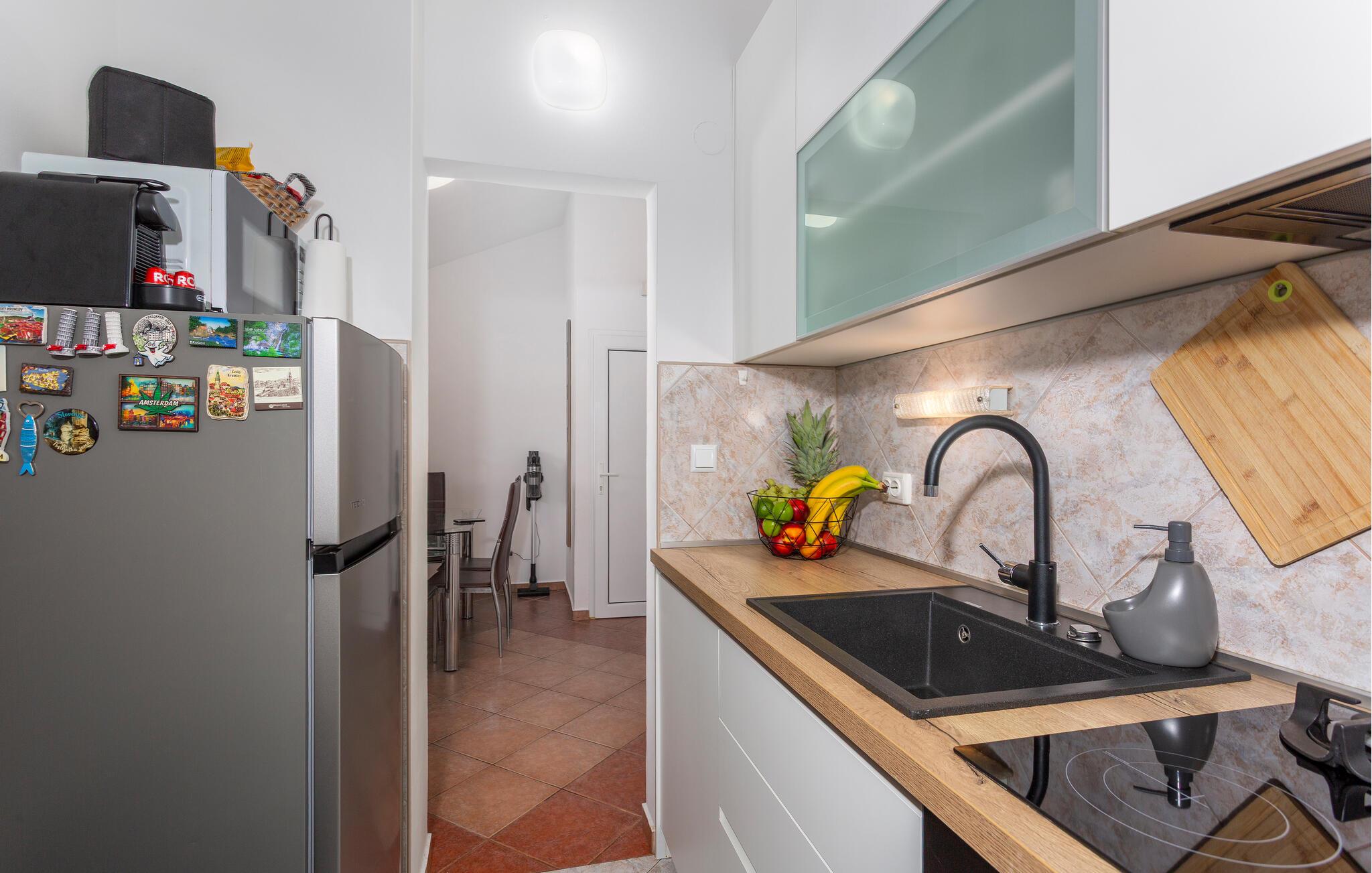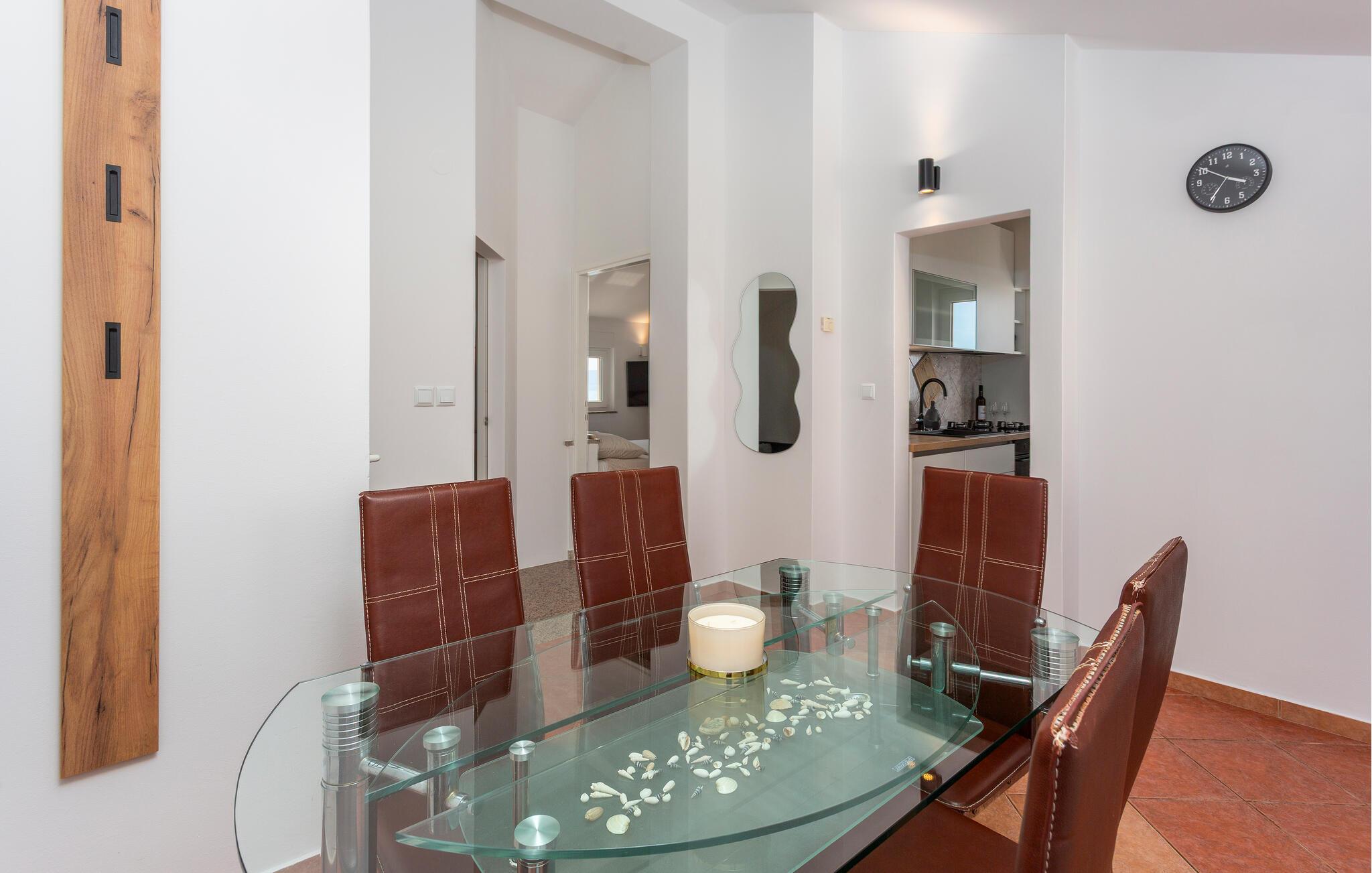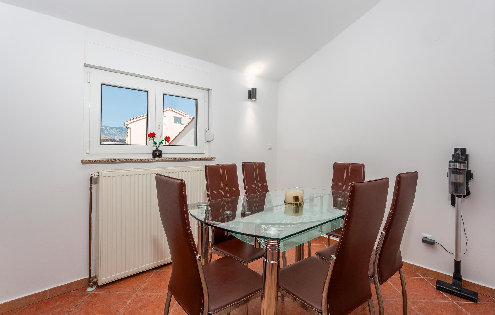 Dette praktisk indrettede feriehus tilbyder en ideel base for at nyde middelhavsatmosfæren på den maleriske ø Krk. Tilbered lækre retter, planlæg jeres aktiviteter, og slap af efter en travl dag med en film eller et brætspil.