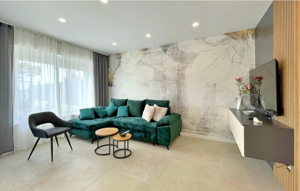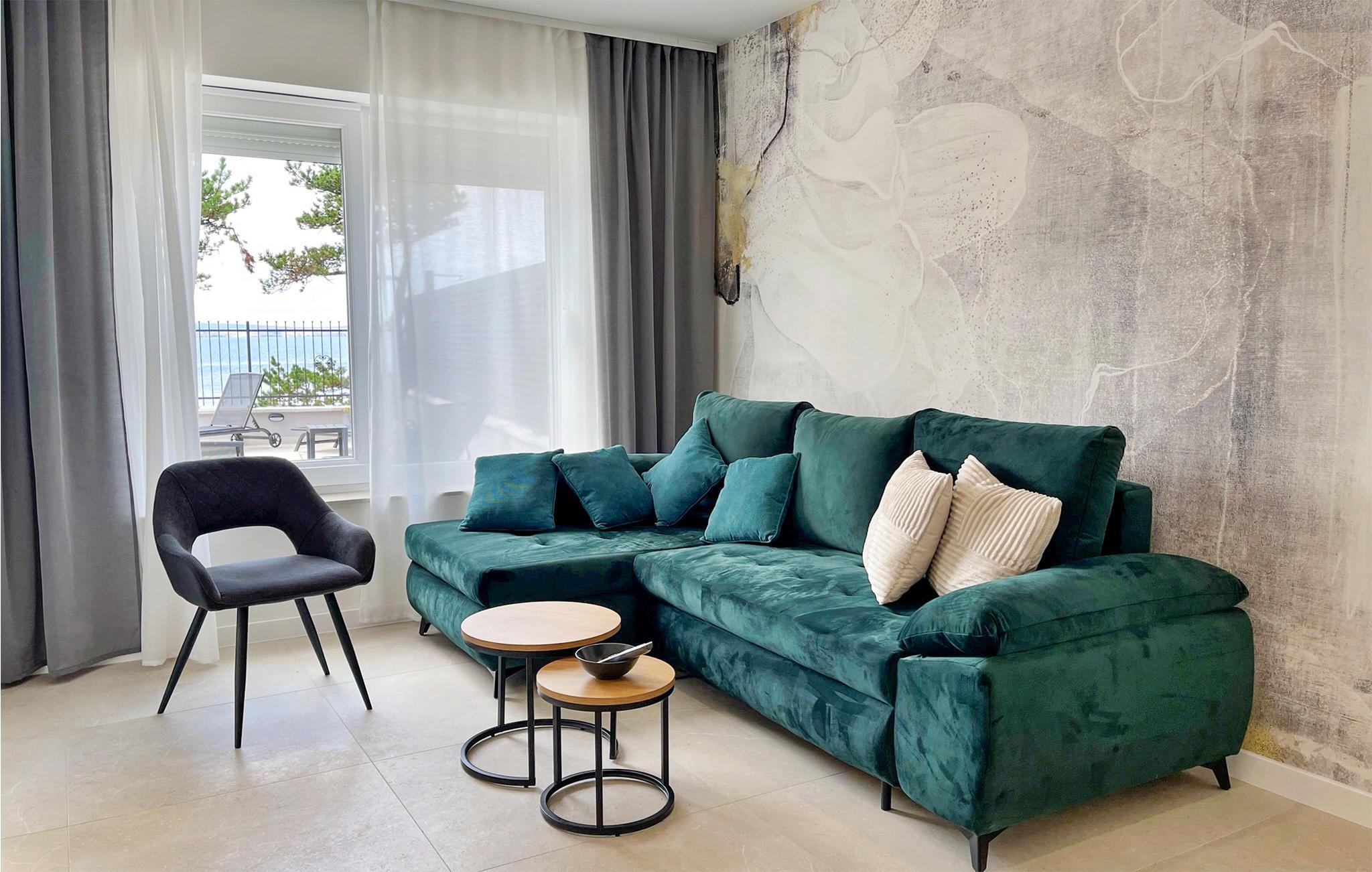 Velkommen til denne skønne lejlighed, som har en fantastisk beliggenhed ved havet, så her får I rig mulighed for en masse små ture ned for at få et dyp i løbet af feriedagene. Boligen er lækkert og moderne indrettet, så I får dejlige rammer til at slappe af efter dagens program. Læn jer tilbage i sofaen, mens I nyder havudsigten.