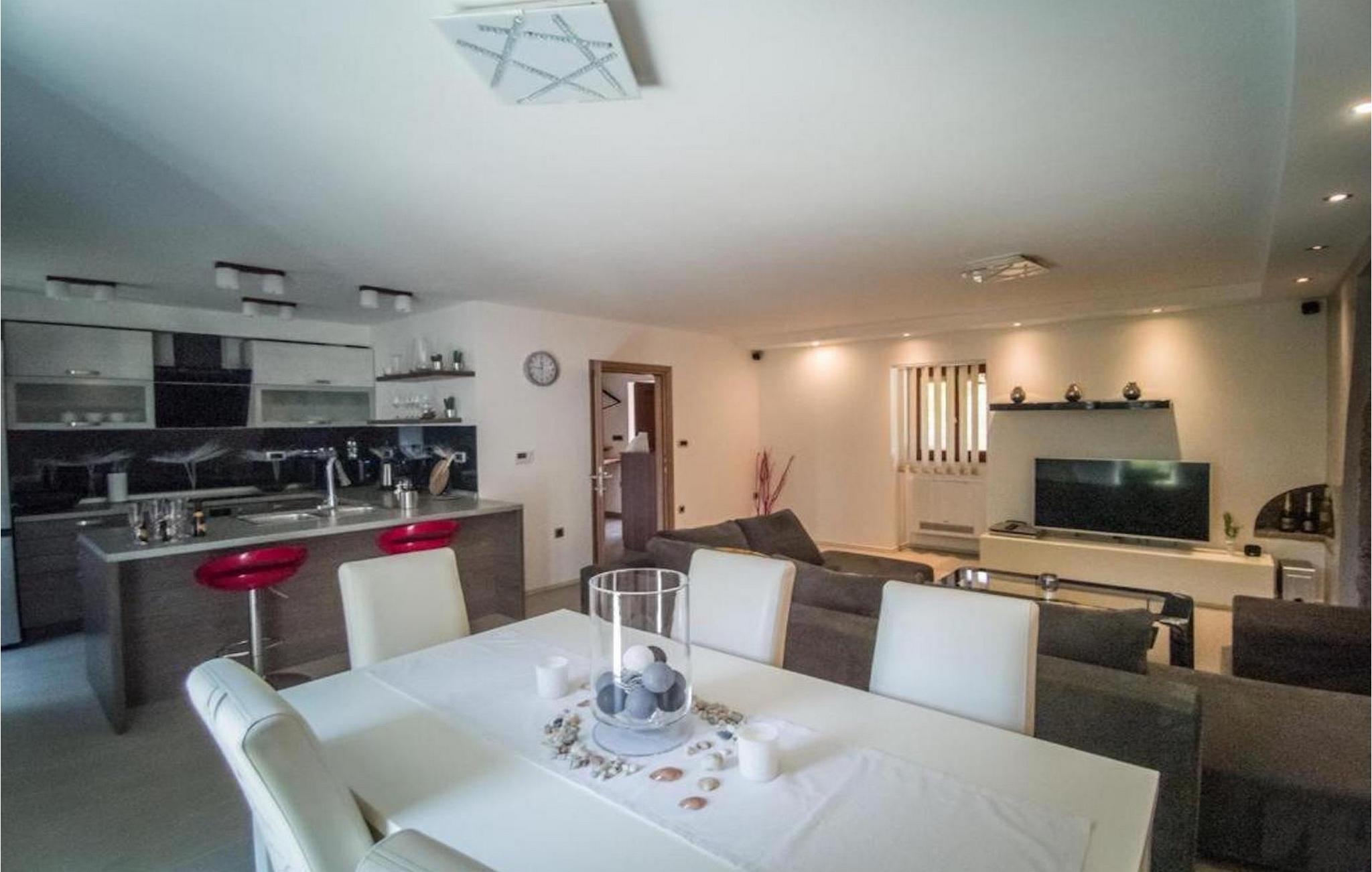 Hvis du drømmer om en ideel ferie på øen i en moderne villa helt for dig selv i fuldstændig privatliv, så er Holiday House Toš villa det rigtige valg. Specialiteten ved Holiday House Tos er nærheden til havet og en smuk sandstrand. Denne luksusvilla tilbyder dig en privat pool på 25 m2, omgivet af liggestole, beliggende i et overdækket område med gardiner, og tilbyder dig førsteklasses nydelse med forfriskende drinks. Du kan helt sikkert forestille dig, at du slapper af i jacuzzien på første sal, på terrassen i villaen og ser den romantiske stjernehimmel. Kæledyr er også velkomne i villaen. For de mindste gæster er der en udendørs legeplads og en trampolin, hvor hele familien kan hygge sig. Udover trampolinen kan du også more dig med at spille badminton, mens du venter på, at frokosten bliver tilberedt på den udendørs grill. Nyd tilberedte delikatesser ved spisebordet med 10 siddepladser. Inde i villaen er der et fuldt udstyret køkken, en stue, 3 soveværelser, 2 badeværelser og et separat toilet. Villaen indeholder alle ingredienserne til en ideel afslappende ferie væk fra hverdagen. Tilbring drømmeferien i Villa Holiday House Toš på den idylliske ø Krk. Risika er en charmerende landsby i nærheden af Vrbnik, beliggende i et idyllisk miljø med natur og smukke strande. Risika kan prale af at have den eneste sandstrand i Sveti Marek-bugten på hele øen Krk. Om sommeren kommer dette sted især til live under svømmemaraton. Mød de muntre lokale ved den største festival til ære for St. Jerome. Historieelskere bør udforske alle seværdighederne i perioden med de berømte Krk-greve på øen Krk langs Frankopan-vejene, og det ideelle udgangspunkt er bestemt Risika. I Vrbnik, hvor du vil blive mødt af vinmarker og græsgange, og mærke den autoktone ø-tradition. Smag på det gastronomiske tilbud og autoktone Žlahtina og nyd udsigten over husene samlet omkring klokketårnet og omgivet af middelaldermure. Udforsk også Baška, som skiller sig ud for sit Bašcanska ploca-monument, smukke strande og sen aftenunderholdning. Byen Krk er et uundgåeligt centrum med talrige seværdigheder og cateringvirksomheder, der vil glæde selv de mest krævende. Vælg Njivice, Malinska, Punat og Omišalj til endagsture. Besøg denne gyldne ø, rig på historie og traditioner med malerisk natur. Temperaturen i den opvarmede swimmingpool er afhængig af eksterne faktorer, herunder vejrforhold, og som sådan kan temperaturen på vandet ikke garanteres.