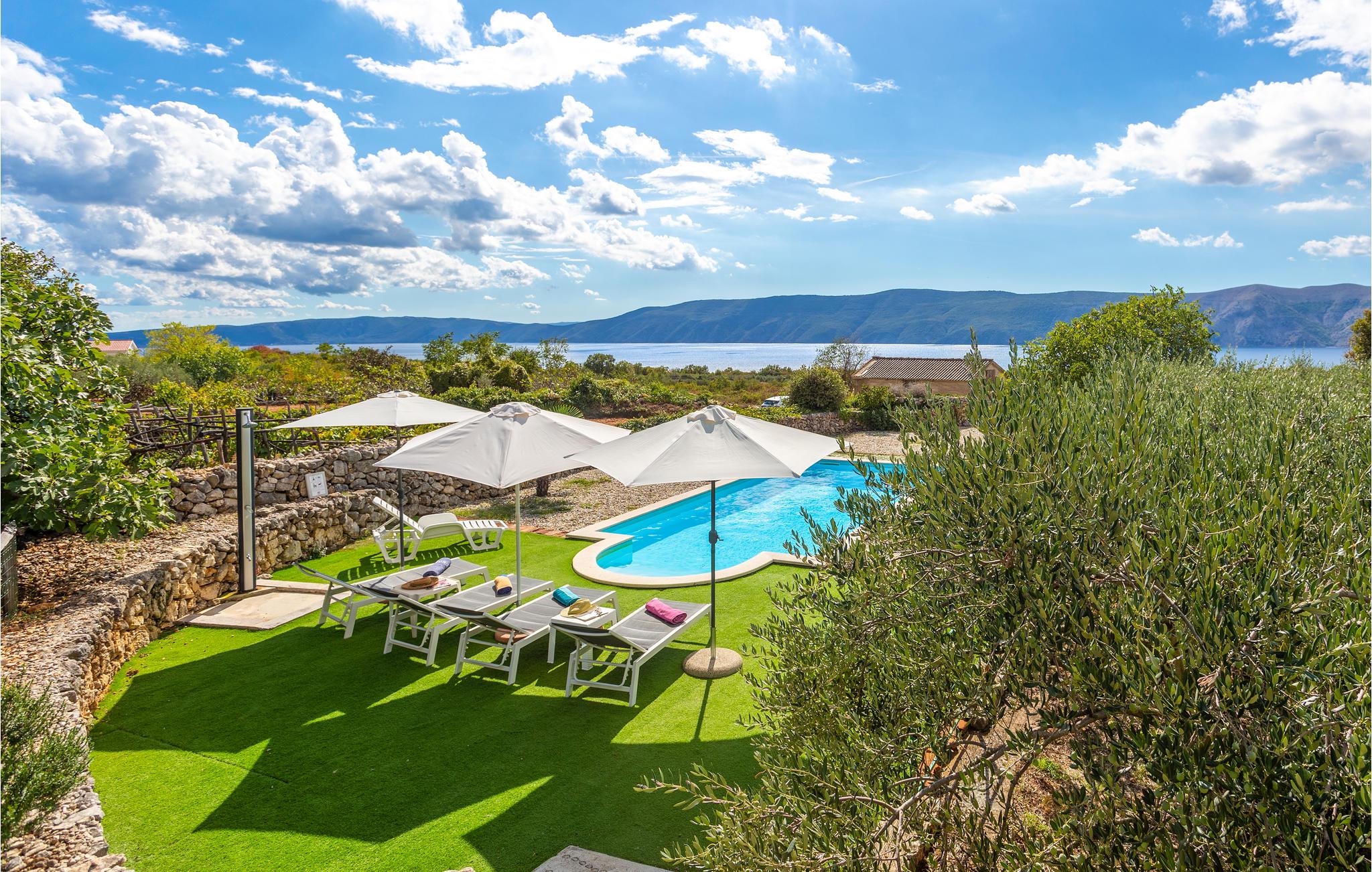 Denne smukke Villa Lara med pool ligger i den lille ø-landsby, hvor der er garanti for afslapning og sjov. Den er indrettet med stor smag og funktionalitet. Den venter på jer med en blanding af tradition og modernitet. Den laveste loftshøjde på loftet er 190 cm. Øen Krk er en destination, der tilbyder mange underholdningsmuligheder, fra det kulturelle og historiske centrum, fremragende køkken til udforskning af autentiske og hjemmelavede vine. For elskere af aktiv ferie er der flere adrenalinsportsgrene at vælge imellem. Der er stavgangsstænger til rådighed for fire personer.