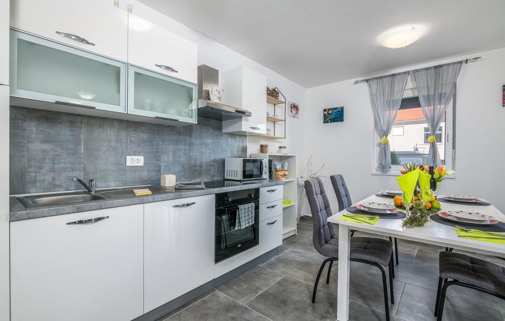 Fra stuen kan I nå en af ??de to overdækkede terrasser med en grill, hvor I kan nyde solen. På varme sommerdage lokker den private udendørs pool jer til at køle af og have det sjovt og svømme. Den smukke stenstrand og havet er kun få minutters gang væk - ideelt til en ferie med mange dage på stranden. Lejligheden har også en fantastisk beliggenhed for at besøge andre steder på øen Krk.