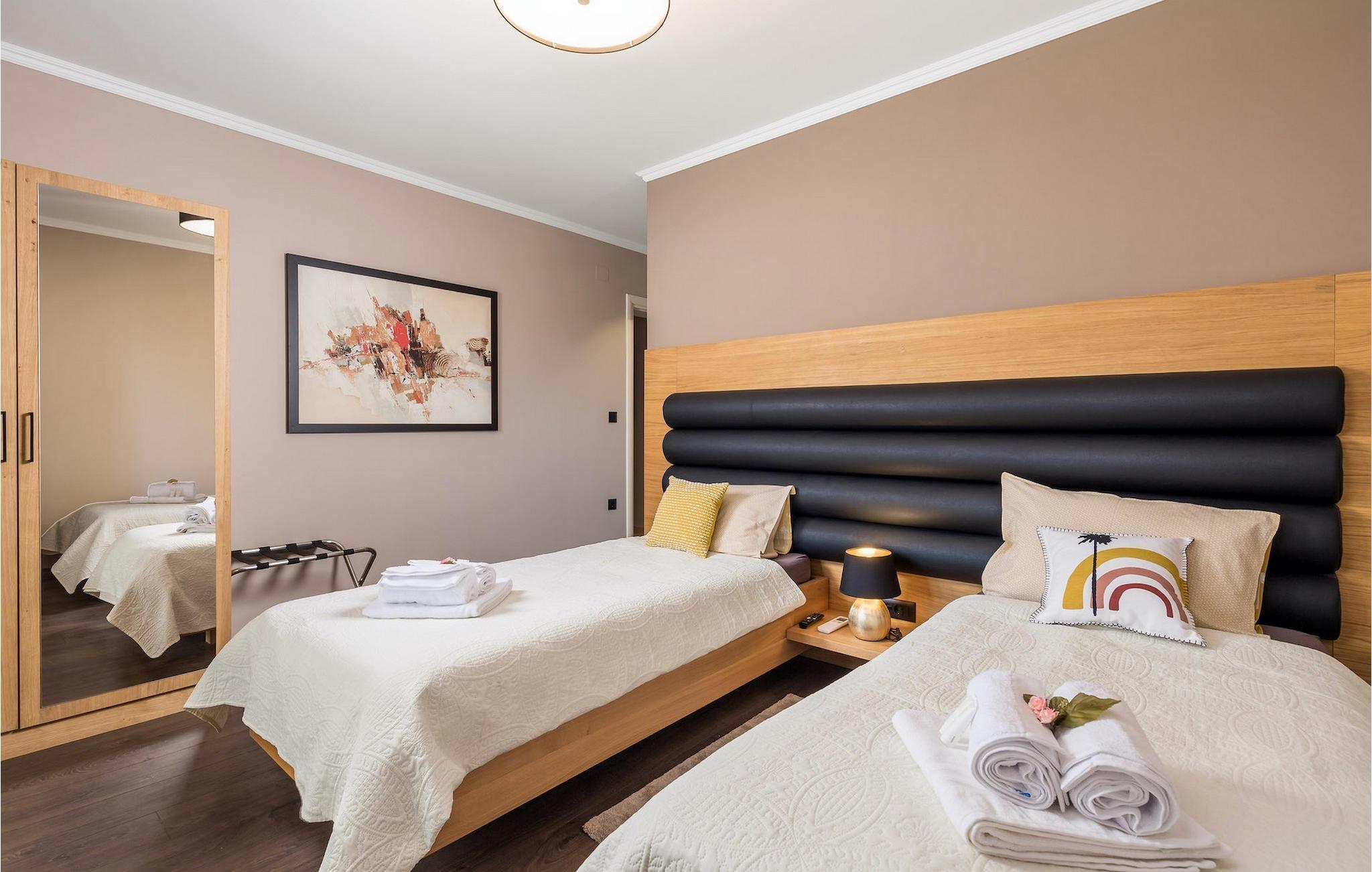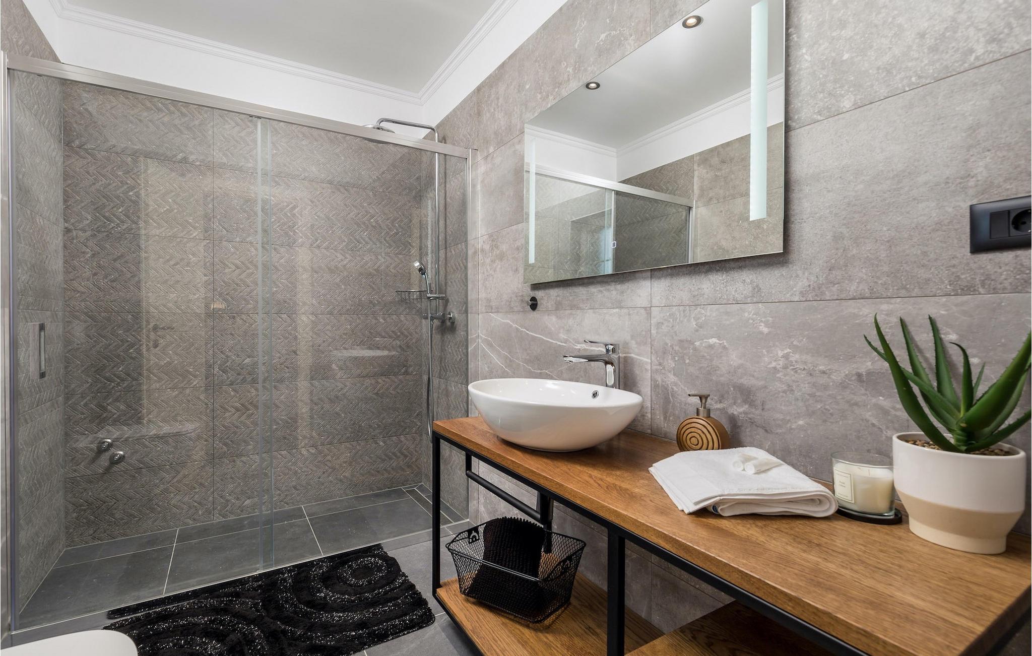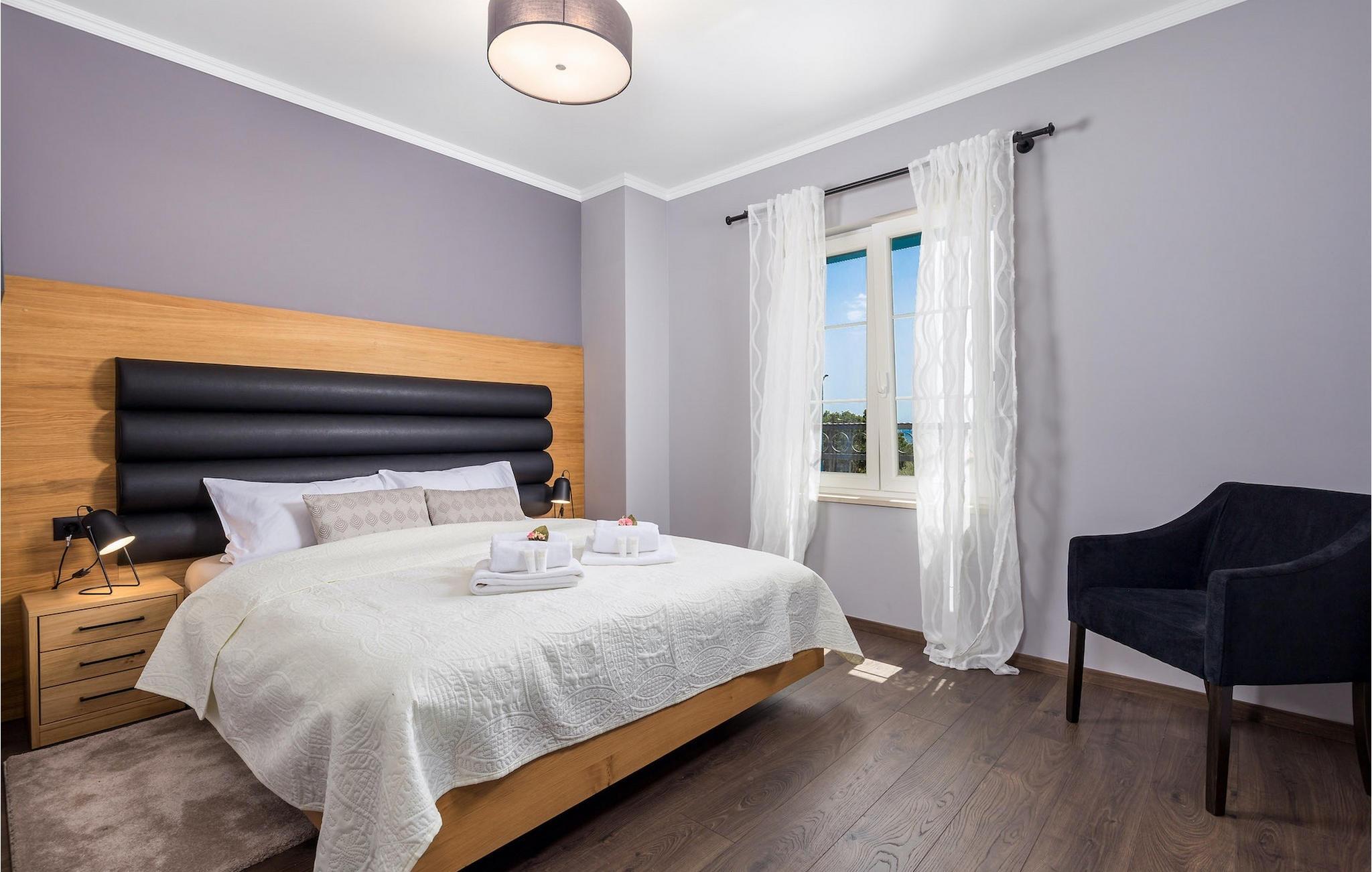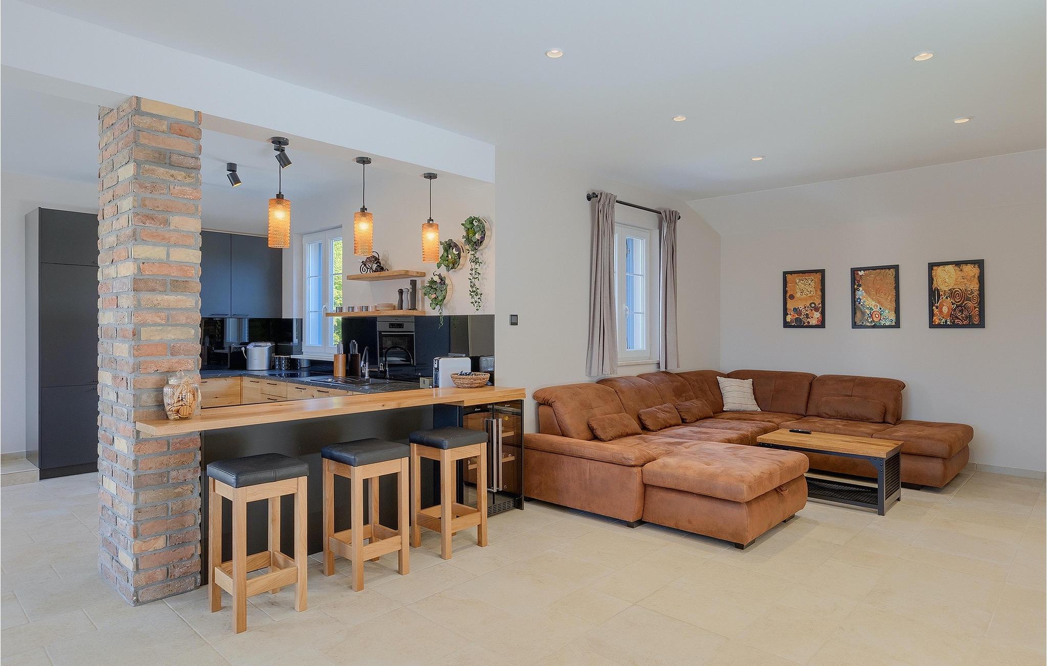 Stenvilla Maya Krk med sit rustikke udseende og rummelighed inviterer dig til at tilbringe en behagelig og behagelig ferie i villaen. Villaen er omgivet af en græsplæne med en smuk grøn have beplantet med lavendel, storslåede træer og buske, der giver den naturlig skønhed. I villaens udendørsområde er der en privat swimmingpool, ideel til at undslippe sommervarmen eller nyde solens stråler på liggestolene lige ved poolen. Mens du ser dine kære i poolen, kan du få din første morgenkaffe på den overdækkede terrasse ved siden af huset eller liggestolene under baldakinen lige ved siden af poolen. For elskere af madlavning er der en overdækket grillplads, hvor du kan tilberede traditionelle retter, mens dine kære nyder dem i den udendørs spiseplads. Sportselskere kan prøve deres kræfter med at spille boccia på petanquebanen bag huset, som er ideel til sjov og underholdning. Fra den udendørs terrasse er der adgang til husets indre, hvor der er åben, rustik opholds- og spisestue, moderne køkken, underholdningsområde med poolbord og en storslået udsigt over poolen og landskabet. På første sal er der også et depotrum, 1 komfortabelt soveværelse med eget badeværelse og 1 toilet. På anden sal i villaen er der 3 moderne soveværelser med eget badeværelse. Et værelse har udgang til altan, hvor man kan nyde en storslået udsigt over landskabet, og et andet værelse har udgang til terrassen, hvor der er et afslapningshjørne, hvor man kan slappe af med en forfriskende drink med udsigt over poolen. Book Villa Maya Krk og giv dig selv og dine kære en drømmeferie!