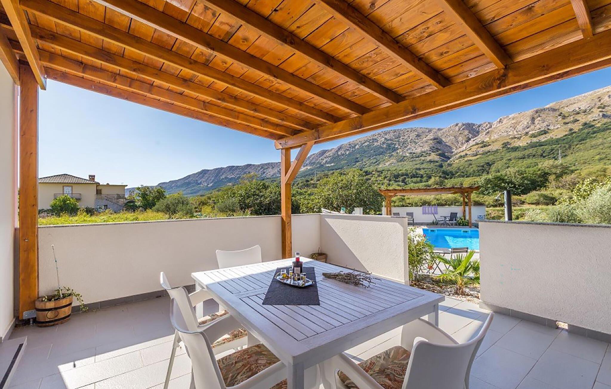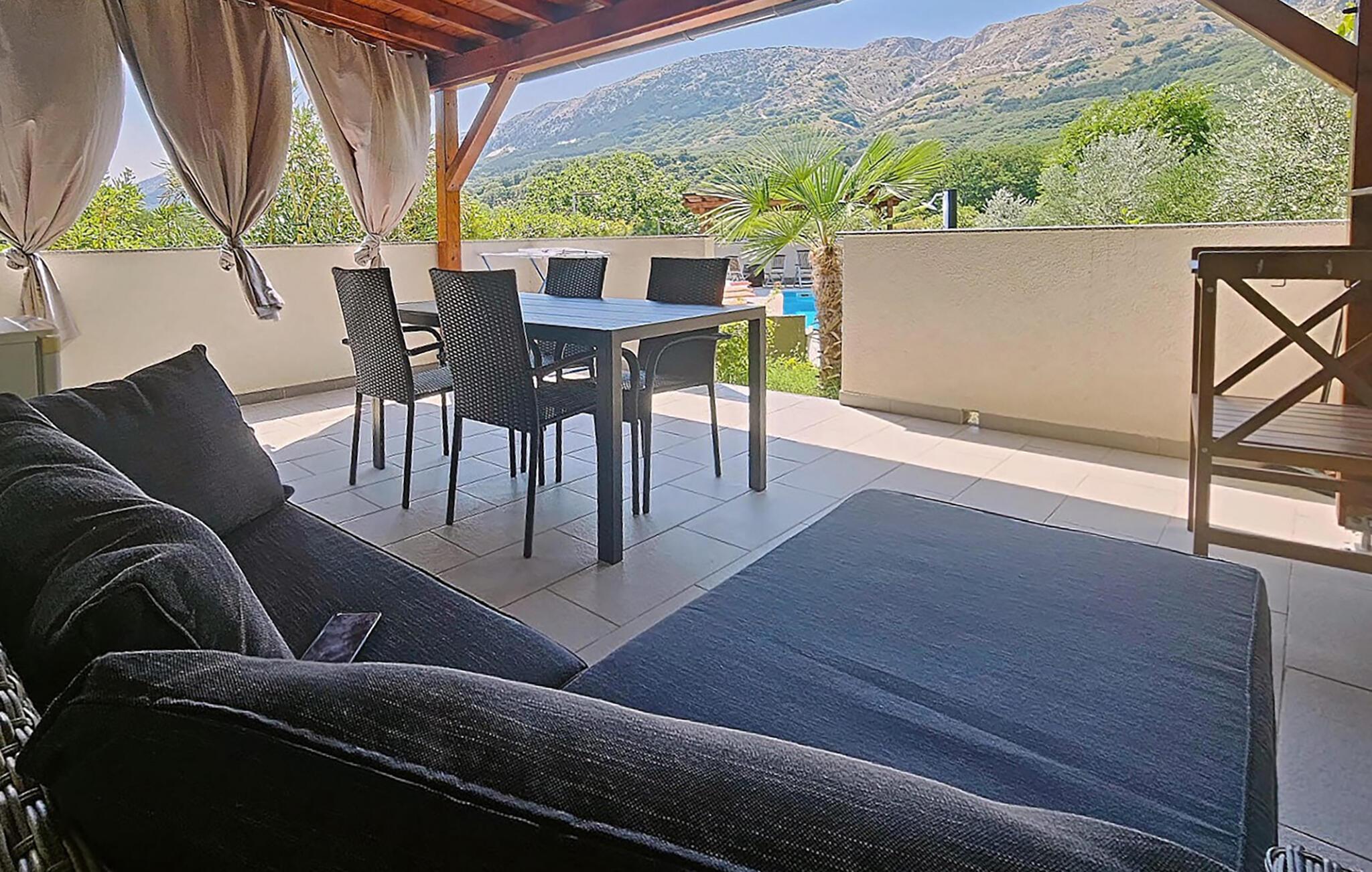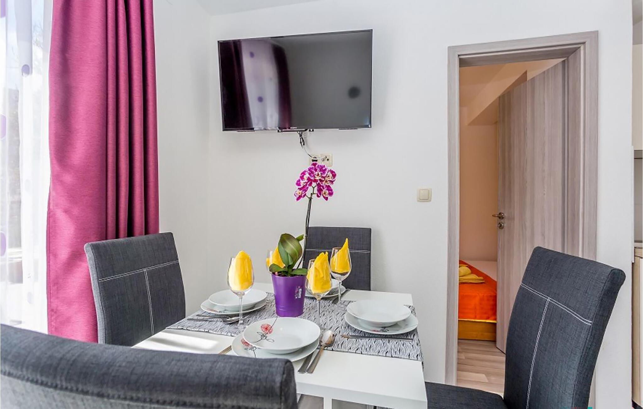 Beliggende i fredelige omgivelser og med en fantastisk udsigt over de omkringliggende bjerge, tilbyder lejligheden det ideelle tilflugtssted for par eller små familier. Træd indenfor og bliv budt velkommen af ??den lyse, venlige atmosfære. Opholdsstuen har en komfortabel sofa, et spisebord og et fladskærms-tv. Køkkenet er funktionelt udstyret og giver mulighed for at tilberede små feriemåltider.