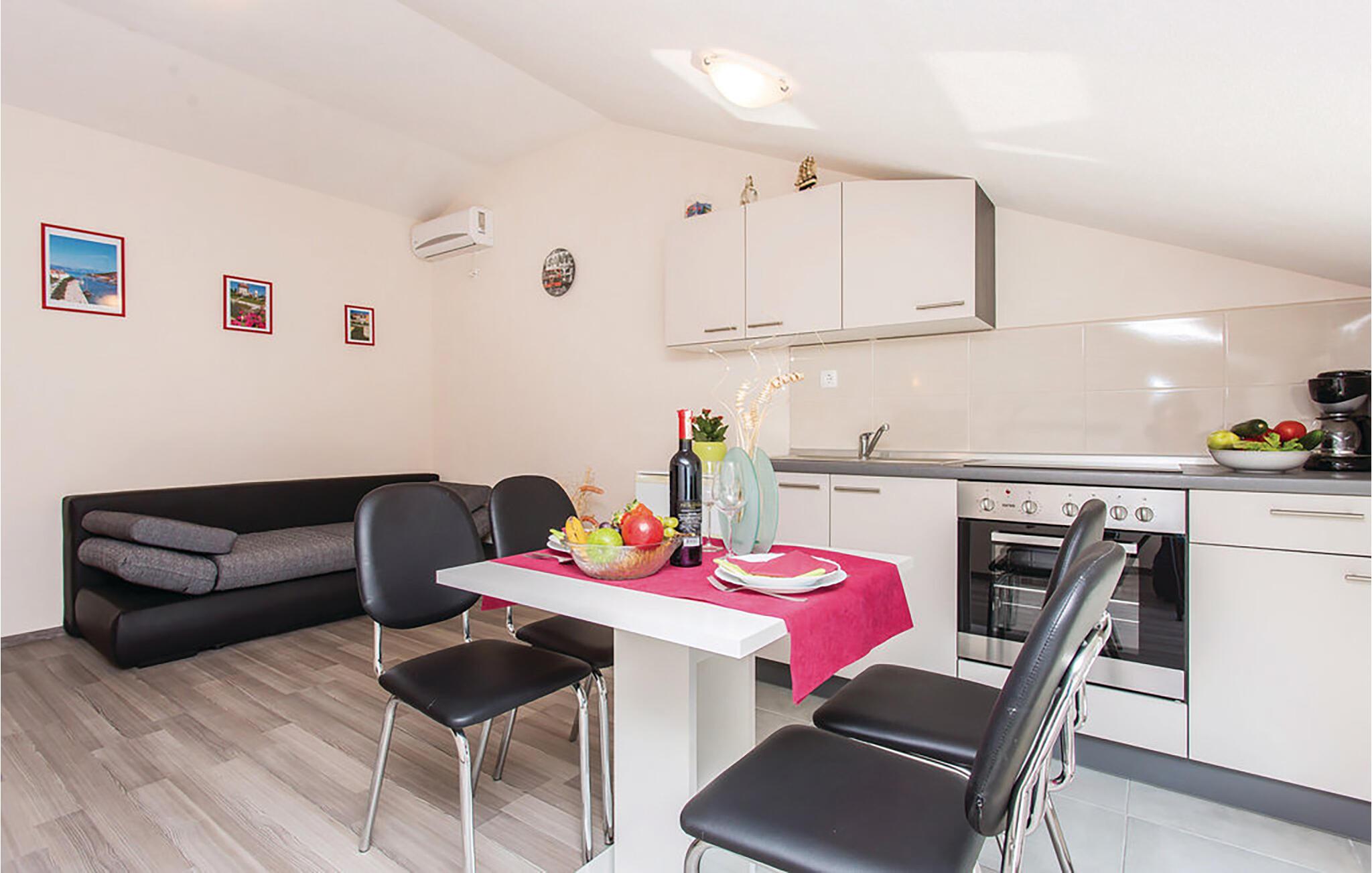 Beliggende i fredelige omgivelser og med en fantastisk udsigt over de omkringliggende bjerge, tilbyder lejligheden det ideelle tilflugtssted for familier. Træd indenfor og bliv budt velkommen af ??den lyse, venlige atmosfære. Opholdsstuen har en komfortabel sofa, et spisebord og et fladskærms-tv. Køkkenet er funktionelt udstyret og giver mulighed for at tilberede små feriemåltider.