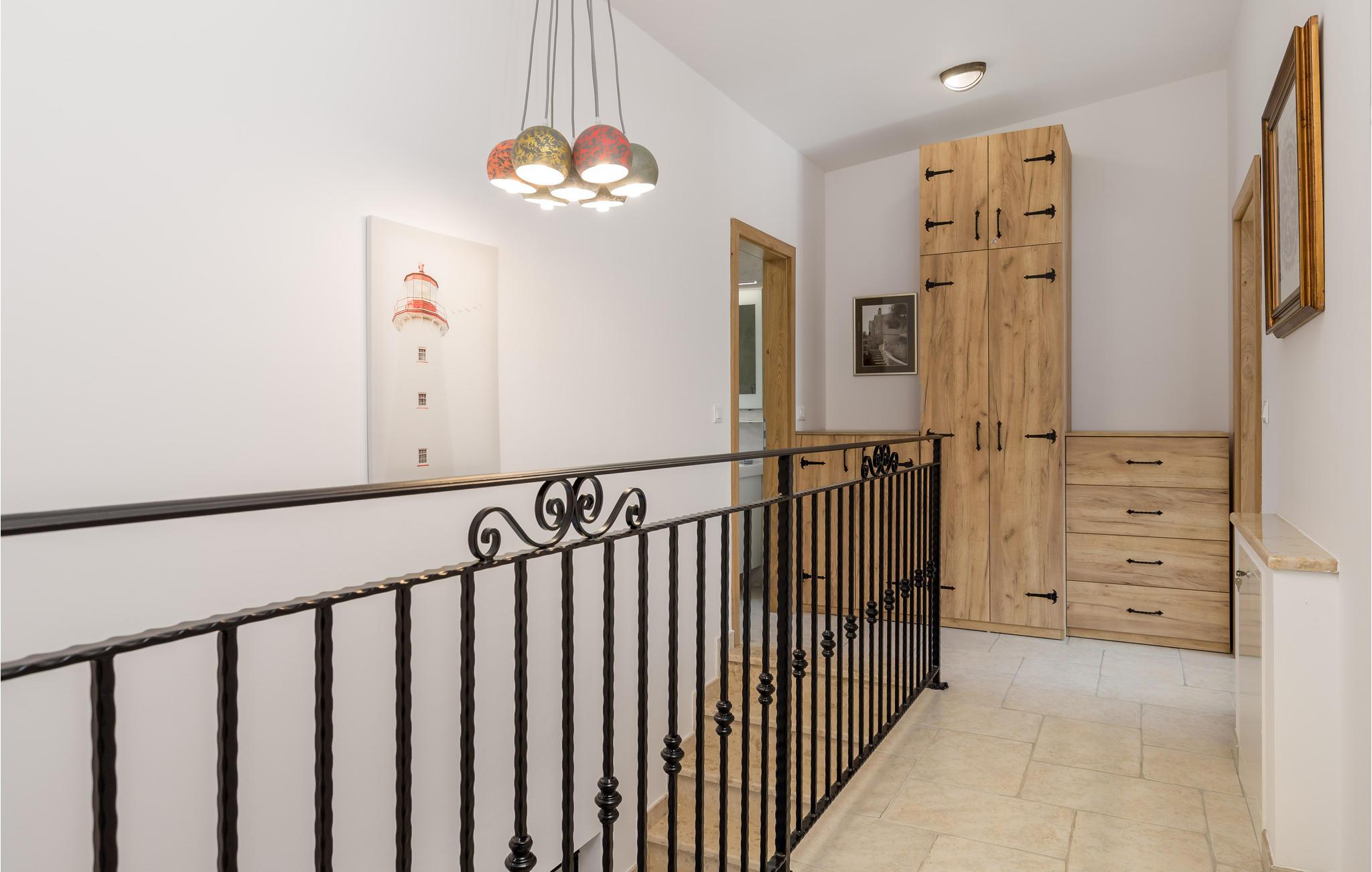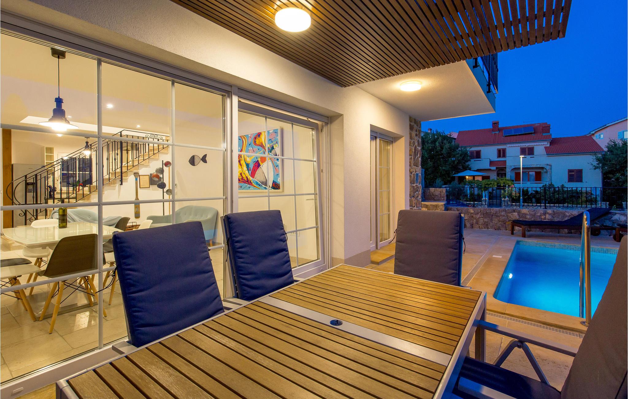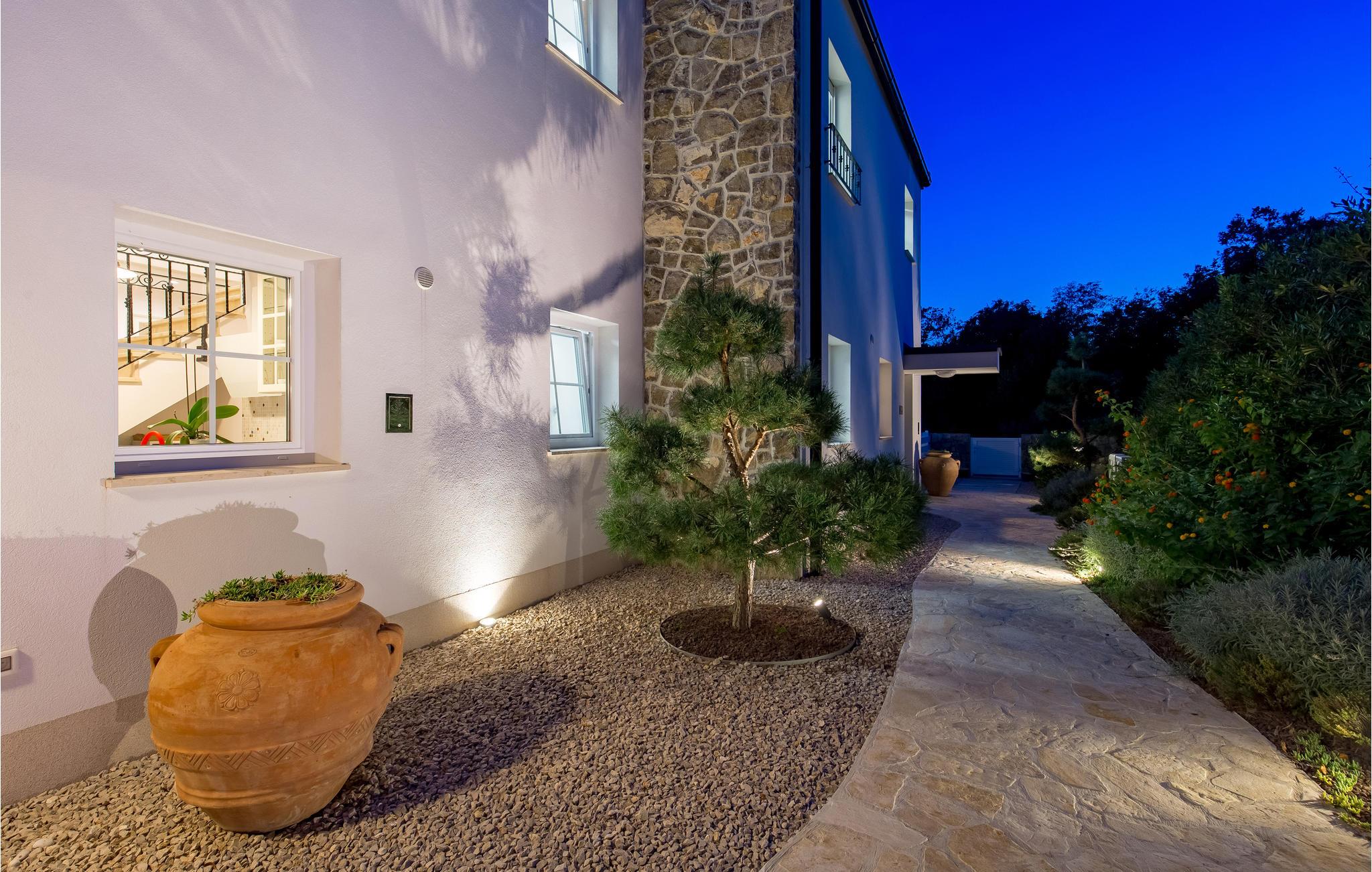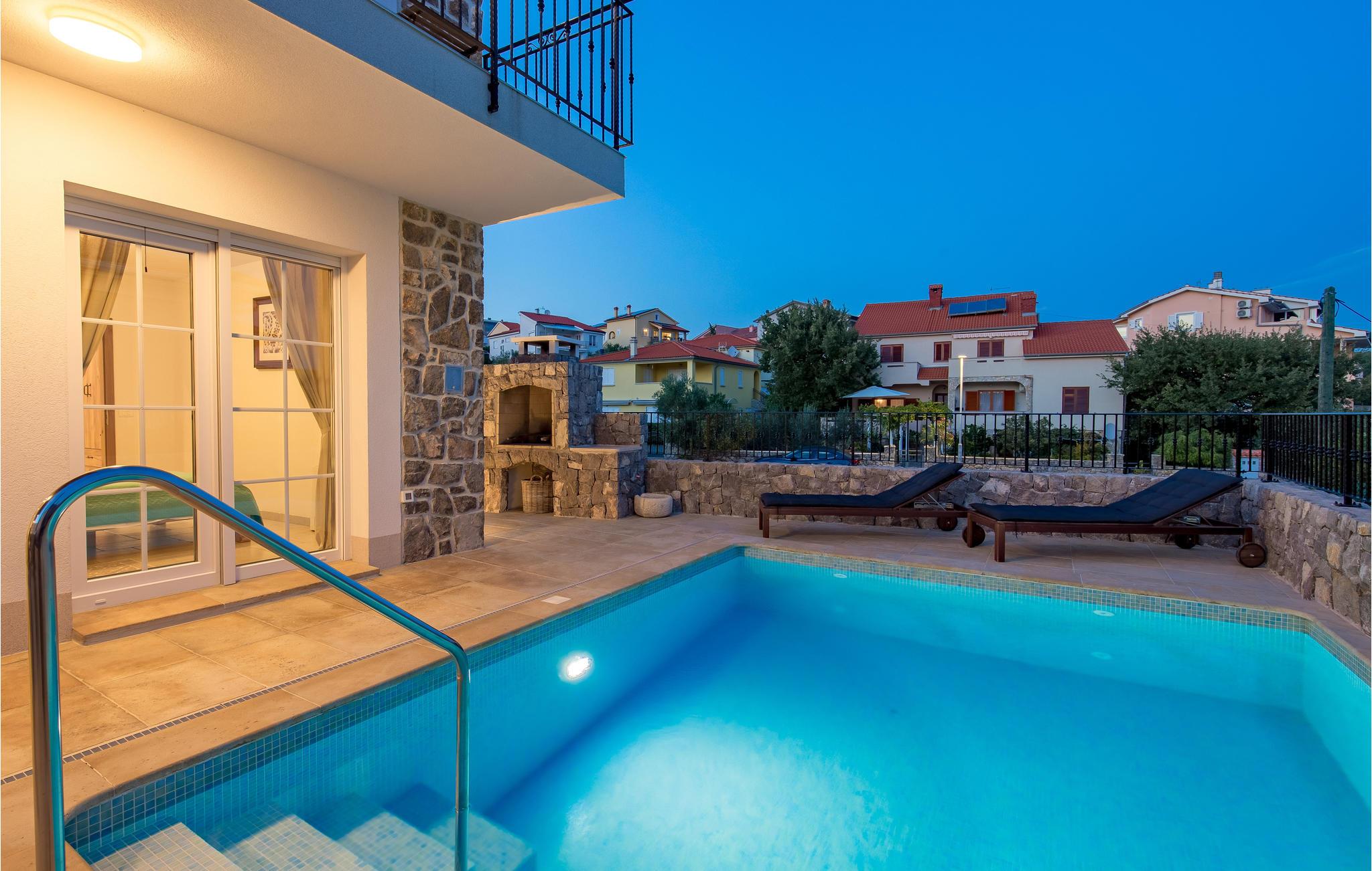 På øen Krk i den lille by Kornic ligger dette vidunderlige feriehus med egen privat pool. Det ligger kun fem minutter i bil fra den historiske by Krk og fra Punat med sin godt beskyttede havn. På grund af beliggenheden på en pakke er der en fantastisk udsigt over havet og de sølvgrønne olivenlunde, som denne region er så berømt for. Huset er indrettet med kærlighed helt ned i de små detaljer og bygget helt traditionelt, og indrettet med en vellykket blanding af gammelt og moderne. Fra stuen er der direkte udgang til terrassen med grill, loungehjørne og område til solbad samt til den opvarmede pool. Det største soveværelse ligger i stueplan og resten på første sal. I huset er der klimaanlæg, gulvvarme og I kan parkere på den store indhegnede grund.