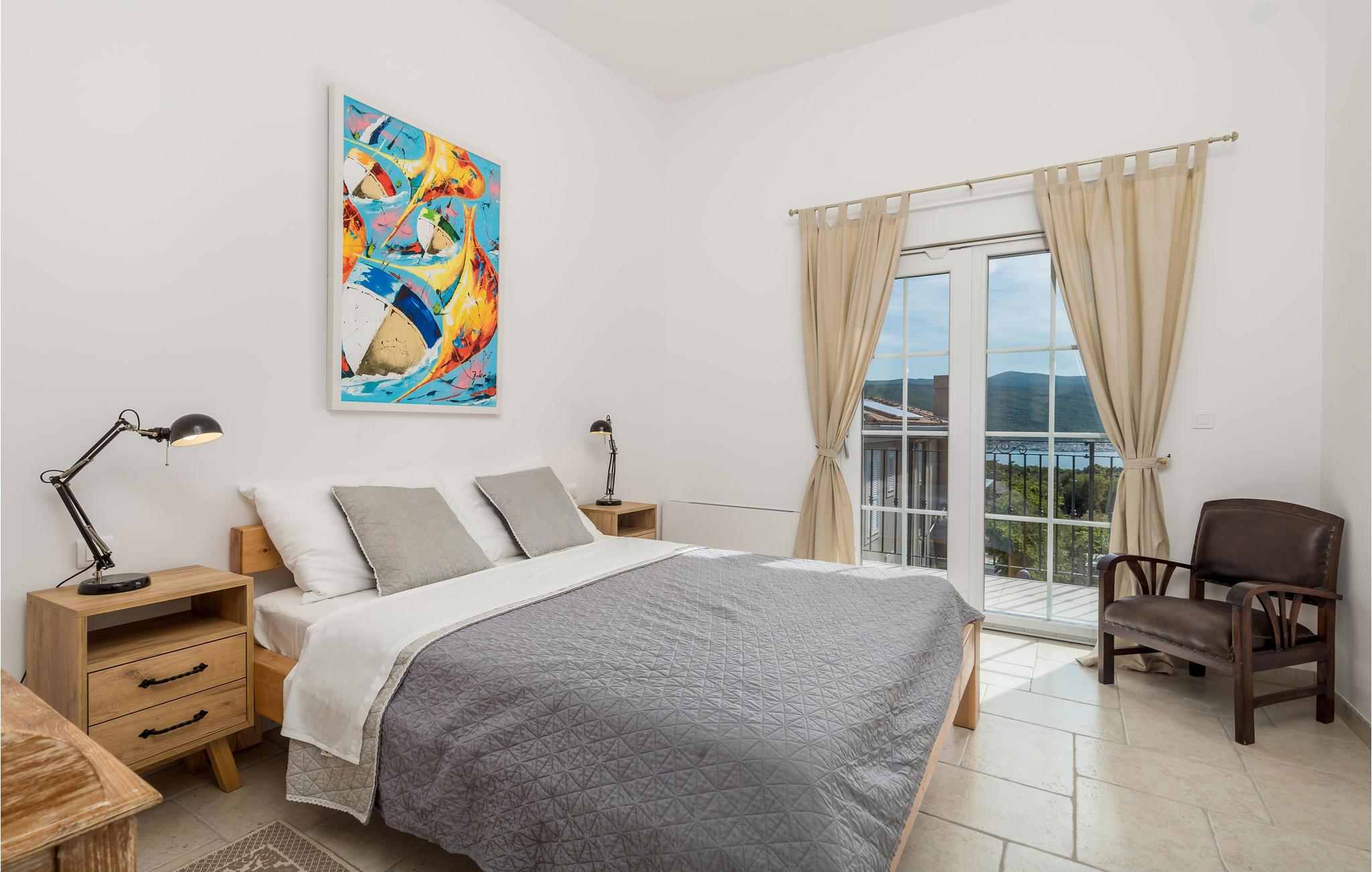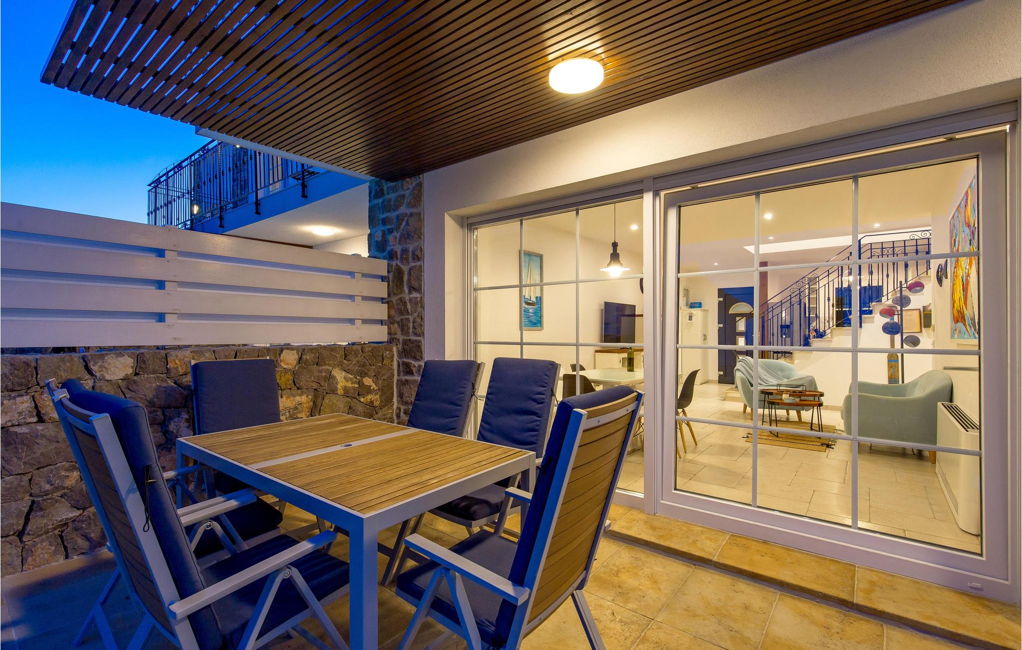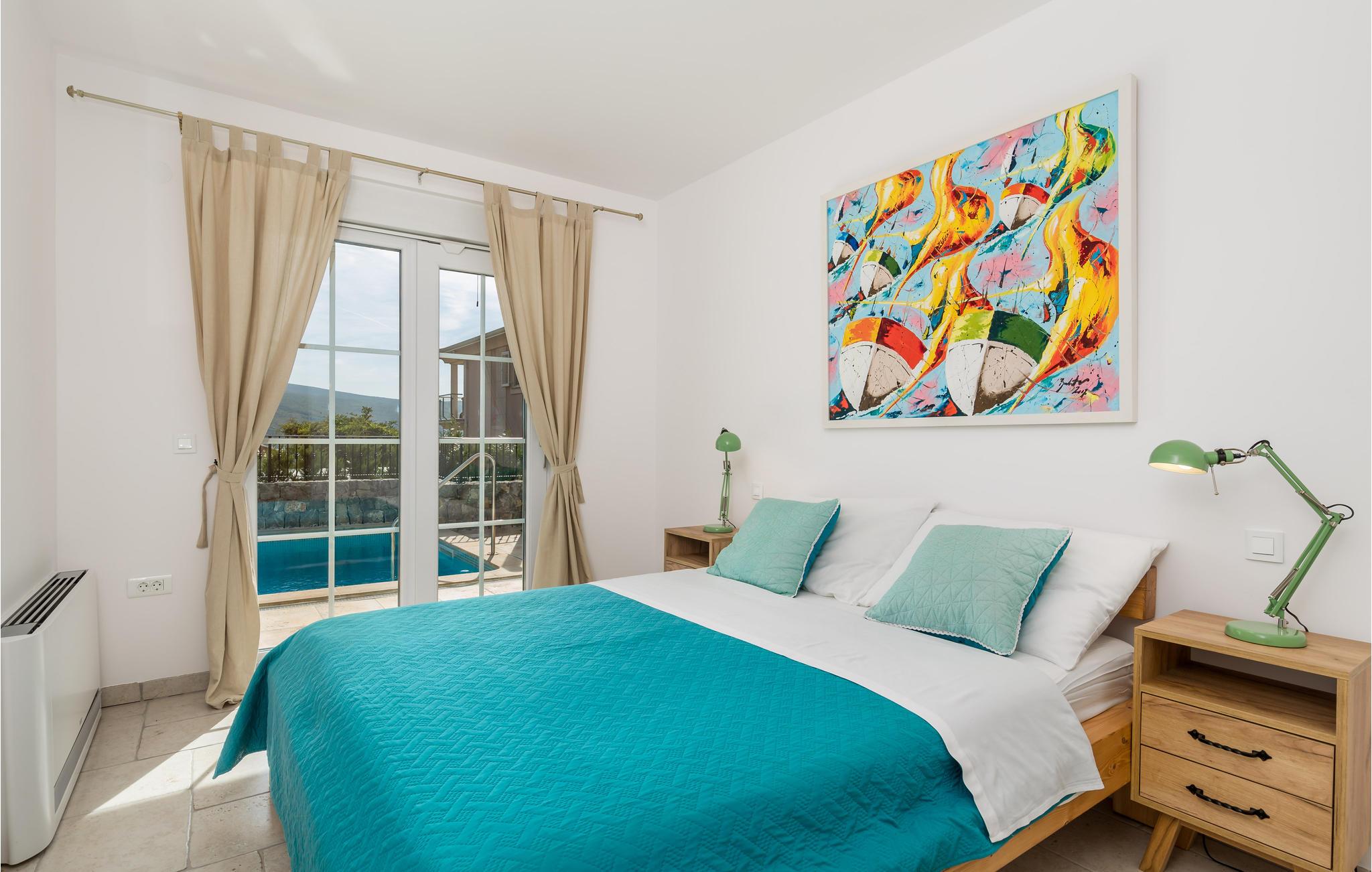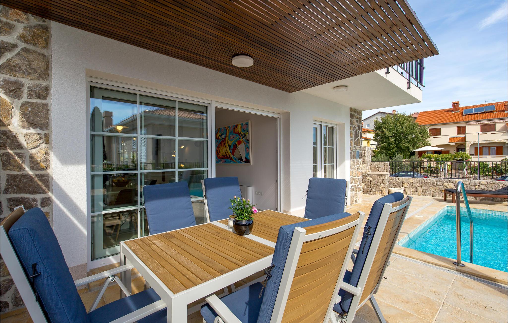 På øen Krk i den lille by Kornic ligger dette vidunderlige feriehus med egen privat pool. Det ligger kun fem minutter i bil fra den historiske by Krk og fra Punat med sin godt beskyttede havn. På grund af beliggenheden på en pakke er der en fantastisk udsigt over havet og de sølvgrønne olivenlunde, som denne region er så berømt for. Huset er indrettet med kærlighed helt ned i de små detaljer og bygget helt traditionelt, og indrettet med en vellykket blanding af gammelt og moderne. Fra stuen er der direkte udgang til terrassen med grill, loungehjørne og område til solbad samt til den opvarmede pool. Det største soveværelse ligger i stueplan og resten på første sal. I huset er der klimaanlæg, gulvvarme og I kan parkere på den store indhegnede grund.
