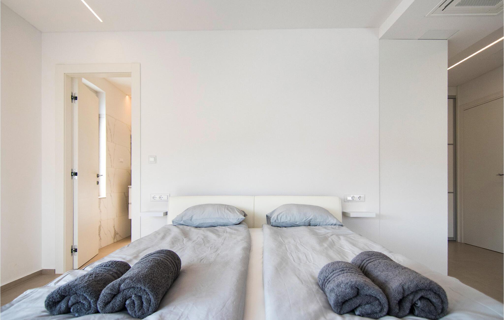Dette moderne og luksuriøst indrettede feriehus tilbyder komfortabel indkvartering, der giver jer mulighed for at kombinere afslapning med dejlige udflugter med familie eller venner. Hold hyggelige madlavningsaftener, snak over stilfulde måltider i den lyse spisestue med udsigt over poolen, og brug træningsudstyret til jeres træning. Forkæl jer selv med afslappende øjeblikke i saunaen og stream jeres yndlingsserie om aftenen.