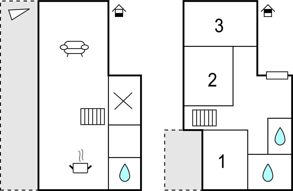 Badeværelse 4m2 (nr. 1) - WC. Varmt og koldt vand. Bruser
