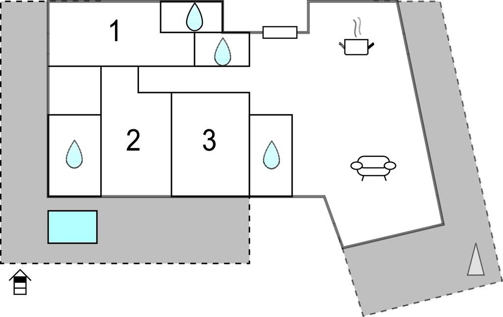 Badeværelse 5m2 (nr. 3) - WC. Varmt og koldt vand. Bruser