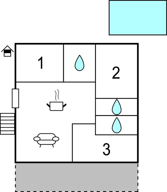 Badeværelse 6m2 (nr. 1) - WC. Varmt og koldt vand. Bruser