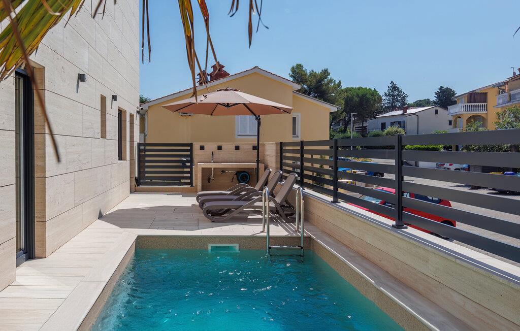 Udeområdet er tilsvarende lækkert. Her kan I nyde solen på terrassen lige fra morgenstunden, lade jer bage godt igennem og dyppe jer i poolen, inden I tager på tur. Lad aftenen gå på hæld på den store, overdækkede altan med en god drink, mens I lægger planer for de kommende dage.