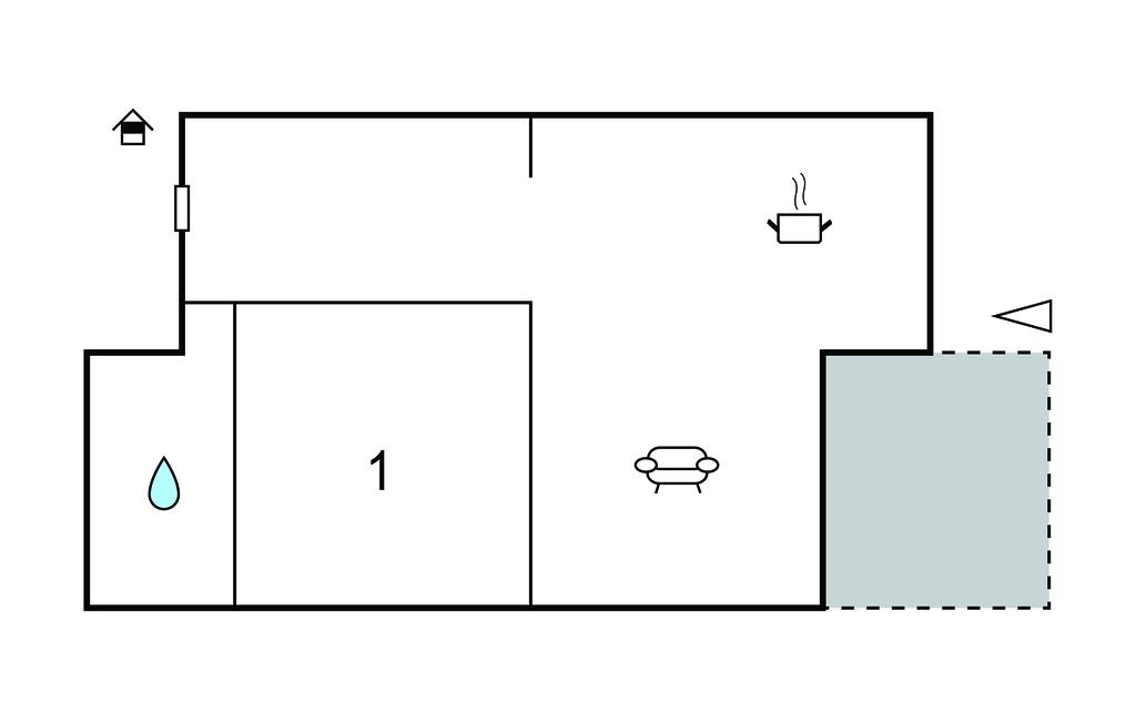 Opholdsstue/køkken 22m2 - 1 Soveplads. (Sofa, madras eller lignende).