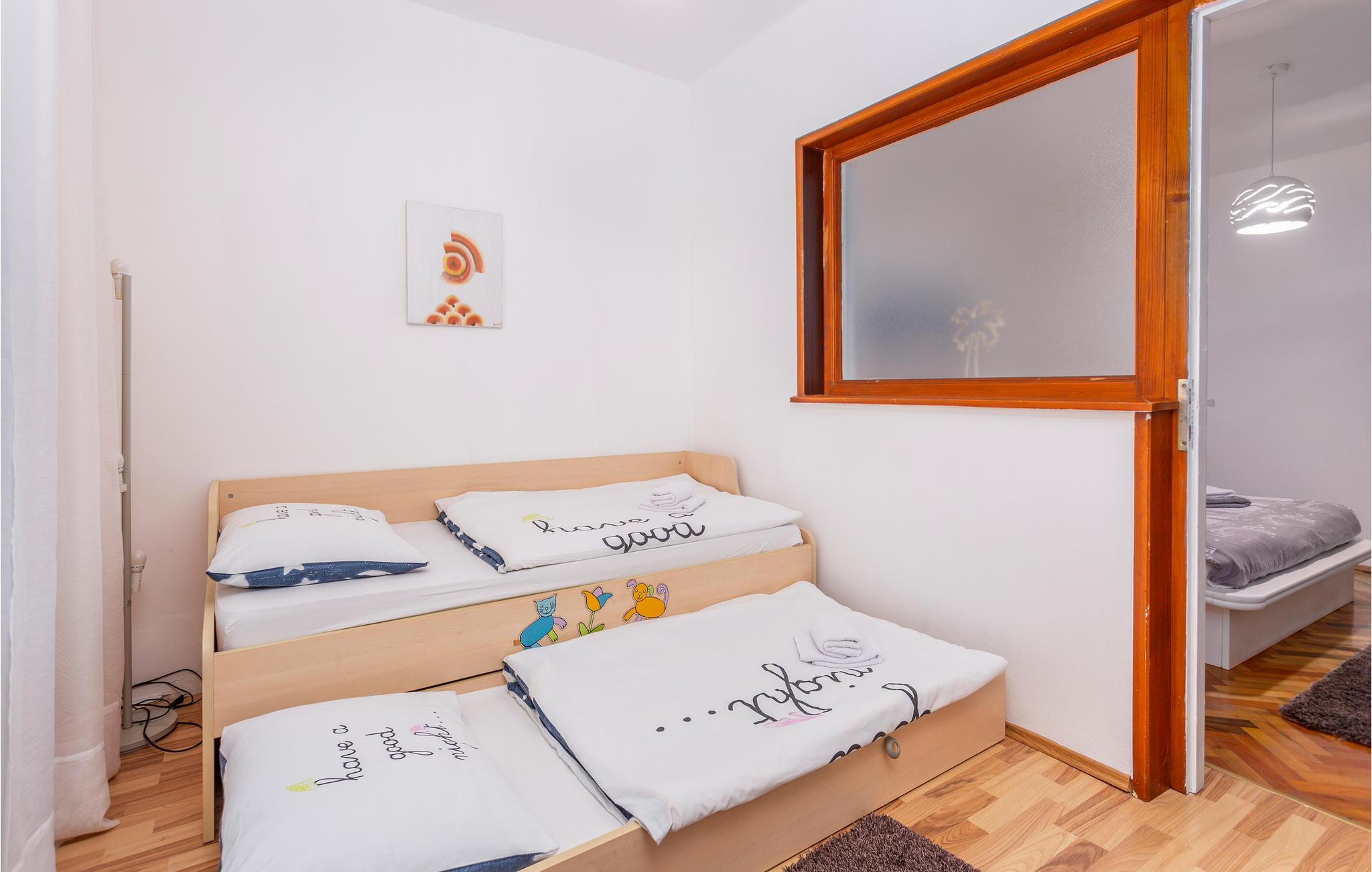 Disse skønne og enkelt indrettede ferielejligheder ligger i en privat ejendom i byen Malinska, på den charmerende og livlige ø Krk. Ferielejligheden CKK034 ligger i stueplan, mens ferielejligheden CKK932 med delvis havudsigt ligger på første sal. Hver ferielejlighed rummer to soveværelser, det ene fungerer som gennemgang til det andet. På den fælles grund er der en grill, samt borde og stole. Tag på opdagelse på øen Krk, der er kendt for sin rige kultur og historie og sin store variation af former for aktiviteter og underholdningstilbud.
