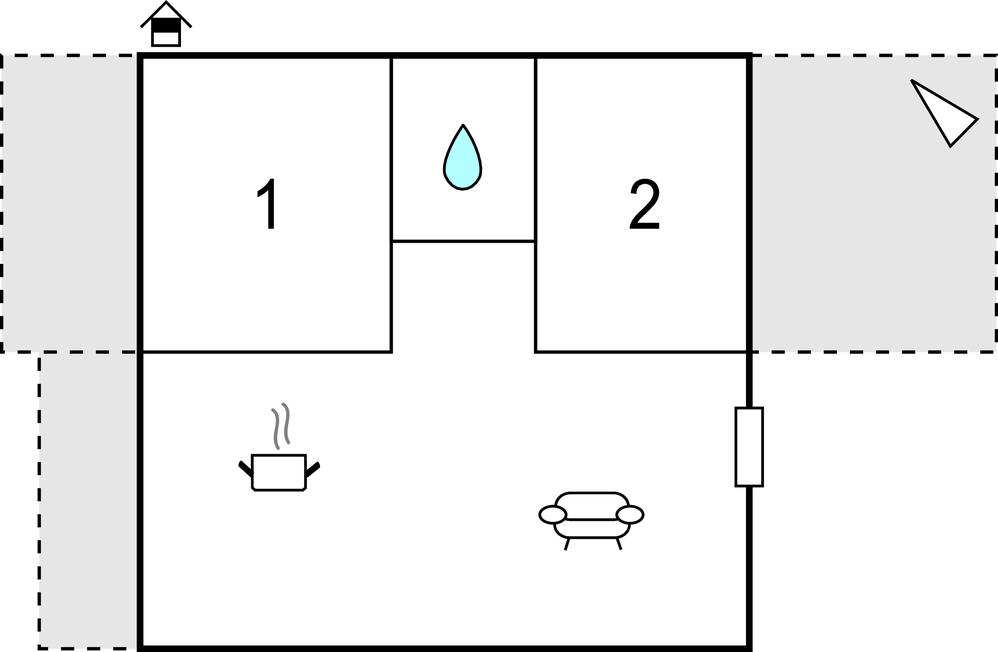 Opholdsstue/køkken - 2 Sovepladser. (Sofa, madras eller lignende).