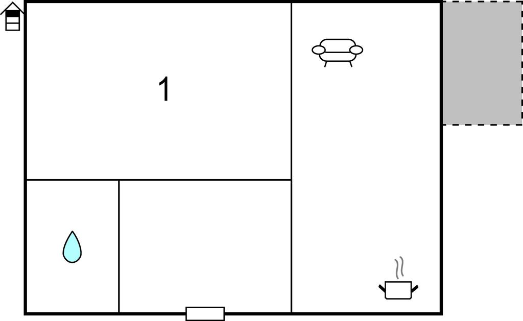 Opholdsstue/køkken - 2 Sovepladser. (Enkeltseng(e)).
