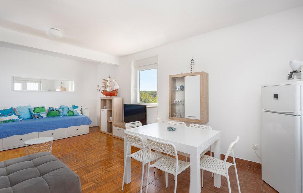 På den betagende smukke ø Krk ligger denne ferielejlighed, i en lille by uden for Njivice. Der er udsigt til det blå hav fra lejlighedens altan som ligger på fjerde sal. Kun få minutters gang skiller jer fra stranden. Den forhenværende fiskerby Njivice er i dag et populært mål for feriegæster fra foråret til efteråret, på grund af byens mange aktiviteter. Man kan f.eks. benytte øens vandre- og cykelstier til at nyde den rige natur, men der er også muligt at ride, og den aktive feriegæst kan finde adskilligt andre sportsgrene at fornøje sig med. Om aftenen byder byens restauranter jer velkommen til god mad, ligesom I får glæde af de mange koncerter og sommerarrangementer. I løbet af dagen anbefales det at besøge badestranden ved Baška eller byen Vrbnik som er berømt for sin vin žlahtina.