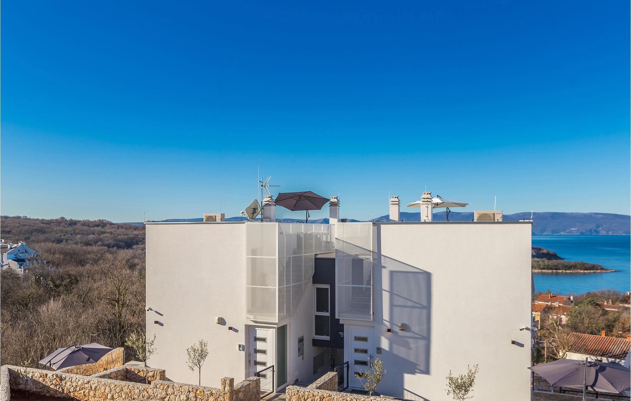 Dette stilfuldt indrettede parcelhus ligger i Njivice, et smukt sted på den gyldne ø Krk. Huset ligger i et rækkehus på en skråning, hvorfra du har en vidunderlig panoramaudsigt over det blå hav.