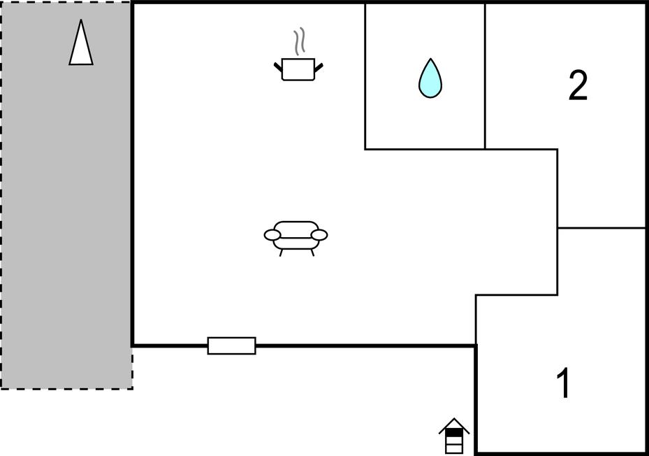 Opholdsstue/køkken 25m2 - 2 Sovepladser. (Sofa, madras eller lignende).