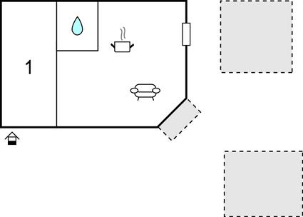 Opholdsstue/køkken 20m2 - 1 Soveplads. (Sofa, madras eller lignende).
