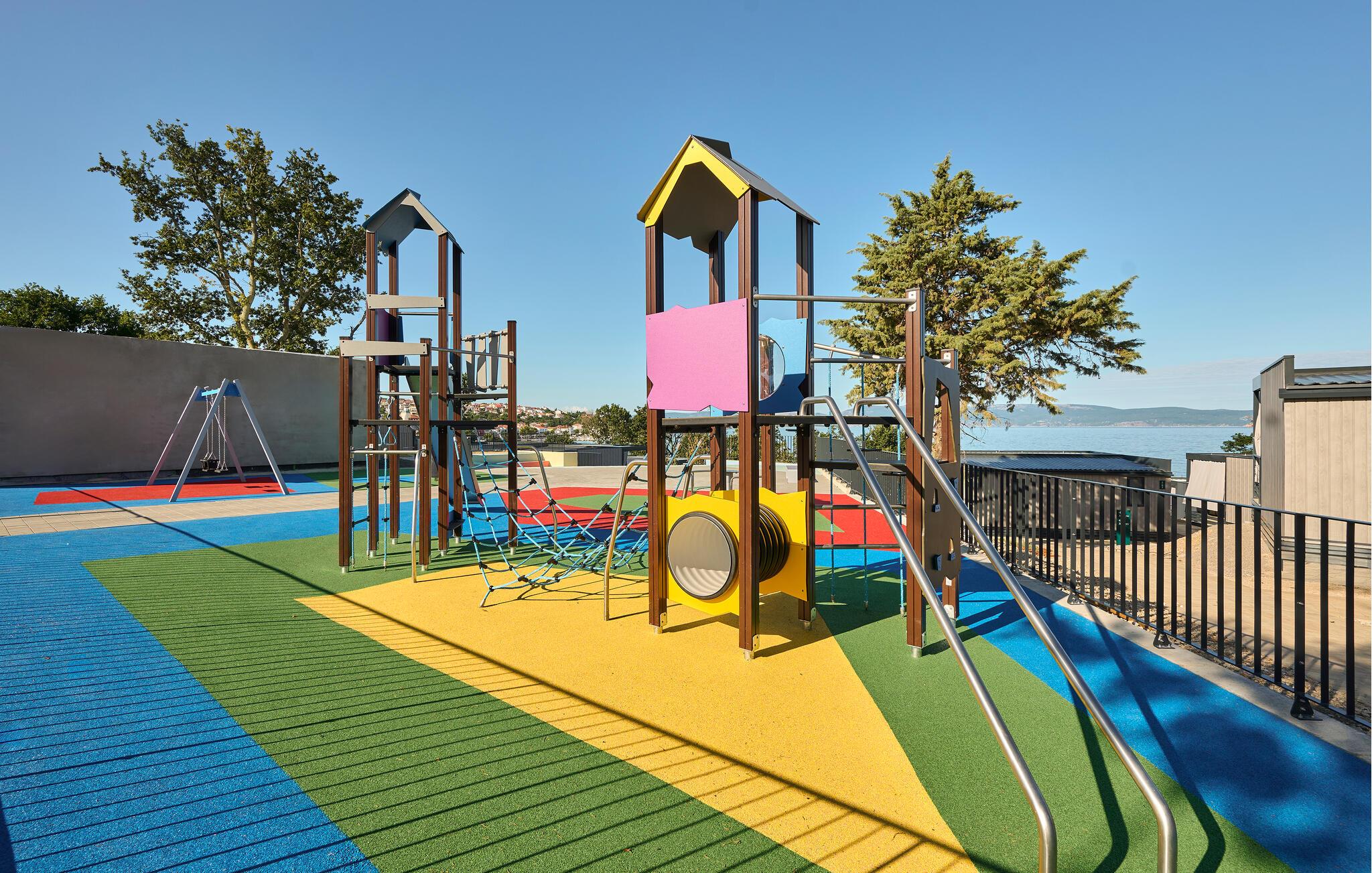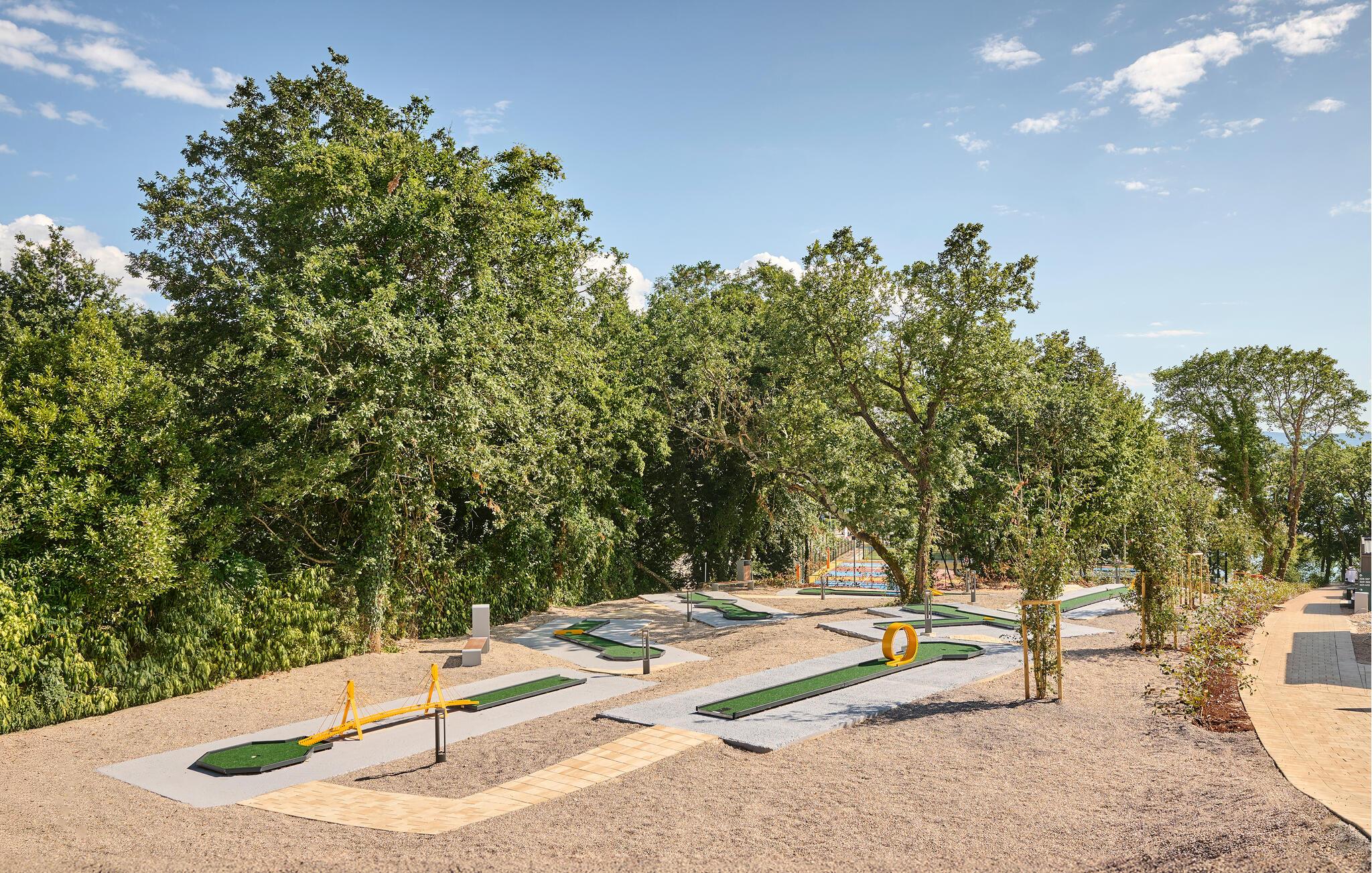 Den store terrasse lægger op til masser af tid udendørs – uanset om I læser, snakker eller nyder en rolig aften med et glas vin. Tag en dukkert i den fælles pool og slap derefter af på en liggestol. Spil en runde minigolf eller se børnene lege og klatre på legepladsen.