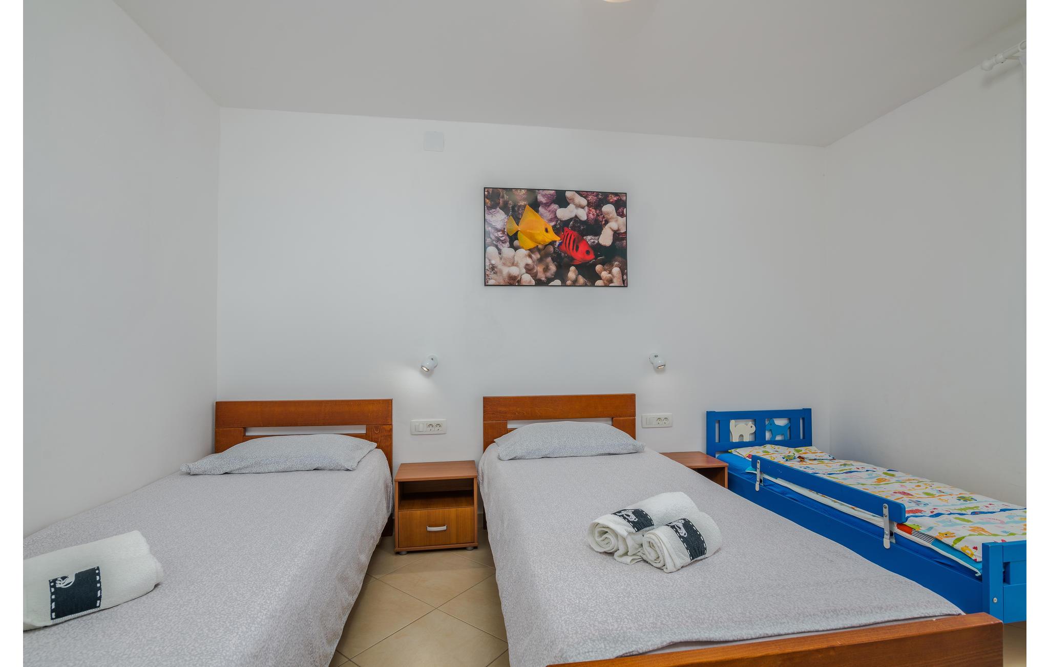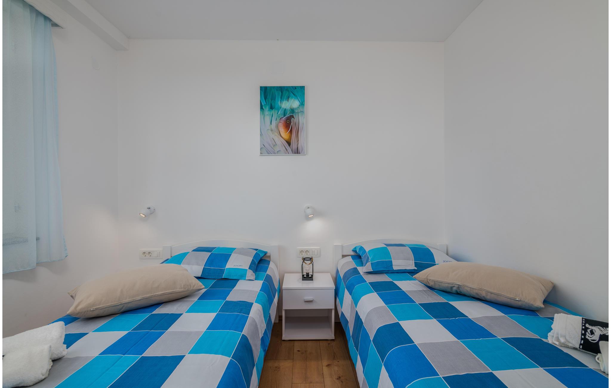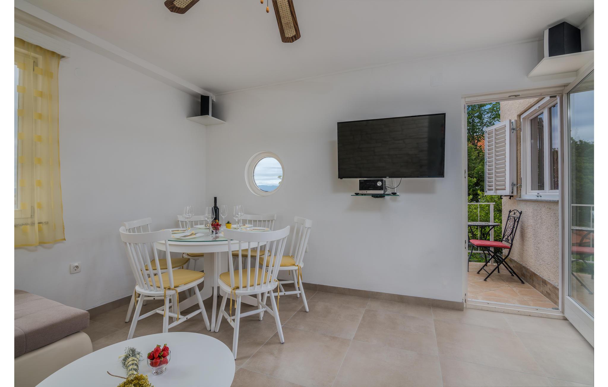 Efter et par minutter ned ad bakke kan du nå stranden. Omišalj er et historisk sted med mange kulturelle og underholdende fritidsmuligheder i sommermånederne. Udforsk øen Krk med sin unikke kultur og historie, mange olivenlunde, vandre- og cykelruter og mange muligheder for en aktiv ferie.