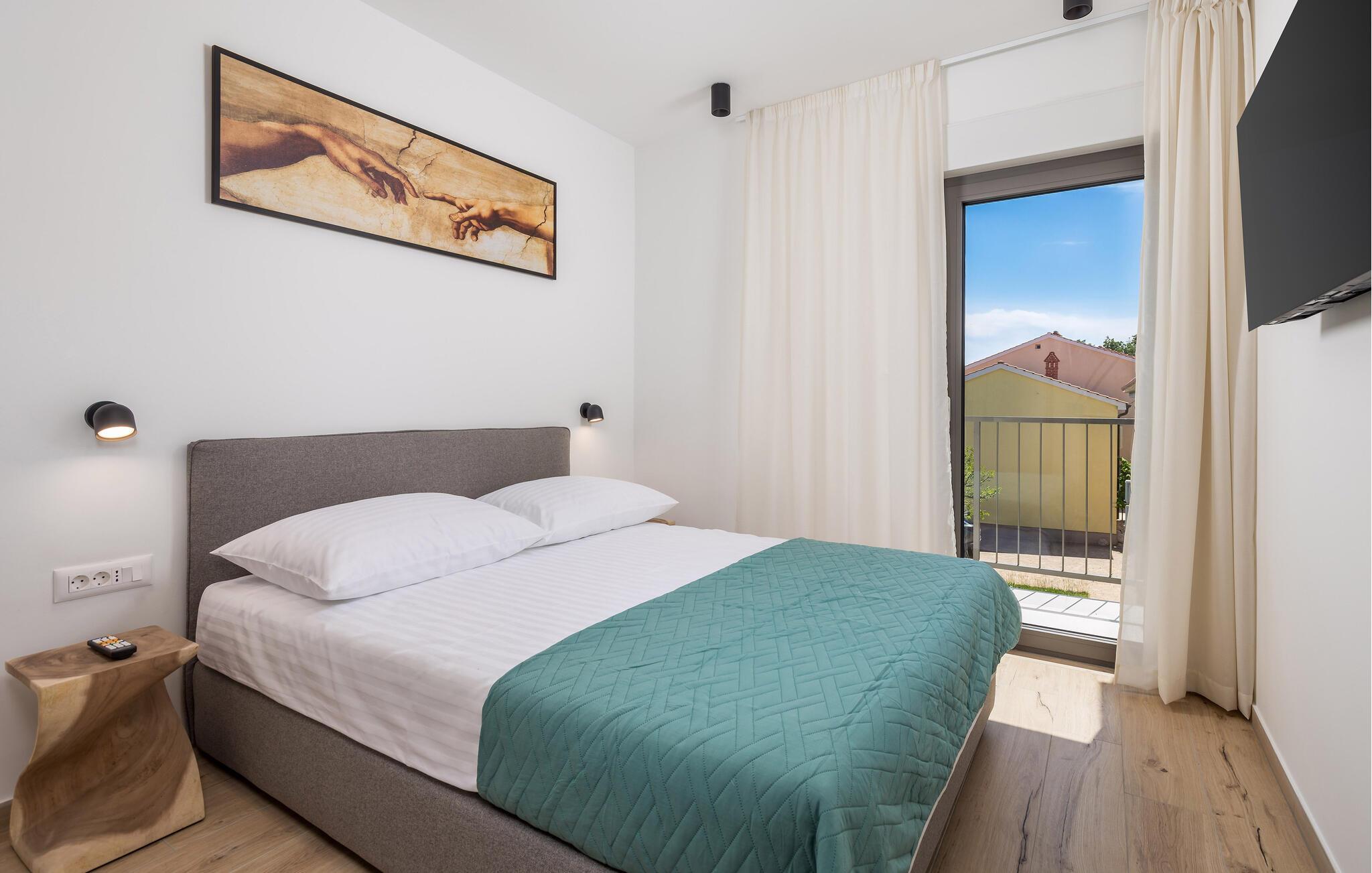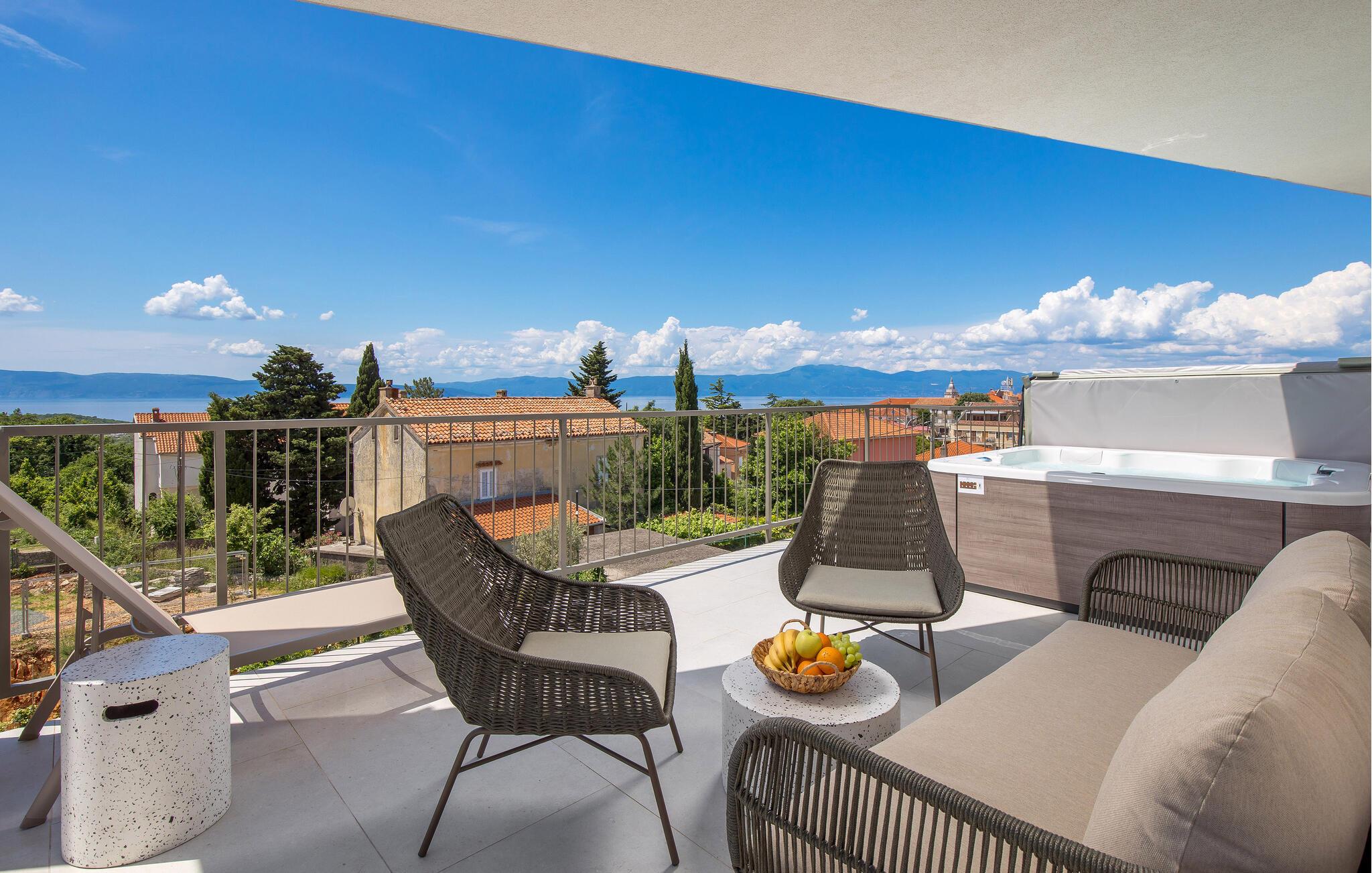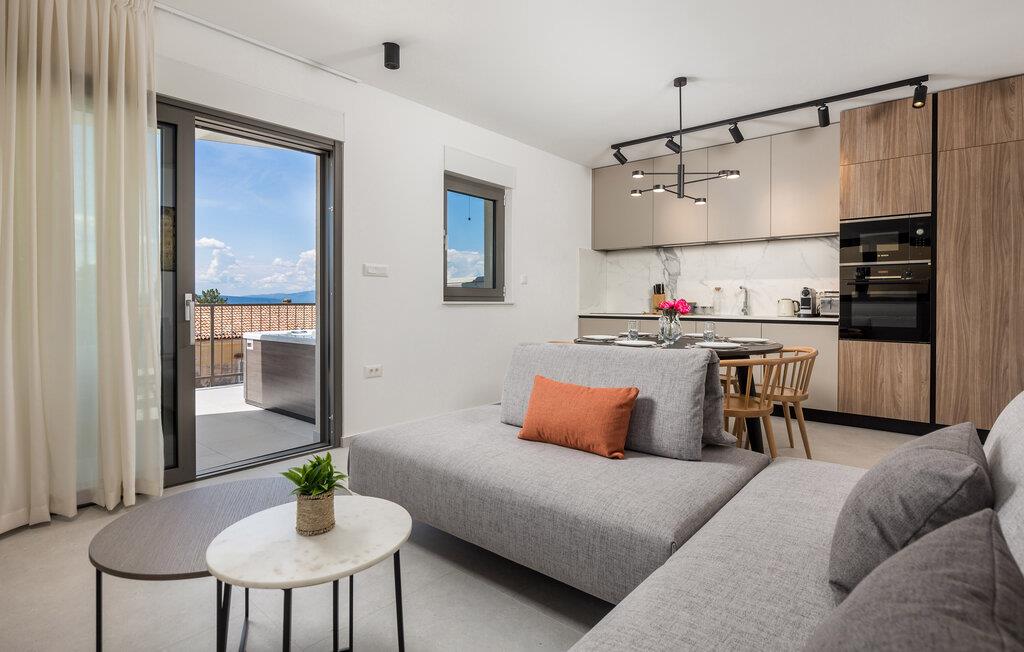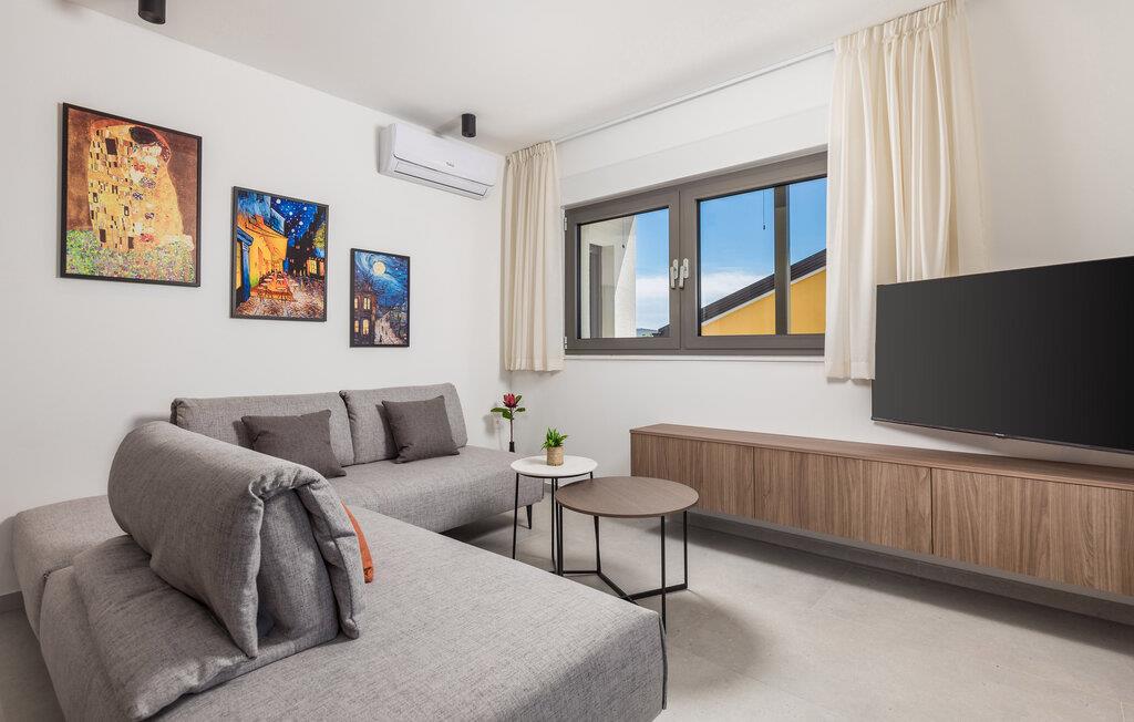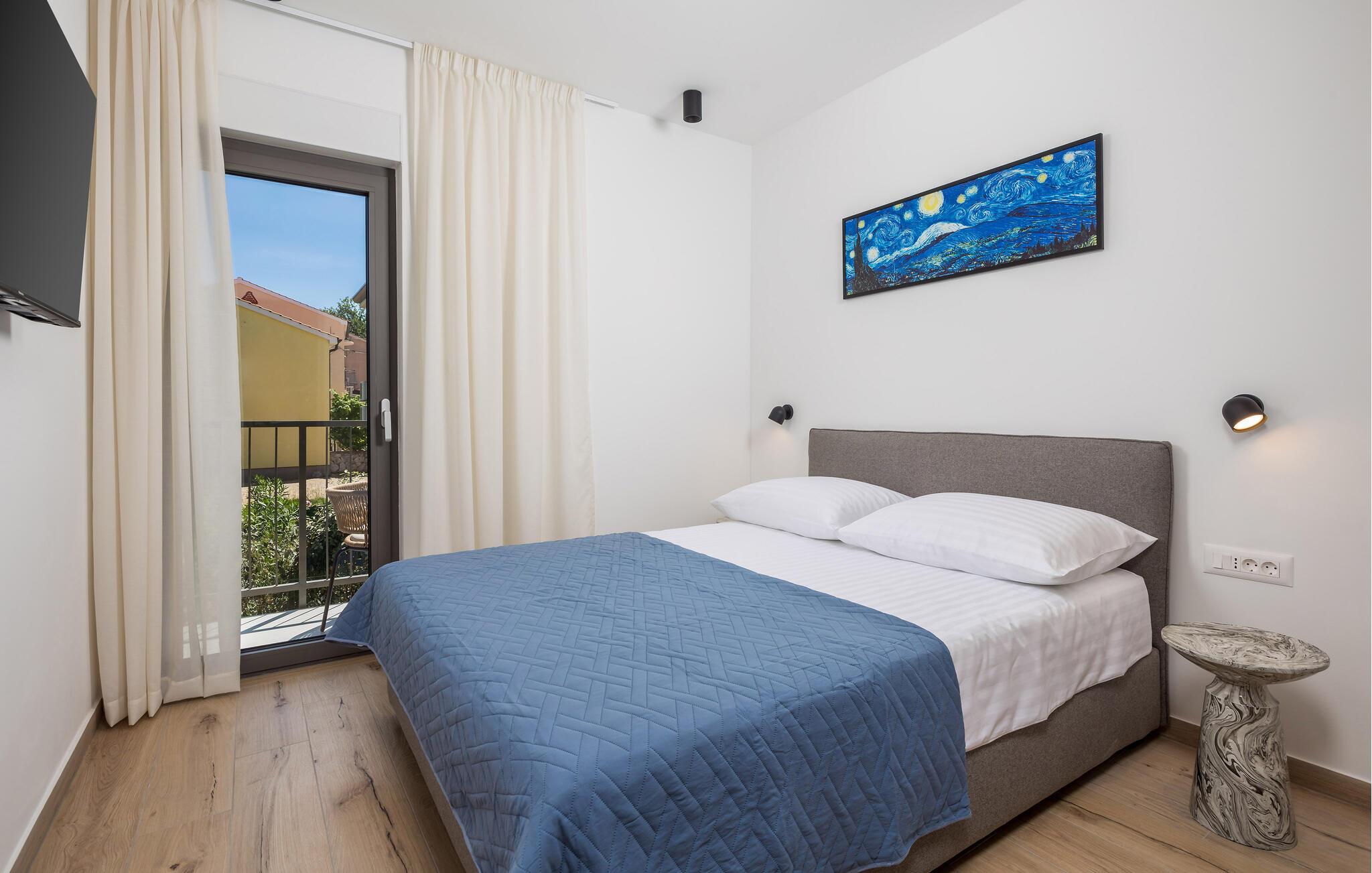 Glæd jer til denne moderne lejlighed på den gyldne ø Krk, til komfortable forhold og virkelig indbydende omgivelser, der indbyder til afslapning. Den stilfulde indretning byder på afslappende timer i de lyse rum og en smuk udsigt over nabolaget og havet.