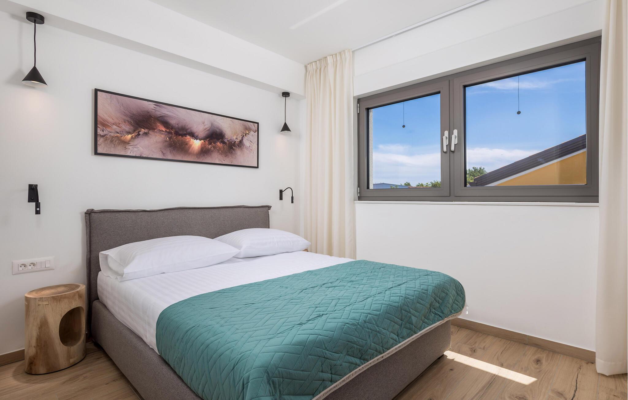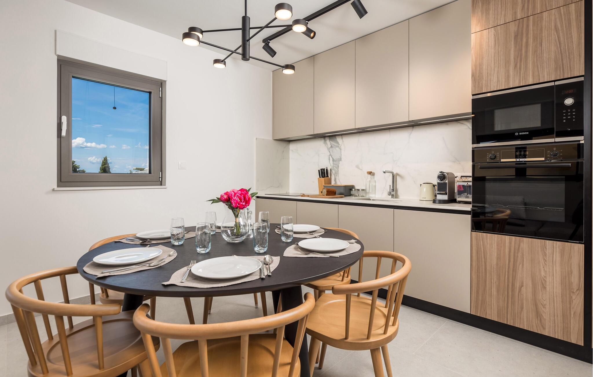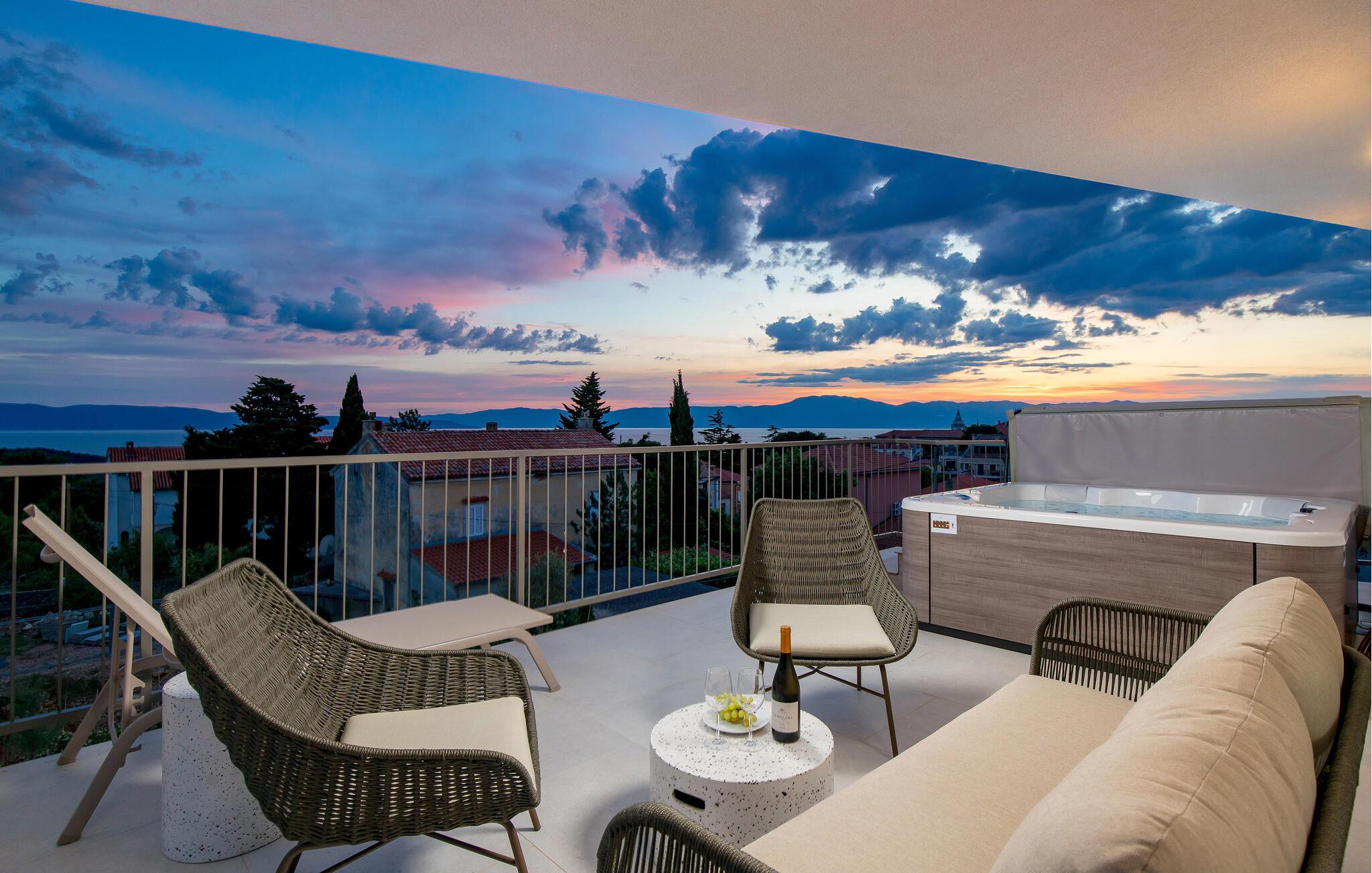 Glæd jer til denne moderne lejlighed på den gyldne ø Krk, til komfortable forhold og virkelig indbydende omgivelser, der indbyder til afslapning. Den stilfulde indretning byder på afslappende timer i de lyse rum og en smuk udsigt over nabolaget og havet.