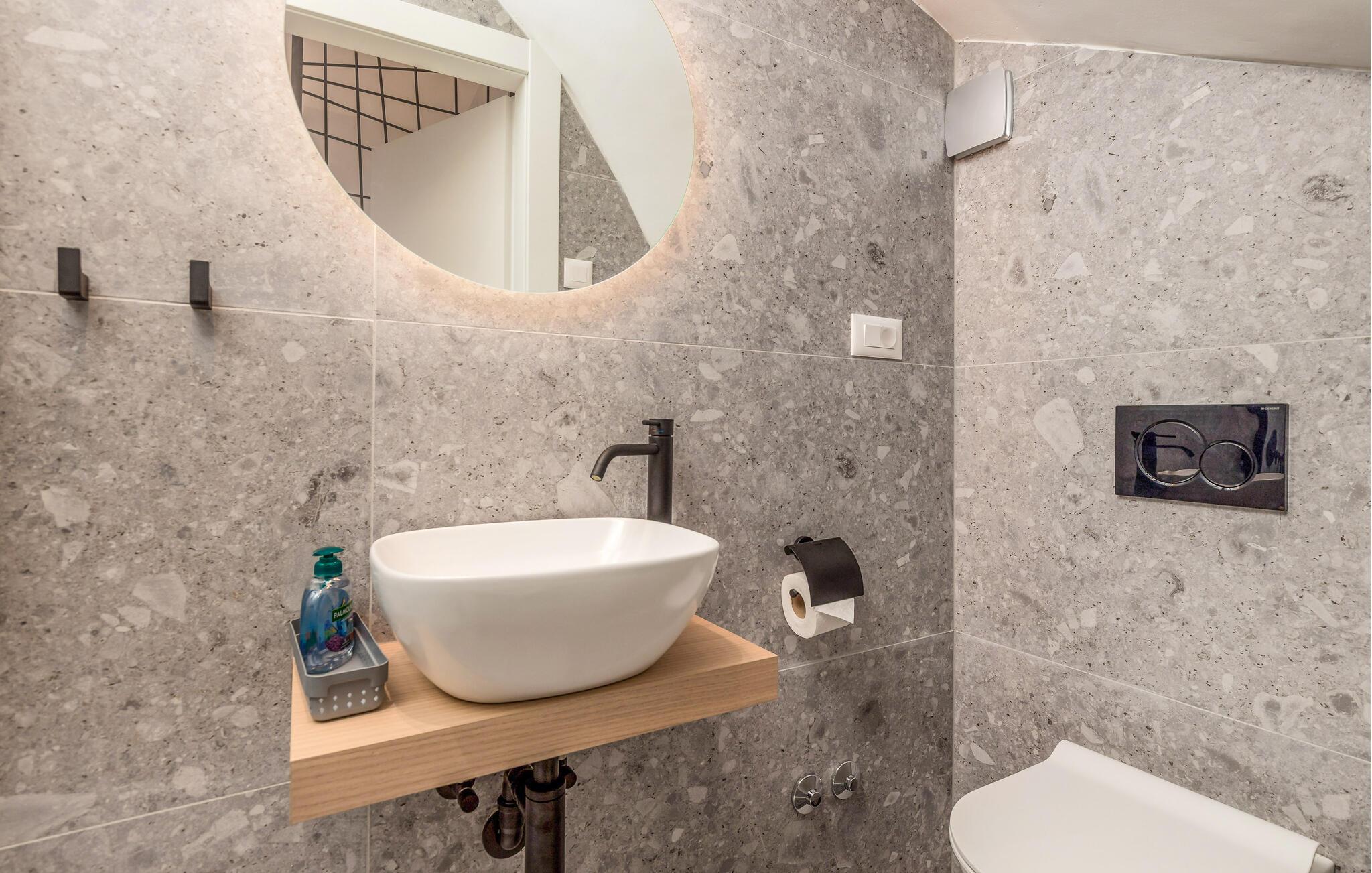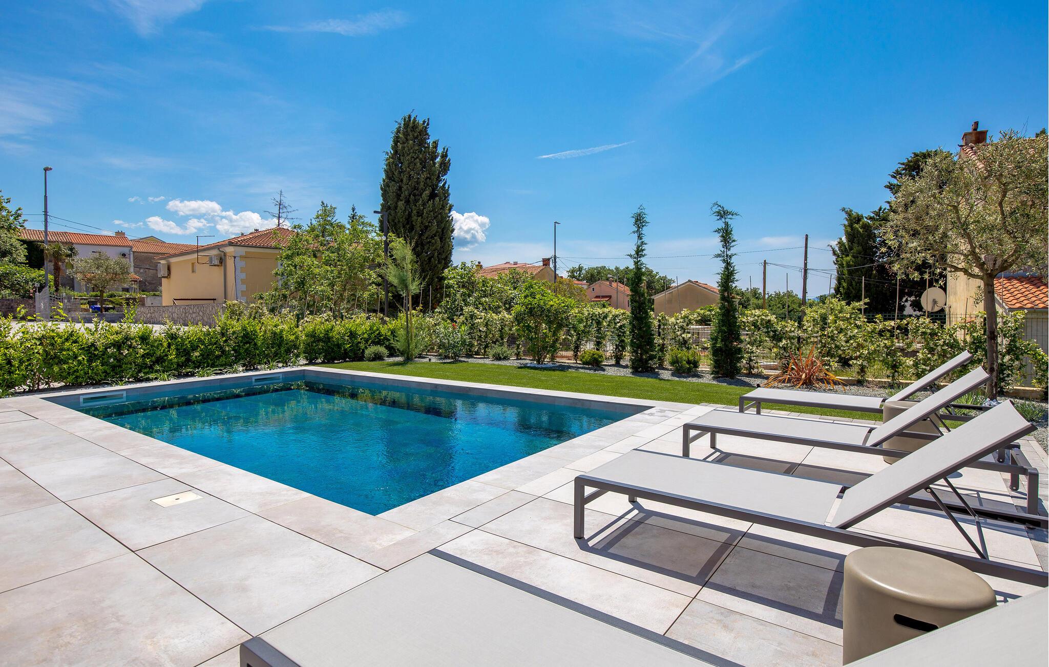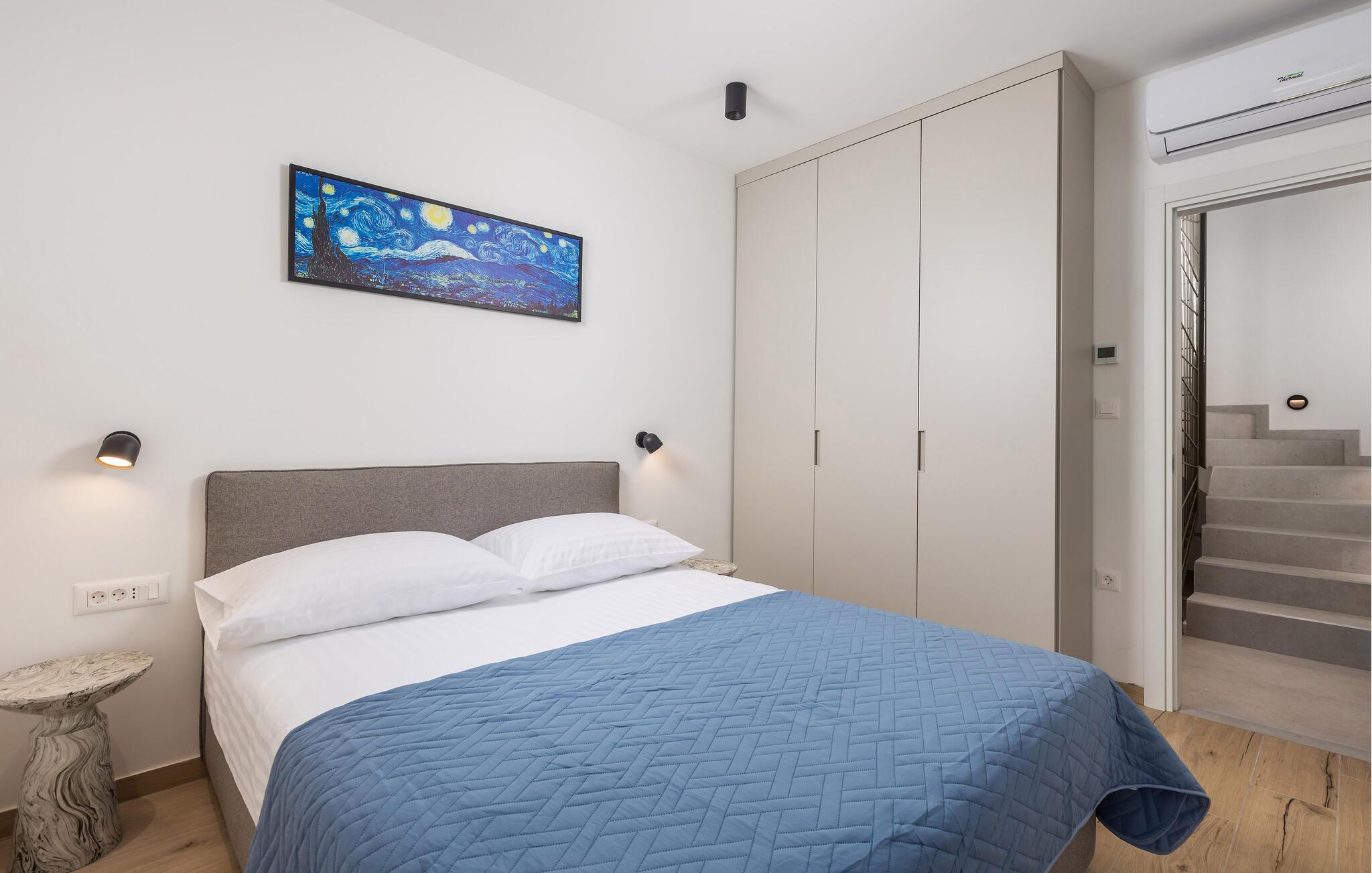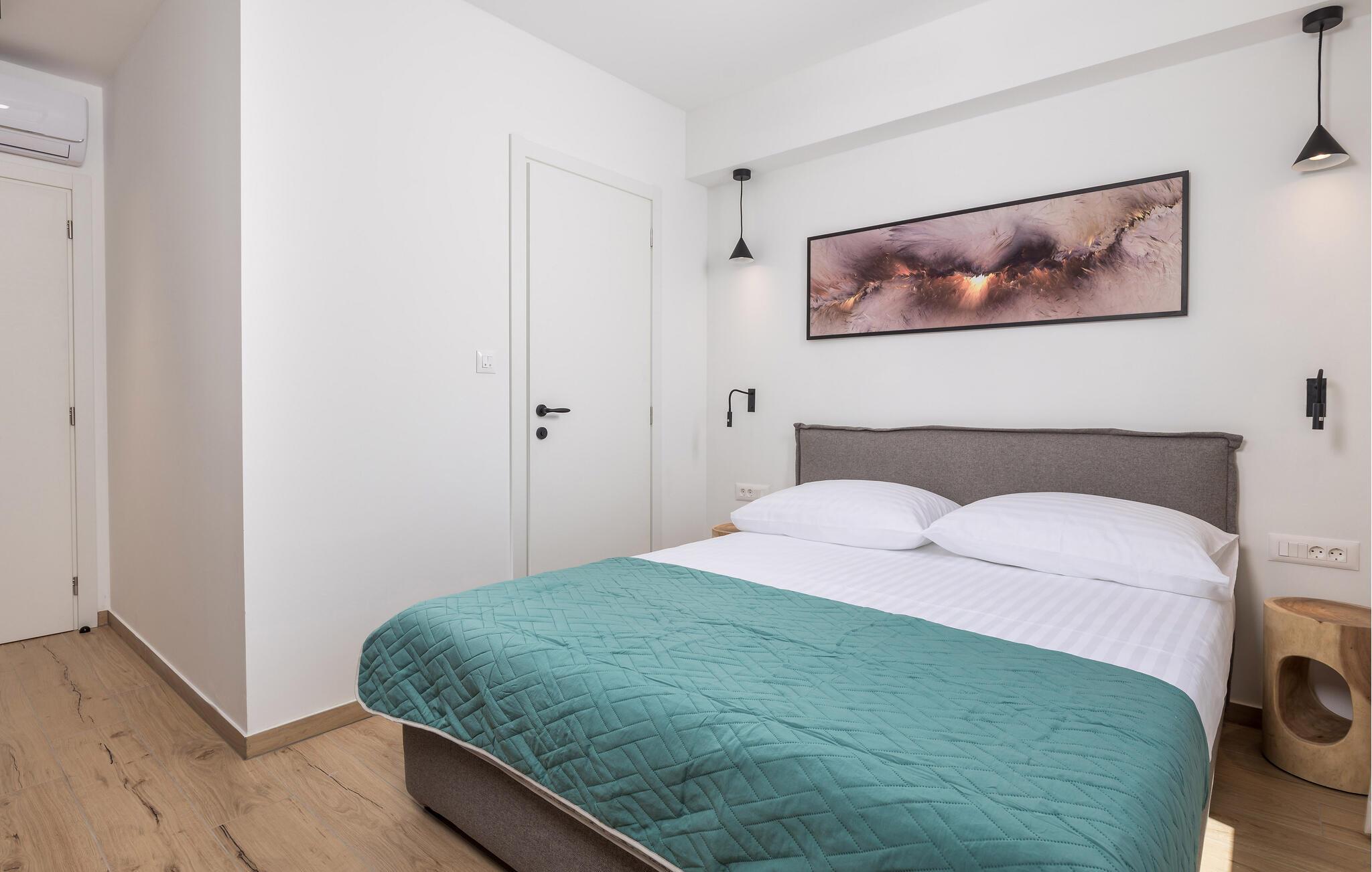 Glæd jer til denne moderne lejlighed på den gyldne ø Krk, til komfortable forhold og virkelig indbydende omgivelser, der indbyder til afslapning. Den stilfulde indretning byder på afslappende timer i de lyse rum og en smuk udsigt over nabolaget og havet.