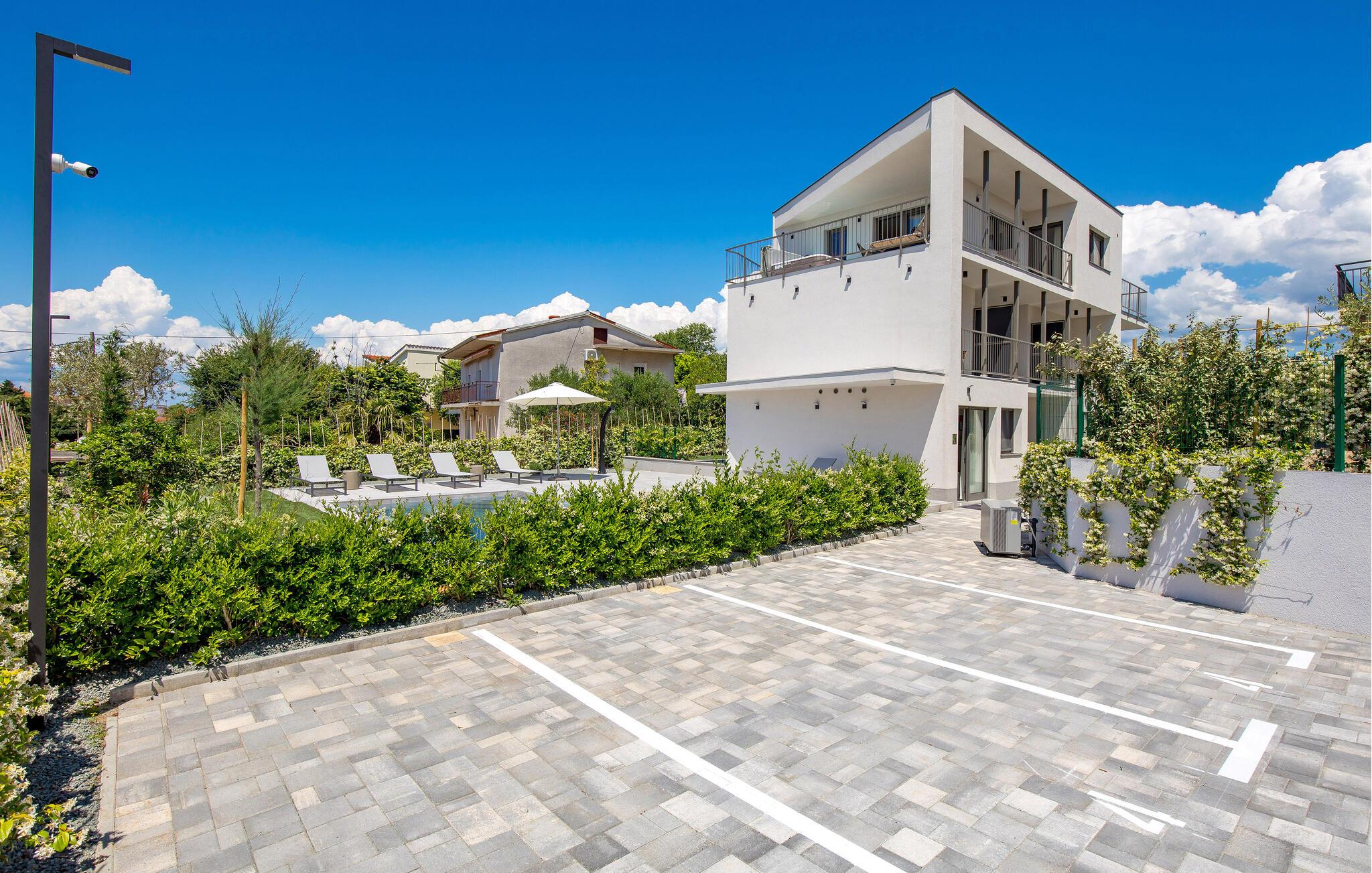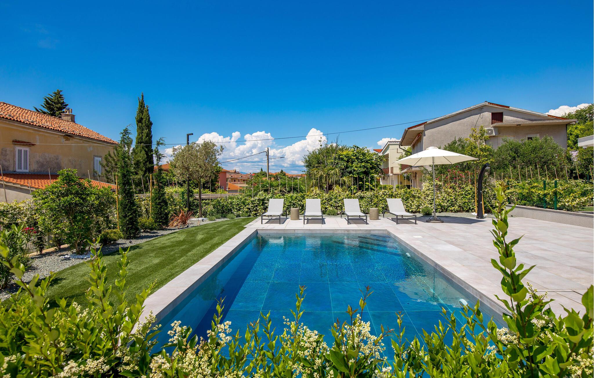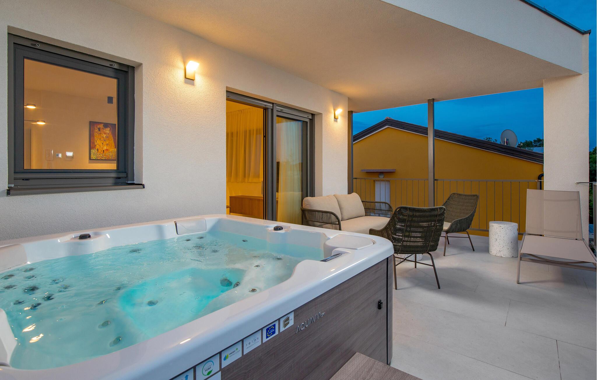 Tilbring jeres ferie i denne luksuslejlighed med privat spabad og opvarmet fælles pool.